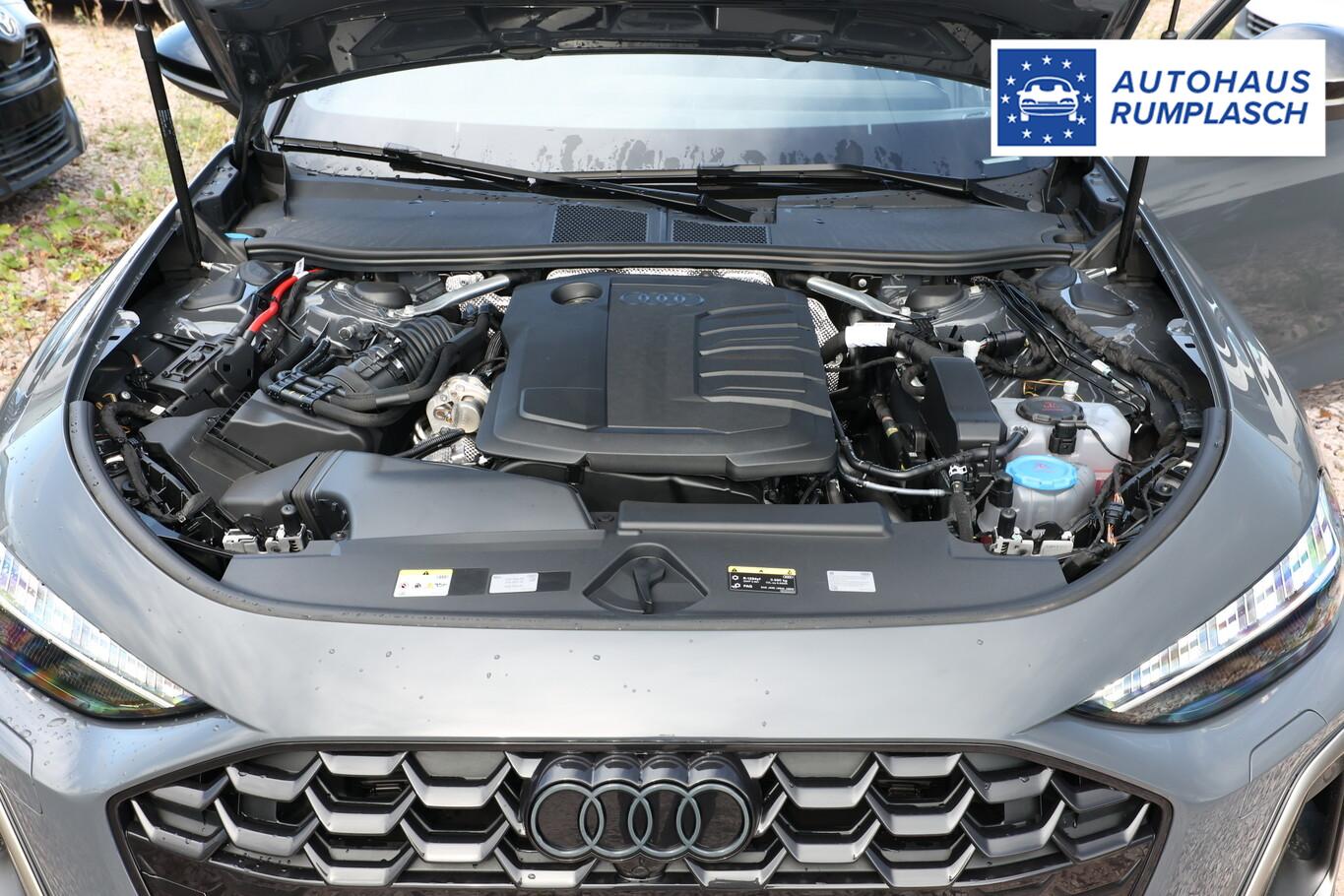 Ausstattungs-Paket: Tech (Audi Application Store und Smartphone Interface / Außenspiegel mit Projektionsfunktion / Innenspiegel mit Abblendautomatik / Komfort-Paket / Sound-System DSP / Audi Sound-System / Multi-Media-Interface MMI Navigation Plus mit MMI Touch / Komfort-Klimaautomatik 3-Zonen / Fahrassistenz-System: Adaptive Geschwindigkeitsregelanlage (Adaptive Cruise Control) mit Autom. Distanzregelung / Rückfahrkamera / Außenspiegel elektr. verstell-, heiz- und anklappbar, mit Abblendautomatik und Bordsteinautomatik / Außenspiegel mit Bordsteinautomatik, rechts / Fahrassistenz-System: Fernlichtassistent / Heckleuchten LED mit dynamischer Lichtinszenierung und mit dynamischem Blinklicht / Scheinwerfer LED Plus / Einparkhilfe plus vorn, seitlich und hinten, akustisch und optisch mit Umgebungsanzeige / Fahrassistenz-System: Parklenkassistent plus), Interieur-Paket: S line mit Sportsitze, Sitzbezug Stoff, schwarz (Bedienelemente schwarz glänzend / Dachhimmel Stoff, schwarz / Einstiegsleisten mit Aluminiumeinlage, beleuchtet / Innenausstattung: Dekoreinlagen Aluminium matt gebürstet, Anthrazit / Innenausstattung: Interieurelemente in Stoff Kaskade, umlaufend / Kontur / Ambientebeleuchtungs-Paket (plus) / Lendenwirbelstützen vorn, elektr. verstellbar / Pedale und Fußstütze in Edelstahl / Sitzbezug / Polsterung: Stoff Kaskade / Impressum Kombination / Mittelarmlehne vorn Komfortausstattung / Sportsitze vorn / Lenkrad (Sport/Leder - 3-Speichen, oben / unten abgeflacht) mit Multifunktion und Schaltfunktion), LM-Felgen 8x19 (5-Doppelspeichen, V-Design, graphitgrau, glanzgedreht), Verglasung hinten abgedunkelt (Privacyverglasung), Anschlussgarantie (1 Jahr / 90.000 km), Dachreling schwarz, edition one, Exterieur S line, Exterieurpaket schwarz mit Akzenten in Magnesiumgrau, Fahrassistenz-System: Querverkehrassistent vorn, Fahrassistenz-System: Remote Parlenkassistent, Reifen 245/40 R19, Schadstoffarm nach Abgasnorm Euro 6e (EU6 EA), Sitze vorn höhenverstellbar, Airbag Fahrer-/Beifahrerseite (Airbag Beifahrerseite abschaltbar), Seitenairbag vorn (Kopf-Airbag-System (Sideguard) / Seitenairbag vorn mitte (Interaktionsairbag)), Frontscheibe Wärmeschutzverglasung (Frontscheibe Akustikglas), Fahrassistenz-System: Ausweich-Assistent (Fahrassistenz-System: Abbiege-Assistent links), Audi connect (Internetbasierende Dienste), Funkschlüssel, Gepäckraum-Abtrennung (Netz), Geschwindigkeits-Begrenzeranlage, Karosserie: 5-türig, Kombiinstrument digital (virtual cockpit plus), Lenksäule (Lenkrad) mech. Höhen-/Längsverstellung, Mild-Hybrid 150 kW (Motor 2,0 Ltr. - 150 kW 16V TDI), Mild-Hybrid-Technologie, Nichtraucher-Paket, Radioempfang digital (DAB), SCR-System (AdBlue-Technologie), Standard-Fahrwerk, Induktionsladeschale für Smartphone (Telefonablage), USB-Ladeanschlüsse (2-fach, Typ C) für Fondpassagiere, Antriebsart: Frontantrieb, Audi Drive Select, Wegfahrsperre (elektronisch), Getriebe 7-Gang - Doppelkupplungsgetriebe S-tronic, Isofix-Aufnahmen für Kindersitz an Beifahrersitz und Rücksitz, Sitzheizung vorn, Gepäckraumklappe elektr. betätigt (öffnen + schliessen), Fahrassistenz-System: Verkehrszeichenerkennung, Audi connect (Notruf- und Assistance-System), Tagfahrlicht, Fahrassistenz-System: Ablenkungs- und Müdigkeitserkennung, Fahrassistenz-System: Notbremsassistent Front assist mit Fußgänger- und Fahrraderkennung, Fahrassistenz-System: Spurverlassenswarnung, Reifenkontroll-Anzeige, Rußpartikelfilter, Start-Stop-Knopf