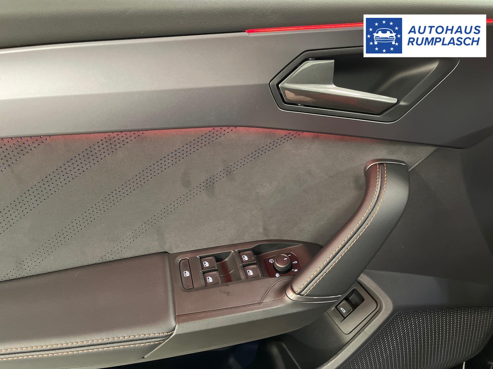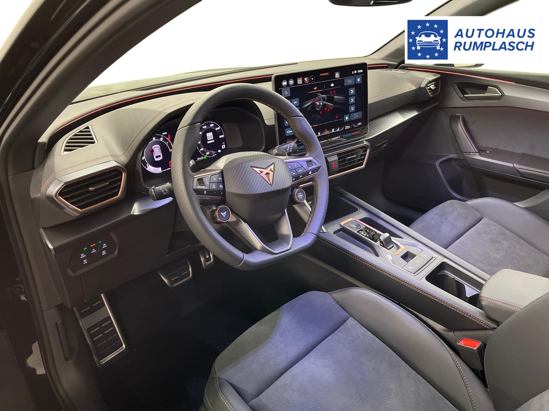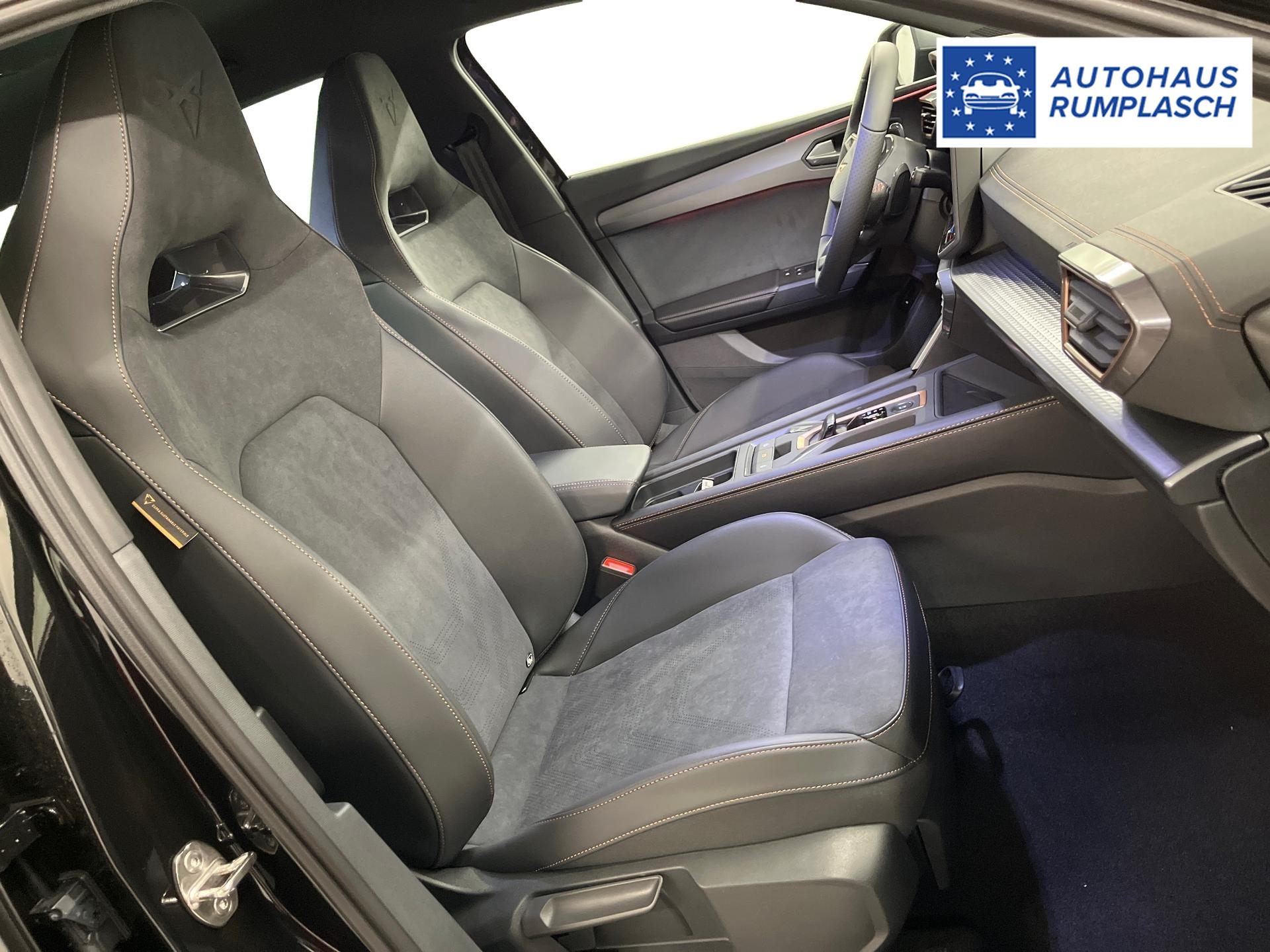 Innenausstattung CG - CUPRA Sportschalensitze vorne mit Sitzmittelbahn in Dinamica, Schwarz mit Blau Akzenten