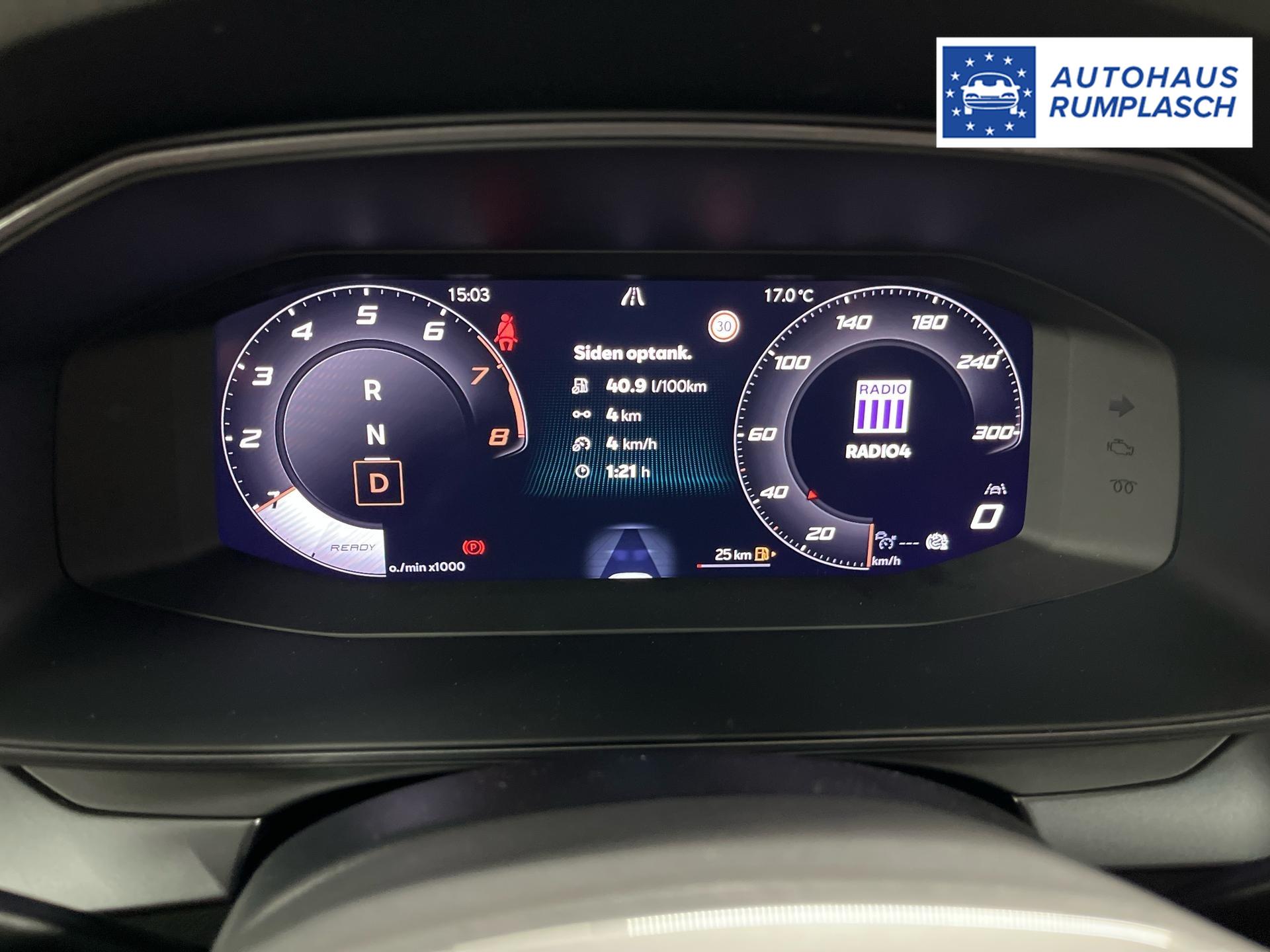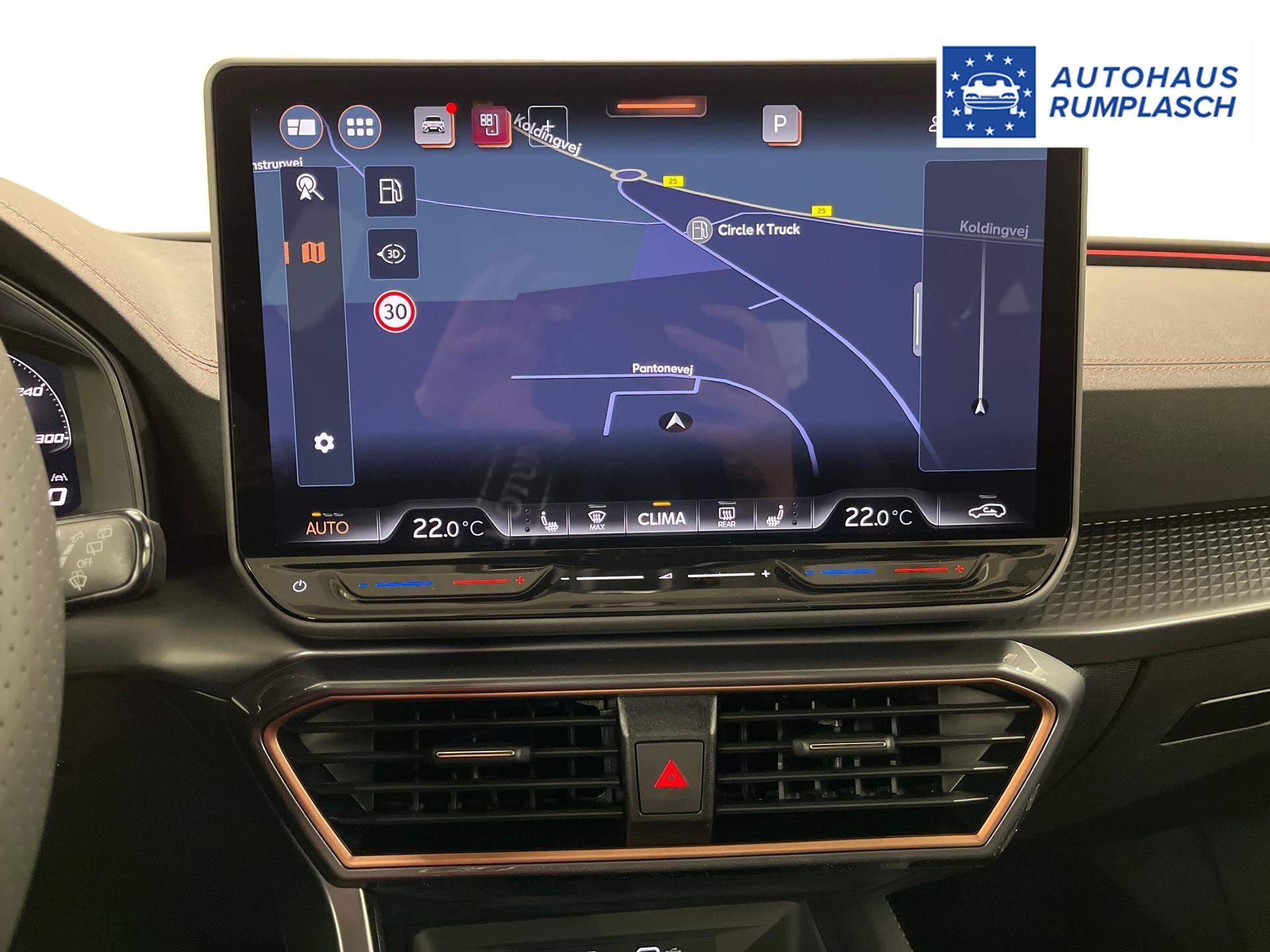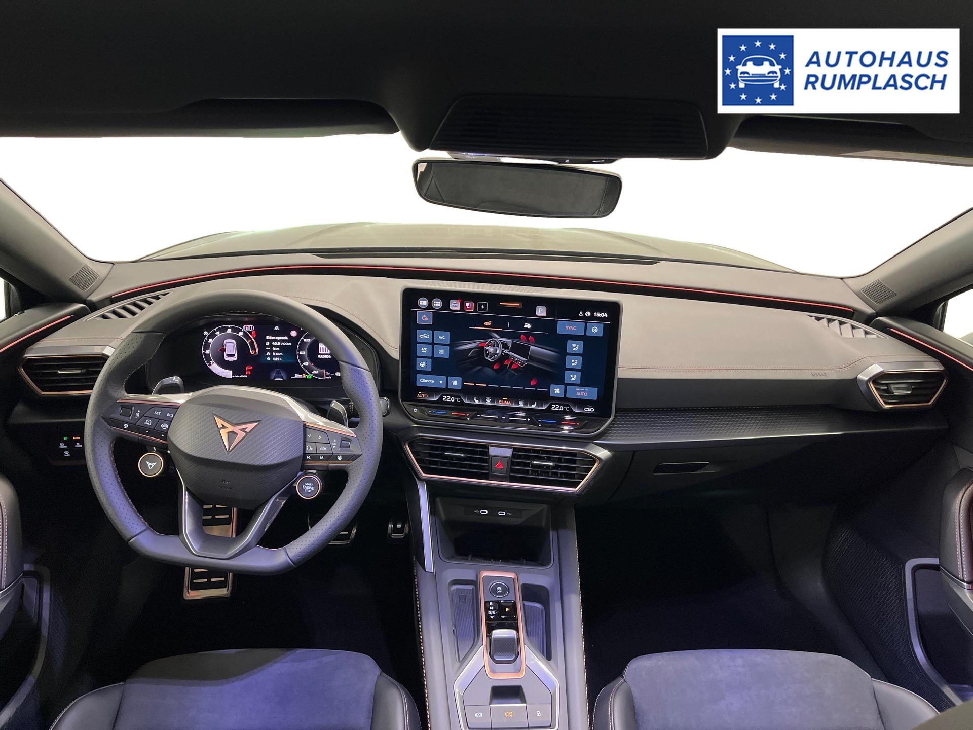 Innenausstattung CG - CUPRA Sportschalensitze vorne mit Sitzmittelbahn in Dinamica, Schwarz mit Blau Akzenten