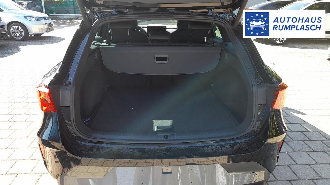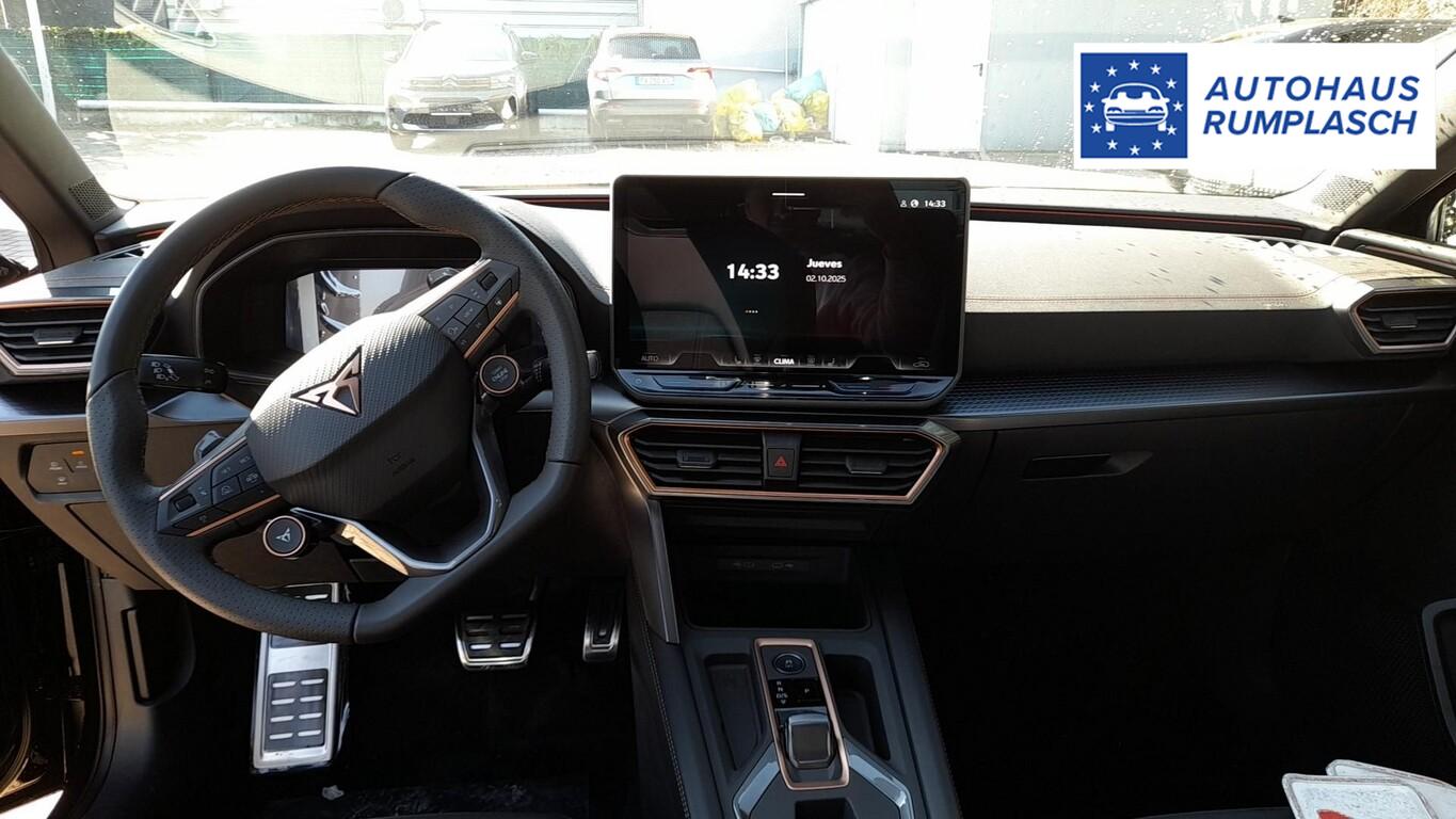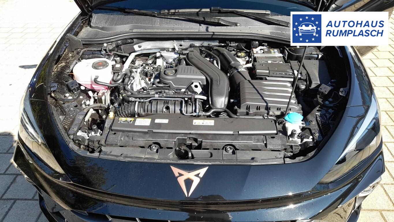 Intelligent-Drive-Paket II (Fahrassistenz-Paket XL / Mobile Online Dienste Cupra Connect plus / Audio-Navigationssystem mit Touchscreen Farbbildschirm 12,9" / Fahrassistenz-System: Totwinkel-Assistent mit Auspark-Assistent, Spurwechselassistent und Ausstiegswarnung / Fahrassistenz-System: Intelligent Park Assist (IPA) / Fahrassistenz-System: Pre-Crash-System / Fahrassistenz-System: Spurhalteassistent Plus inkl. Travel Assist, Emergency Assist und Stauassistent), Skyline-Paket (Panorama Schiebe-/Hebedach elektrisch), Matrix-LED-Scheinwerfer mit LED-Signatur, Edge-Paket (Ambiente-Beleuchtung LED / Ambiente-Beleuchtung Smart Ambient Light / Schließ-/Startsystem Kessy Advanced / Heckklappe/-Deckel elektr. betätigt (öffnen + schliessen, sensorgesteuert) / Rückfahrkamera / Diebstahl-Warnanlage mit Innenraumüberwachung und Abschleppschutz), Winter-Paket (Sitzheizung vorn), Anhängerkupplung Vorbereitung, Reserverad als Notrad, Fahrassistenz-System: Multikollisionsbremse, Heckleuchten LED mit dynamischem Blinklicht, Induktionsladeschale für Smartphone (15W), Isofix-Aufnahmen für Kindersitz an Rücksitz, LM-Felgen 7,5x18 (Garbi), Nebelscheinwerfer LED mit Abbiegelicht, Pedale Aluminium, Reifen 225/40 R18, Schadstoffarm nach Abgasnorm Euro 6e (EU6 EA), Licht- und Sicht-Paket (Innenspiegel mit Abblendautomatik / Einschaltautomatik für Fahrlicht / Licht- und Regensensor / Lichtassistent (Coming Home, Leaving Home)), Abdeckkappen Außenspiegel Dark Aluminium, Connectivity-Box, Dachhimmel schwarz, Einstiegsleisten vorn beleuchtet, Fensterzierleisten schwarz hochglänzend, Gepäck-/Laderaumboden doppelt, Gepäckraum-Abtrennung (Netz), Karosserie: 5-türig, Kombiinstrument digital (virtual cockpit), Leseleuchten hinten LED, Leseleuchten vorn LED, Mild-Hybrid 110 kW (Motor 1,5 Ltr. - 110 kW eTSI), Mobile Online Dienste Cupra Connect, Parkbremse elektrisch mit Auto-Hold-Funktion, Radioempfang digital (DAB+), Sitzbezug / Polsterung: Stoff/Kunstleder schwarz (Sharp Textil), Warnanlage für Sicherheitsgurt-System, Full Link (MirrorLink, Apple CarPlay und Android Auto), USB-Ladeanschlüsse (2-fach, Typ C) für 2.Sitzreihe, USB-Schnittstelle vorn (2-fach, Typ C), Antriebsart: Frontantrieb, Elektron. Differentialsperre (XDS), Getriebe 7-Gang - Doppelkupplungsgetriebe DSG, Klimaanlage Climatronic 3-Zonen, Airbag Beifahrerseite abschaltbar, Airbag Fahrer-/Beifahrerseite, Fensterheber elektrisch vorn + hinten mit Komfortschaltung, Kopf-Airbag-System, Mittelarmlehne vorn, Rücksitzlehne geteilt/klappbar mit Mittelarmlehne und Durchladeeinrichtung, Seitenairbag vorn mitte (Central Airbag), Seitenscheiben ab 2.Sitzreihe und Heckscheibe dunkel getönt (Privacy Glass), Sportsitze vorn, Fahrassistenz-System: Fahrprofilauswahl (CUPRA Drive Profile), Dachreling schwarz, hochglänzend, Fahrassistenz-System: Autom. Distanzregelung (ACC / PCC) mit vorausschauender Geschw.-Regelung, Fahrassistenz-System: Verkehrszeichenerkennung, Lenkrad heizbar (CUPRA Supersport, Leder) mit Multifunktion und Schaltfunktion, Progressivlenkung, Außenspiegel elektr. verstell-, heiz- und anklappbar mit Spiegelabsenkung und Welcome Light, Fahrassistenz-System: Fernlichtassistent, Einparkhilfe vorn und hinten, Fahrassistenz-System: Müdigkeitserkennung, Fahrassistenz-System: Umfeldbeobachtungssystem (Front assist) mit City-Notbremsfunktion, Reifenkontroll-Anzeige