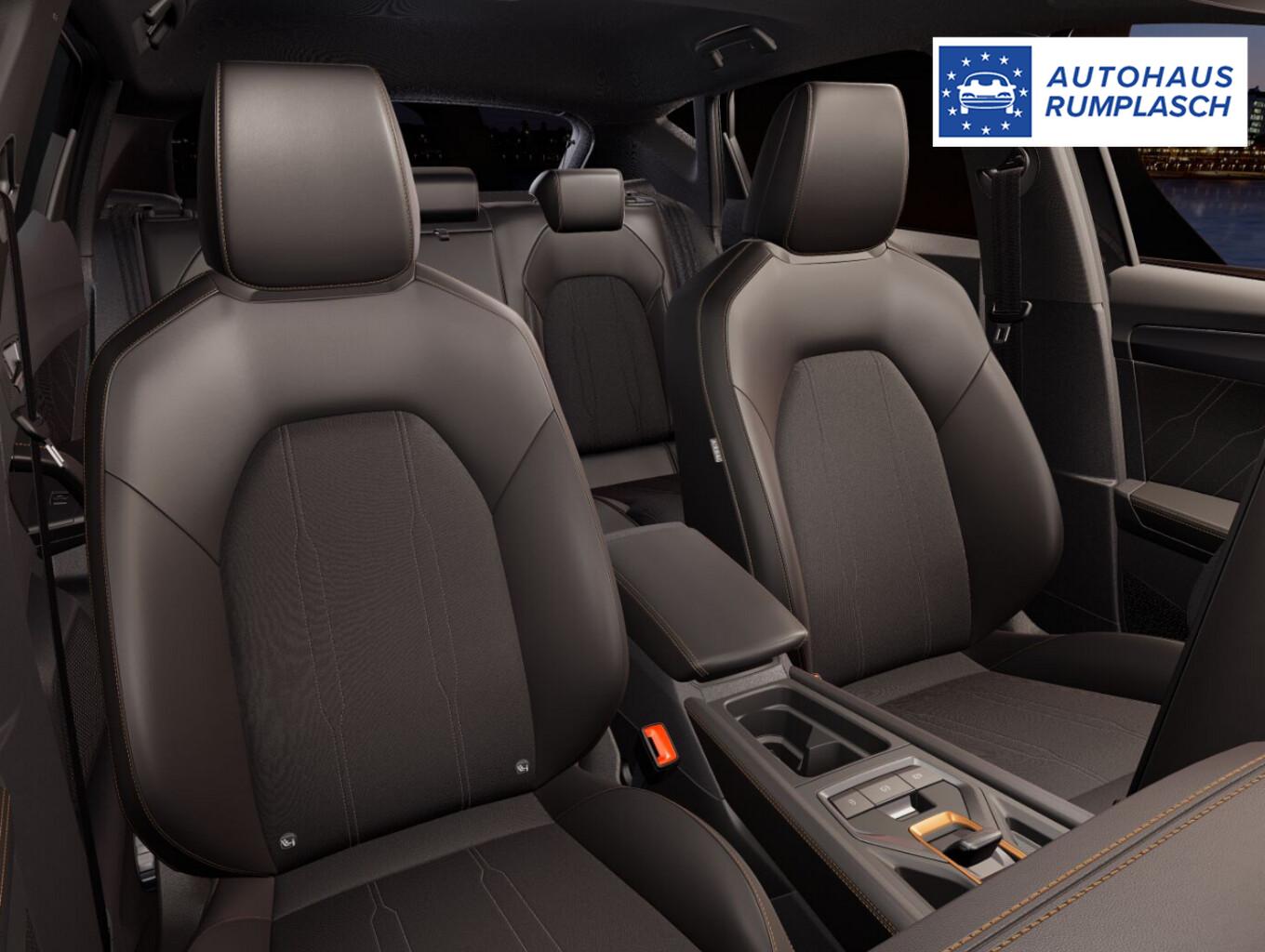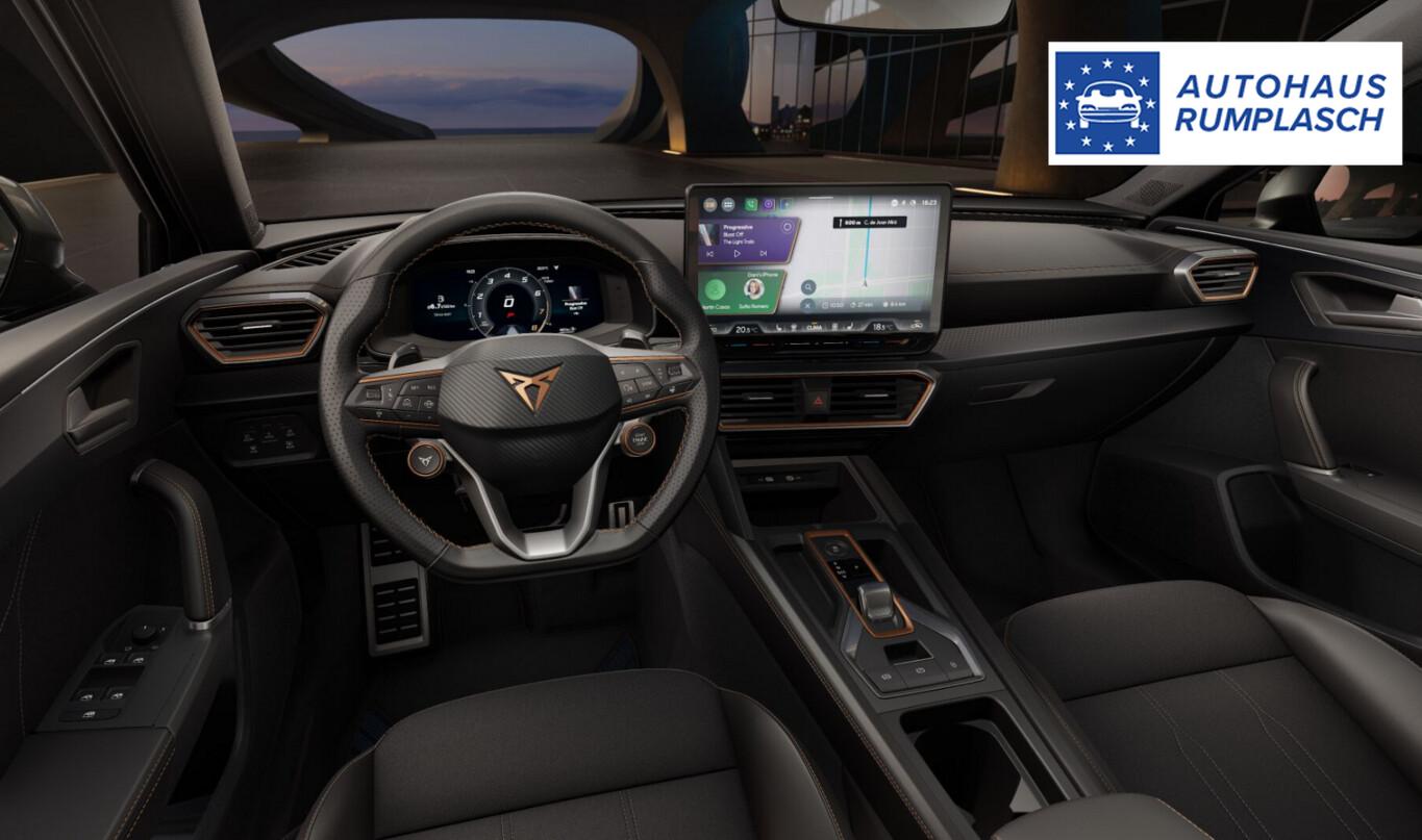 Intelligent-Drive-Paket II (Fahrassistenz-Paket XL / Mobile Online Dienste Cupra Connect plus / Audio-Navigationssystem mit Touchscreen Farbbildschirm 12,9" / Fahrassistenz-System: Totwinkel-Assistent mit Auspark-Assistent, Spurwechselassistent und Ausstiegswarnung / Fahrassistenz-System: Intelligent Park Assist (IPA) / Fahrassistenz-System: Pre-Crash-System / Fahrassistenz-System: Spurhalteassistent Plus inkl. Travel Assist, Emergency Assist und Stauassistent), Skyline-Paket (Panorama Schiebe-/Hebedach elektrisch), Matrix-LED-Scheinwerfer mit LED-Signatur, Edge-Paket (Ambiente-Beleuchtung LED / Ambiente-Beleuchtung Smart Ambient Light / Schließ-/Startsystem Kessy Advanced / Rückfahrkamera / Diebstahl-Warnanlage mit Innenraumüberwachung und Abschleppschutz), Winter-Paket (Sitzheizung vorn), Anhängerkupplung Vorbereitung, Reserverad als Notrad, Fahrassistenz-System: Multikollisionsbremse, Heckleuchten LED mit dynamischem Blinklicht, Induktionsladeschale für Smartphone (15W), Isofix-Aufnahmen für Kindersitz an Rücksitz, LM-Felgen 7,5x18 (Garbi), Nebelscheinwerfer LED mit Abbiegelicht, Pedale Aluminium, Reifen 225/40 R18, Schadstoffarm nach Abgasnorm Euro 6e (EU6 EA), Licht- und Sicht-Paket (Innenspiegel mit Abblendautomatik / Einschaltautomatik für Fahrlicht / Licht- und Regensensor / Lichtassistent (Coming Home, Leaving Home)), Abdeckkappen Außenspiegel Dark Aluminium, Connectivity-Box, Dachhimmel schwarz, Einstiegsleisten vorn beleuchtet, Fensterzierleisten schwarz hochglänzend, Gepäck-/Laderaumboden doppelt, Karosserie: 5-türig, Kombiinstrument digital (virtual cockpit), Leseleuchten hinten LED, Leseleuchten vorn LED, Mild-Hybrid 110 kW (Motor 1,5 Ltr. - 110 kW eTSI), Mobile Online Dienste Cupra Connect, Parkbremse elektrisch mit Auto-Hold-Funktion, Radioempfang digital (DAB+), Sitzbezug / Polsterung: Stoff/Kunstleder schwarz (Sharp Textil), Warnanlage für Sicherheitsgurt-System, Full Link (MirrorLink, Apple CarPlay und Android Auto), USB-Ladeanschlüsse (2-fach, Typ C) für 2.Sitzreihe, USB-Schnittstelle vorn (2-fach, Typ C), Antriebsart: Frontantrieb, Elektron. Differentialsperre (XDS), Getriebe 7-Gang - Doppelkupplungsgetriebe DSG, Klimaanlage Climatronic 3-Zonen, Airbag Beifahrerseite abschaltbar, Airbag Fahrer-/Beifahrerseite, Fensterheber elektrisch vorn + hinten mit Komfortschaltung, Kopf-Airbag-System, Mittelarmlehne vorn, Rücksitzlehne geteilt/klappbar mit Mittelarmlehne und Durchladeeinrichtung, Seitenairbag vorn mitte (Central Airbag), Seitenscheiben ab 2.Sitzreihe und Heckscheibe dunkel getönt (Privacy Glass), Sportsitze vorn, Fahrassistenz-System: Fahrprofilauswahl (CUPRA Drive Profile), Fahrassistenz-System: Autom. Distanzregelung (ACC / PCC) mit vorausschauender Geschw.-Regelung, Fahrassistenz-System: Verkehrszeichenerkennung, Lenkrad heizbar (CUPRA Supersport, Leder) mit Multifunktion und Schaltfunktion, Progressivlenkung, Außenspiegel elektr. verstell-, heiz- und anklappbar mit Spiegelabsenkung und Welcome Light, Fahrassistenz-System: Fernlichtassistent, Einparkhilfe vorn und hinten, Fahrassistenz-System: Müdigkeitserkennung, Fahrassistenz-System: Umfeldbeobachtungssystem (Front assist) mit City-Notbremsfunktion, Reifenkontroll-Anzeige