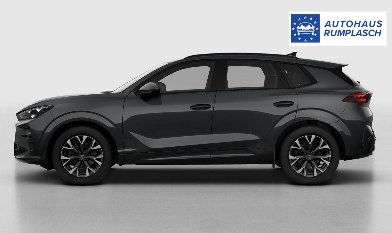 Sitzheizung vorn, Anschlussgarantie (1 Jahr / 90.000 km), Außenspiegel elektr. verstellbar, Isofix-Aufnahmen für Kindersitz an Beifahrersitz und Rücksitz, Klimaanlage Climatronic 1-Zonen, Lendenwirbelstützen vorn, Leuchtweitenregulierung automatisch, LM-Felgen 8x18, Navigation in Verbindung mit dem Smartphone (über Apple Carplay / Android Auto /...), Reifen 235/55 R18, Rücksitzlehne geteilt/klappbar, Schadstoffarm nach Abgasnorm Euro 6e (EU6 EB), Serviceintervall 30.000 km oder 2 Jahre, Startanlage Keyless Go (Start-Stop-Knopf), Media-System Plus (Audiosystem mit 12,9" Touchscreen-Farbdisplay), Motor 1,5 Ltr. - 110 kW 16V eTSI Mild-Hybrid (DXDB) (Mild-Hybrid 110 kW (Motor 1,5 Ltr. - 110 kW eTSI)), Connectivity-Box, Dachhimmel schwarz, Doppeltonhorn, Fahrassistenz-System: Abbiegebremsfunktion und Ausweichunterstützung, Fußraumbeleuchtung LED, Gepäck-/Laderaumboden doppelt, Geschwindigkeitsbegrenzer mit vorausschauender Geschw.-Regelung, Innenspiegel mit Abblendautomatik, Karosserie: 5-türig, Kombiinstrument digital (10,25 Zoll), Kopfstützen hinten (3-fach), Leseleuchten hinten LED, Leseleuchten vorn LED, Parkbremse elektrisch mit Auto-Hold-Funktion, Radioempfang digital (DAB+), Radstand Standard, Sitz vorn links höhenverstellbar, Sitz vorn rechts höhenverstellbar, Sitzbezug / Polsterung: Stoff/Kunstleder Deep Ocean mit Copper Steppung, Sonnenblende links mit Spiegel (beleuchtet), Sonnenblende rechts mit Spiegel (beleuchtet), Warnanlage für Sicherheitsgurt-System, Full Link (MirrorLink, Apple CarPlay und Android Auto), Sprachsteuerungs-System, USB-Ladeanschlüsse (2-fach, Typ C) für 2.Sitzreihe, USB-Schnittstelle vorn (2-fach, Typ C), Antriebsart: Frontantrieb, Elektron. Stabilitäts-Programm (ESP) mit Bremskraftverstärker elektro-mechanisch, Wegfahrsperre (elektronisch), Getriebe 7-Gang - Doppelkupplungsgetriebe DSG, Airbag Beifahrerseite abschaltbar, Airbag Fahrer-/Beifahrerseite, Fensterheber elektrisch vorn + hinten mit Komfortschaltung, Kopf-Airbag-System, Mittelarmlehne vorn, Seitenairbag, Seitenairbag vorn mitte (Central Airbag), Sport-Schalensitze vorn mit integrierten Kopfstützen, Fahrassistenz-System: Fahrprofilauswahl (CUPRA Drive Profile), Dachreling schwarz, Wärmeschutzverglasung, Fahrassistenz-System: Verkehrszeichenerkennung, Geschwindigkeits-Regelanlage (Tempomat), Rückfahrkamera, Notrufsystem, Lenkrad (Sport/Leder) mit Multifunktion und Schaltfunktion, Progressivlenkung, Heckleuchten LED mit dynamischem Blinklicht, Licht- und Regensensor, Lichtassistent (Coming Home, Leaving Home), Nebelscheinwerfer LED mit Abbiegelicht, Scheinwerfer Voll-LED, Tagfahrlicht LED, Einparkhilfe vorn und hinten, Fahrassistenz-System: Ablenkungs- und Müdigkeitserkennung, Fahrassistenz-System: Kreuzungs-Assistent, Fahrassistenz-System: Spurhalteassistent, Fahrassistenz-System: Umfeldbeobachtungssystem (Front assist) mit City-Notbremsfunktion, Reifenkontroll-Anzeige