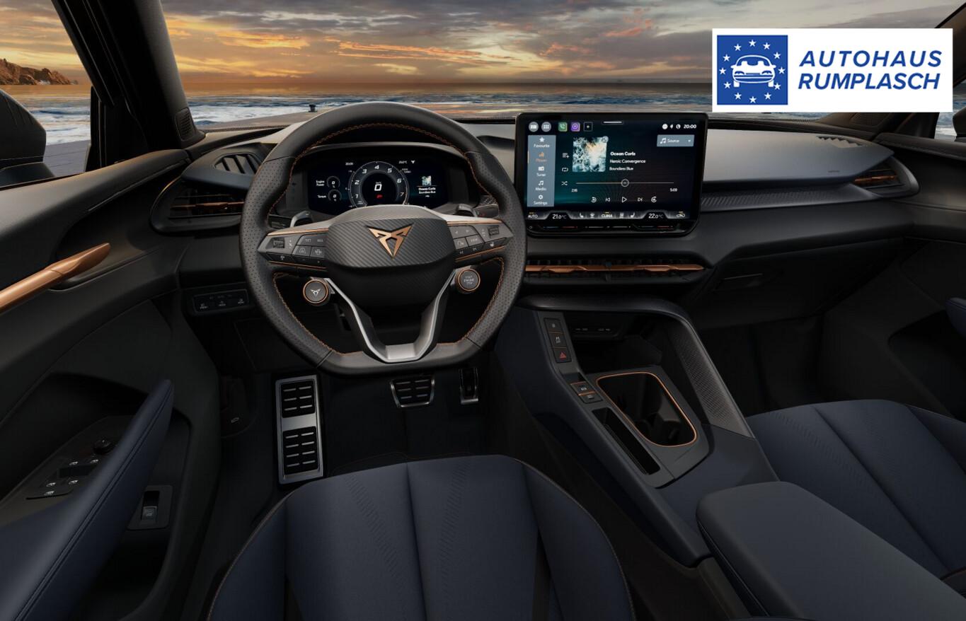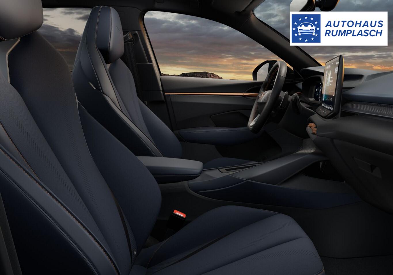 Heckklappe/-Deckel elektr. betätigt (öffnen + schliessen, sensorgesteuert), Diebstahl-Warnanlage mit Innenraumüberwachung und Abschleppschutz, Induktionsladeschale für Smartphone, 2 Leseleuchte vorn und hinten, 2 USB-Schnittstelle vorne, Adaptive Geschwindigkeits-Regelanlage (ACC), Anschlussgarantie: 1 Jahr oder 90.000 km, Bremsenergie-Rückgewinnung, Diebstahlsicherung für Räder (Felgenschlösser), Edge-Paket, Fahrassistenz-System: Einparkhilfe vorn und hinten inkl. Rückfahrkamera, Fensterzierleisten Schwarz, Feststellbremse, Fußgängerschutz-System, Gepäckraumboden variabel, Heckscheibenwischer, Infotainmentsystem mit 12,9 Zoll Farb-Touchscreen, Isofix-Aufnahmen für Kindersitz am Beifahrersitz, Klimaanlage Climatronic 3-Zonen, Kopfstütze hinten (3-fach), Kopfstützen vorn, LM-Felgen 18 Zoll, Motor 1,5 Ltr. - 110 kW eTSI, Nebelschlusslicht, Radioempfang Digital (DAB), Reifen 235/55 R18, Schadstoffarm nach Abgasnorm Euro 6e (EU6EA), Schließ-/Startsystem Keyless Advanced mit Safelock, Service-/Wartungsintervall: 2 Jahre oder 30.000 km, Sicherheitsgurt-Kontrollsystem, Sitzbezug/Polsterung : Stoff, Sitzheizung vorn, Sportsitze vorn, Sprachsteuerung, Türgriffe in Wagenfarbe, Vorbereitung Navigation, Licht- und Sicht-Paket (Innenspiegel mit Abblendautomatik / Licht- und Regensensor / Lichtassistent (Coming Home, Leaving Home)), Scheinwerfer Voll-LED (Leuchtweitenregelung automatisch), Ambiente-Beleuchtung LED, Einstiegsleisten (Aluminium) vorn, beleuchtet, Fußraumbeleuchtung LED, Karosserie: 5-türig, Kombiinstrument digital (virtual cockpit), Lendenwirbelstütze Sitz vorn links, verstellbar, Lendenwirbelstütze Sitz vorn rechts, verstellbar, Mittelarmlehne hinten, Mittelkonsole vorn mit Mittelarmlehne, Becherhalter, Ablagebox und Luftausströmer hinten, Otto-Partikelfilter (OPF), Radstand 2681 mm, Sitz vorn links höhenverstellbar, Sitz vorn rechts höhenverstellbar, Sonnenblende links mit Spiegel (beleuchtet), Sonnenblende rechts mit Spiegel (beleuchtet), Full Link (MirrorLink, Apple CarPlay und Android Auto), USB-Ladeanschlüsse (2-fach, Typ C) für 2.Sitzreihe, Antriebsart: Frontantrieb, Elektron. Stabilitätskontrolle (ESC), Wegfahrsperre (elektronisch), Getriebe 7-Gang - Doppelkupplungsgetriebe DSG, Airbag Beifahrerseite abschaltbar, Airbag Fahrer-/Beifahrerseite, Fensterheber elektrisch vorn + hinten mit Komfortschaltung, Isofix-Aufnahmen für Kindersitz an Rücksitz, Kopf-Airbag-System, Rücksitzlehne geteilt/klappbar (1/3-2/3), Schließ-/Startsystem Kessy, Seitenairbag, Seitenscheiben hinten und Heckscheibe abgedunkelt, Bordcomputer, Fahrassistenz-System: Fahrprofilauswahl (CUPRA Drive Profile), Dachreling schwarz, Wärmeschutzverglasung, Fahrassistenz-System: Verkehrszeichenerkennung, Notrufsystem, Lenkrad heizbar (Sport/Leder) mit Multifunktion und Schaltfunktion, Servolenkung elektro-mechanisch, Außenspiegel elektr. verstell-, heiz- und anklappbar mit Spiegelabsenkung und Welcome Light, Heckleuchten LED mit dynamischem Blinklicht, Nebelscheinwerfer LED mit Abbiegelicht, Tagfahrlicht LED, Fahrassistenz-System: Müdigkeitserkennung, Fahrassistenz-System: Spurhalteassistent, Fahrassistenz-System: Umfeldbeobachtungssystem (Front assist) mit City-Notbremsfunktion, Reifenkontroll-Anzeige, Start/Stop-Anlage