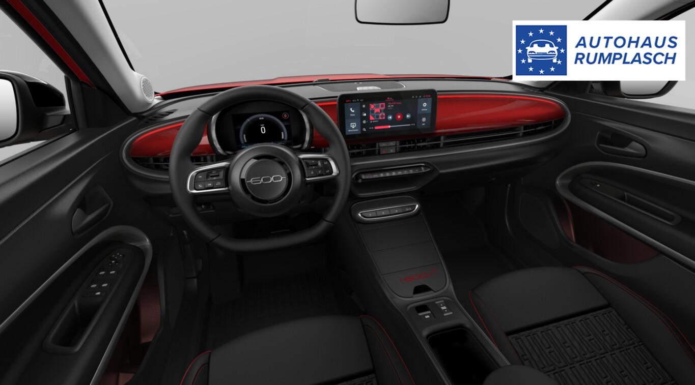 Ambiente-Beleuchtung mehrfarbig, Navigation in Verbindung mit dem Smartphone (über Apple Carplay / Android Auto /...), Reifen 215/65 R16, Reifen-Reparaturkit Fix&Go, Scheibenwischer mit Regensensor, Schlüsselloses Startsystem, Stahlfelgen 16", Wärmepumpe, Ablagetasche an Vordersitzlehnen, Elektromotor 115 kW (cont. 62 kW), Fensterheber elektr. vorn mit Komfortschaltung, HV-Batterie 54 kWh (Lithium-Ionen), Infotainment-System: UConnect mit DAB+ Radioempfang (Touchscreen 10,25"), Innenausstattung: Dekoreinlagen Armaturenbrett, rot, Instrumentenanzeige Farbdisplay, 7 Zoll, Karosserie: 5-türig, Kopfstützen hinten, Ladeanschluss 11 kW, Ladekabel mit Typ 2-Stecker (Mode 3), One Pedal Drive (elektronisches Gaspedal), Parkbremse elektrisch, Radstand 2562 mm, Sitz vorn links verstellbar (6-fach), Sitzbezug / Polsterung: Stoff, Sitzverstellung vorn rechts (4-fach), Sound-System mit 4 Lautsprecher, Türgriffe innen verchromt, Warnanlage für Sicherheitsgurte vorn und hinten, Smartphone Schnittstelle (Apple CarPlay & Android Auto), USB-Anschlüsse (Typ C und Typ A), Antriebsart: Frontantrieb, Getriebe für Elektrofahrzeug, Klimaautomatik, Airbag Beifahrerseite, Airbag Fahrerseite, Mittelarmlehne vorn, Rücksitzbank klappbar, Fahrmodusschalter, Fahrassistenz-System: Verkehrszeichenerkennung, Geschwindigkeits-Regelanlage (Tempomat), Lenkrad (Soft Touch) mit Multifunktion, Servolenkung elektrisch, Außenspiegel elektr. verstellbar, beide, Heckleuchten LED, Nebelscheinwerfer LED, Nebelscheinwerfer mit integriertem Abbiegelicht, Scheinwerfer LED, Tagfahrlicht LED, Einparkhilfe hinten, Fahrassistenz-System: Aufmerksamkeits-Assistent, Fahrassistenz-System: Autonomer Notbrems-Assistent (AEB), Fahrassistenz-System: Spurhalteassistent