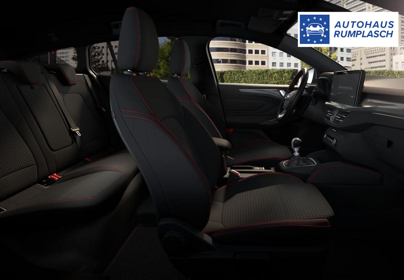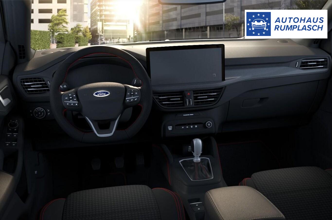 Fahrassistenz-Paket 2 (Fahrassistenz-System: Intelligent Drive Assist, teilautomatisierte Fahrassistenz / Adaptive Geschwindigkeitsregelanlage (Adaptive Cruise Control / ACC) / Fahrassistenz-System: Falschfahrer-Warnfunktion / Fahrassistenz-System: Stauassistent inkl. Stop&Go-Funktion / Fahrassistenz-System: Verkehrsschildassistent / Rückfahrkamera mit Split View / Außenspiegel elektr. anklappbar / Fahrassistenz-System: Totwinkel-Assistent, Cross Traffic Alert und Notbremsfunktion / Scheibenwischer mit Regensensor / Fahrassistenz-System: Ausweich-Assistent (Evasive Steer Assistance, ESA) / Fahrassistenz-System: Fahrspur-Pilot), Winter-Paket (Lenkrad heizbar / Sitzheizung vorn / Frontscheibe heizbar), FordPass Connect inkl. eCall (Fahrassistenz-System: Sicherheitssystem SYNC mit automatischem Notruf), 6 Lautsprecher, Audio-Navigationssystem (mit Ford SYNC 4 und 13,2" Touchscreen), Audiobedienung am Lenkrad, Fahrassistenz-System: Fernlichtassistent (Scheinwerfer mit Abblendautomatik), Fahrassistenz-System: Müdigkeitserkennungs-Sensor, Fahrmodusschalter, LM-Felgen 17 Zoll, Notbremsleuchten, Parkbremse elektrisch, Radioempfang digital (DAB), Reifen 215/50 R17, Schadstoffarm nach Abgasnorm Euro 6e (EU6 EA), Smartphone-Schnittstelle (Apple Carplay / Android Auto), Sprachsteuerung und Bluetooth-Schnittstelle, Intelligenter Geschwindigkeits-Begrenzer (Geschwindigkeits-Begrenzeranlage), Sitz vorn links höhenverstellbar (Lendenwirbelstütze Sitz vorn links), Fahrassistenz-System: Pre-Collision-System (Fahrassistenz-System: Auffahrwarnsystem), Scheinwerfer LED (Heckleuchten LED / Nebelscheinwerfer mit statischem Abbiegelicht), Intelligent Protection System (IPS) (3-Punkt-Sicherheitsgurt hinten / Gurtstraffer / Airbag Fahrer-/Beifahrerseite / Kopf-Schulter-Airbag vorn und hinten / Seitenairbag vorn), Bodenleuchte im Außenspiegel, Dachhimmel Stoff, dunkel, Dachspoiler Wagenfarbe, Doppelendrohr Auspuffanlage, Elektr. Bremskraftverteilung (EBD), Gepäckraumabdeckung / Rollo, Induktionsladeschale für mobile Endgeräte, Innenspiegel mit Abblendautomatik, Karosserie: 5-türig, Kombiinstrument Digitalanzeige 12,3 Zoll, Mild-Hybrid 114 kW (Motor 1,0 Ltr. - 114 kW EcoBoost), Schalt-/Wählhebelgriff Leder, Steckdose (12V-Anschluß) im Koffer-/Laderaum, Anti-Blockier-System (ABS), Fahrassistenz-System: Notbrems-Assistent, Fahrassistenz-System: Post-Collision-System, Antischlupfregelung (ASR), Elektron. Stabilitäts-Programm (ESP), Getriebe 7-Gang - Doppelkupplungsgetriebe, Klimaautomatik 2-Zonen, Airbag Beifahrerseite abschaltbar, Durchladeeinrichtung (Mittelarmlehne hinten), Fensterheber elektrisch vorn + hinten mit Komfortschließung, Isofix-Aufnahmen für Kindersitz, KeyFree-System, Power KeyFree-Startfunktion, Rücksitzlehne geteilt/klappbar (60:40), Sportsitze vorn, Verglasung hinten abgedunkelt (Privacy Glass), Zentralverriegelung mit Fernbedienung, Dachreling schwarz, Fahrassistenz-System: Berganfahr-Assistent (Hill-Holder), Lenkrad (Sport/Leder, ST), Servolenkung elektrisch, Außenspiegel elektr. verstell- und heizbar, Nebelscheinwerfer LED, Scheinwerfer-Assistent mit Tag-/Nachtsensor, Tagfahrlicht LED, Parkpilotsystem vorn und hinten, Fahrassistenz-System: Spurhalteassistent, Reifendruck-Kontrollsystem