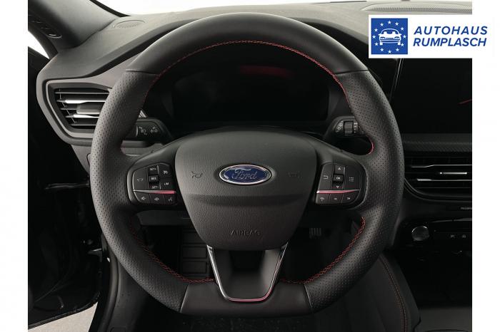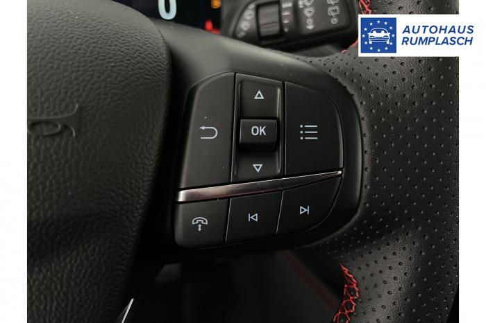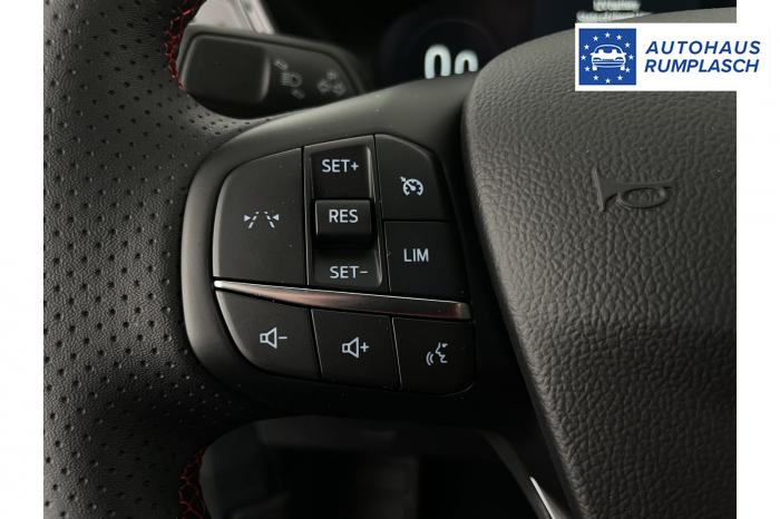 DAB/DAB+ (Digital Audio Broadcasting), Ford SYNC 4 inkl. Ford Navigationssystem, Induktive Ladestation für mobile Endgeräte, USB-Anschluss, Ambientebeleuchtung vorn, LED-Rückleuchten, LED-Scheinwerfer, Seitenscheiben ab 2. Sitzreihe und Heckscheibe dunkel getönt, Dachhimmel aus Webstoff, Schwarz, Lenkrad, ST-Line-Design, unten abgeflacht und mit roten Ziernähten, Sensico in Leder-Optik, Lenkrad, beheizbar, Mittelkonsole vorn mit integrierter Armauflage, Frontscheibe, beheizbar, Klimaanlage mit automatischer Temperaturkontrolle, für Fahrer und Beifahrer getrennt regelbar (2-Zonen-Klimaautomatik), Winter-Paket (Vordersitze, beheizbar / Frontscheibe, beheizbar / Lenkrad, beheizbar / Äußere Rücksitze, beheizbar), 18, Leichtmetallräder 5-Speichen-Design in Rock Metallic, Notrad, Frontairbag für Fahrer und Beifahrer, Kopf-und Schulterairbags vorne und hinten, eCall, Vordersitze, beheizbar, Vordersitze, manuell einstellbar inkl. manuell einstellbarer Lendenwirbelstütze, Äußere Rücksitze, beheizbar, Ford Protect Garantie-Schutzbrief, für das 3. bis 5. Jahr bis max. 100.000km, 12-Volt-Anschluss im Gepäckraum, Fahrspur-Assistent inkl. Fahrspurhalte-Assistent, Fernlicht-Assistent [#07] , Feststellbremse, elektrisch mit Auto Hold-Funktion, Ford Key Free-System, Geschwindigkeitsregelanlage, Park-Pilot-System, vorn und hinten, Reifendruckkontrollsystem (TPMS), Rückfahrkamera, Scheibenwischer mit Regensensor, Selektiver Fahrmodus-Schalter (Normal, Sport, Eco, Rutschig und unbefestigte Straßen), Umstellung Infotainment / Bordcomputer auf DE, Verkehrsschild-Erkennungssystem [#C8] , Anhängevorrichtungs-Vorbereitungs-Set, Außenspiegel in Wagenfarbe lackiert, EU-Fahrzeug mit Tageszulassung