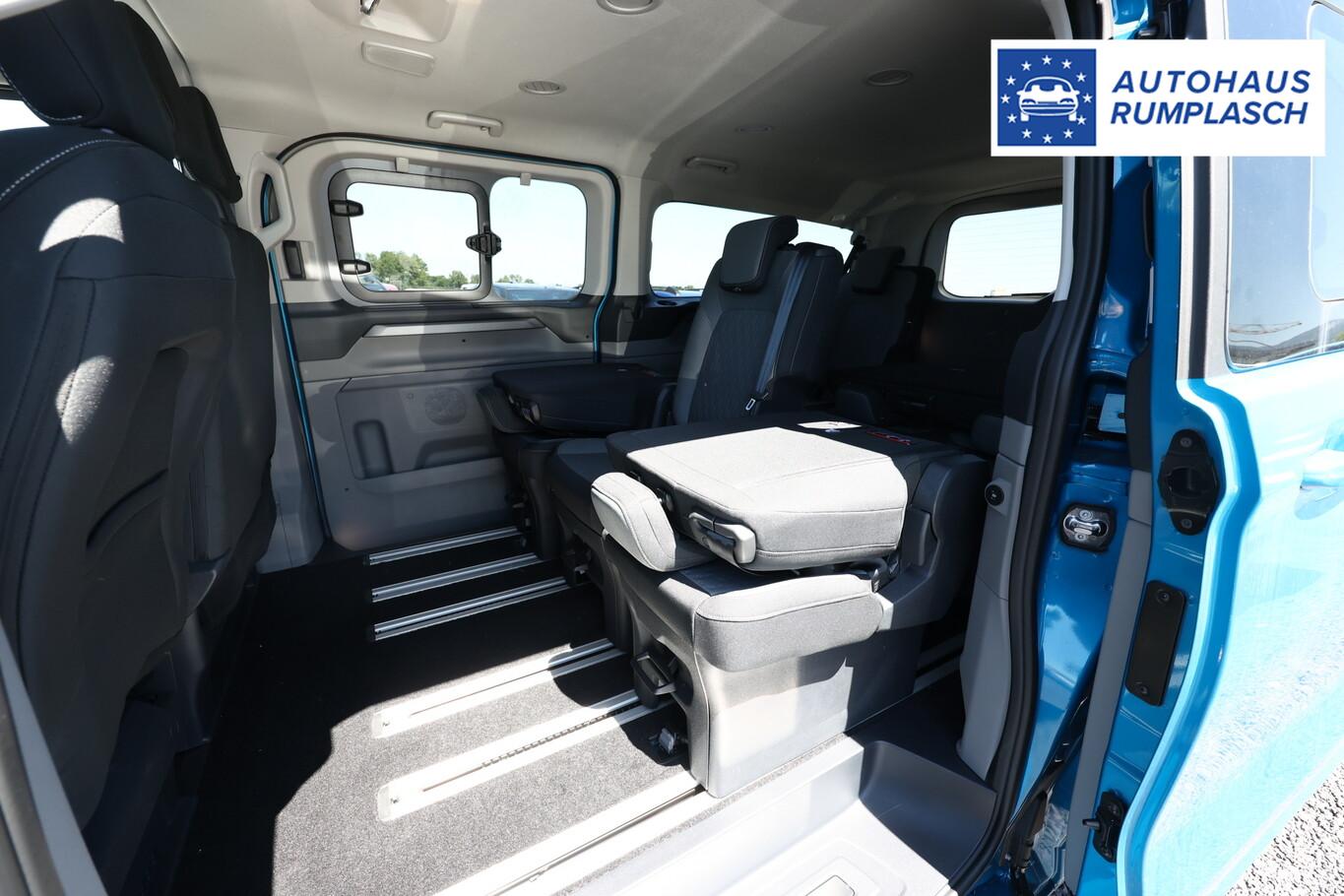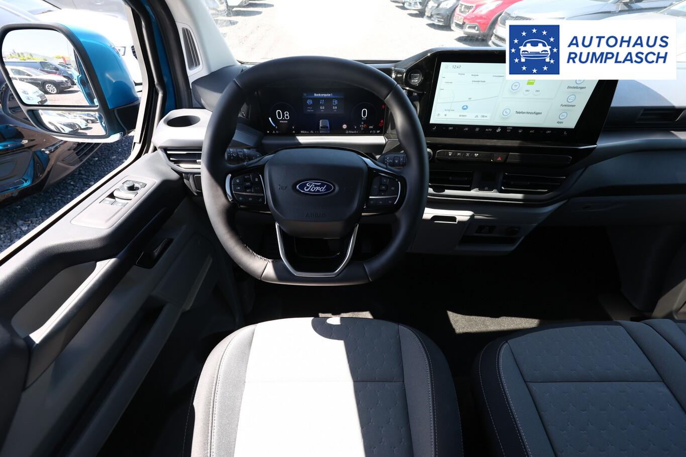 Technologie-Paket 5 (Audiosystem: Radioempfang Digital (DAB / DAB+) mit 13" Multifunktionsdisplay und SYNC 4 / Außenspiegel elektr. anklappbar / Fahrassistenz-System: Falschfahrer-Warnfunktion / Fahrassistenz-System: Notbrems-Assistent, rückwärts / Fahrassistenz-System: Spurwechsel-Warnsystem / Audio-Navigationssystem / Adaptive Geschwindigkeitsregelanlage / Fahrassistenz-System: Adaptive Geschwindigkeitsregelanlage (ACC, Stop&Go) / Außenspiegel elektr. verstell- und heizbar / Blinkleuchte in Außenspiegel integriert / Fahrassistenz-System: Totwinkel-Assistent inkl. Cross Traffic Alert / Fahrassistenz-System: Müdigkeits-Warner / Fahrassistenz-System: Spurhalteassistent), Klimaautomatik 3-Zonen (Zusatzheizung elektrisch / Zusatzheizung hinten mit Temperaturregelung), Fenster im Lade-/FG-Raum: - ausstellbar, 2.Reihe, Vorbereitung Anhängerkupplung elektrisch (Steckdose und Kabel), 10 Lautsprecher inkl. Subwoofer, Beifahrerairbag deaktivierbar, Bluetooth-Freisprecheinrichtung, Einparkhilfe vorn und hinten, Fahrassistenz-System: Pre-Collision-Assist, Fahrassistenz-System: Verkehrszeichenerkennung inkl. Intelligenter Geschwindigkeitsbegrenzer, Fahrersitz mit Lendenwirbelstütze, Isofix-Halterungen hinten, Kopf-Airbag-System vorn, Lenkrad (Leder) mit Multifunktion, LM-Felgen 17 Zoll, Rückfahrkamera, Schadstoffarm nach Abgasnorm Euro 6e (EU6 EA), Schiebetür Lade-/Fahrgastraum links, Servolenkung elektrisch, Sitz-Paket: Fahrersitz (4-fach verstellbar) - Beifahrerdoppelsitz, Seitenairbag und Sitzheizung (äußere Sitze), Sitzbezug-/Polsterung: Stoff schwarz / Medium Urban Grey, Smartphone-Schnittstelle kabellos (Apple CarPlay / Android Auto), Türgriffe außen in Wagenfarbe, Verglasung hinten ab B-Säule verdunkelt, Zentralverriegelung / Startanlage Keyless System, Außenspiegel in Wagenfarbe, Bodenbelag: Teppich im Lade-/Fahrgastraum, Handschuhfach abschließbar, Heckklappe mit Verglasung, Heckscheibe heizbar, Heckscheibenwischer, Heizung mit Umluftschaltung, Laderaumleuchte LED, Motor 2,0 Ltr. - 125 kW EcoBlue KAT, Power KeyFree-Startfunktion, Reifen 215/60 R17C, Rücksitz-Paket 5 (3 Einzelsitze 2.Reihe / 1 Einzelsitz und Doppelsitzbank 3.Reihe), Schiebetür Lade-/Fahrgastraum rechts, Stoßfänger in Wagenfarbe, Verzurrösen (4), Anti-Blockier-System (ABS), Antriebsart: Frontantrieb, Elektron. Stabilitäts-Programm (ESP), LM-Felgen 6,5x17 (6-Doppelspeichen), Traktionskontrolle, Getriebe Automatik - (8-Stufen), Airbag Beifahrerseite, Airbag Fahrerseite, Fensterheber elektrisch, Zentralverriegelung mit Fernbedienung, Bordcomputer, Frontscheibe heizbar, Fahrassistenz-System: Berganfahr-Assistent, Fahrassistenz-System: Fernlichtassistent (Scheinwerfer mit Abblendautomatik), Scheibenwischer mit Regensensor, Scheinwerfer LED, Tagfahrlicht LED, Reifendruck-Kontrollsystem, Start/Stop-Anlage