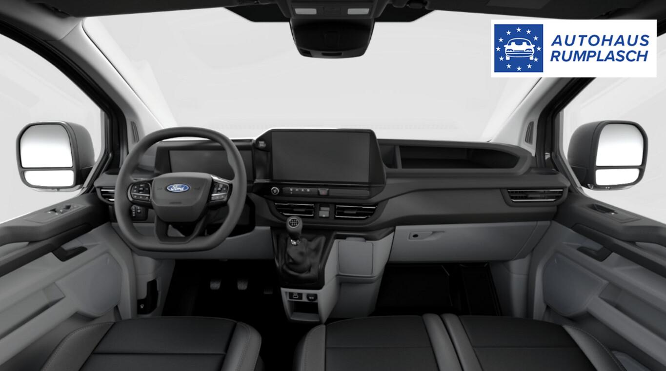 Anhängerkupplung: Kugelkopf fest, Laderaumschutz-Paket (Bodenbelag: Vinyl im Lade-/Fahrgastraum / Laderaumleuchte LED, extra hell / Verkleidung im Lade-/FG-Raum: hoch), Sitz-Paket 11A: Fahrersitz (4-fach verstellbar) - Beifahrerdoppelsitz, Stoff (Sitze im Fahrerhaus: Fahrersitz mit Lendenwirbelstütze), 4 Lautsprecher, AdBlue Tank: 70L, Airbag Fahrerseite, Audiosystem: Radioempfang Digital (DAB / DAB+) mit 13" Multifunktionsdisplay und SYNC 4, Außenspiegel schwarz lackiert, Beifahrerdoppelsitz mit Durchladefunktion, Blinkleuchte in Außenspiegel integriert, Einparkhilfe vorn und hinten, Fahrassistenz-System: Falschfahrer-Warnfunktion, Fahrassistenz-System: Pre-Collision-System, Fahrassistenz-System: Spurhalteassistent, Fahrassistenz-System: Verkehrsschildassistent, Geschwindigkeits-Regelanlage (Tempomat), Intelligenter Geschwindigkeits-Begrenzer, Kraftstofftank: 55 Ltr., Lenkrad mit Multifunktion, Navigation in Verbindung mit dem Smartphone (über Apple Carplay / Android Auto /...), Reifen 215/65 R16, Rückfahrkamera, Schadstoffarm nach Abgasnorm Euro 6e (EU6 EA), Seitenairbag, Smartphone-Schnittstelle (Apple CarPlay / Android Auto), Steckdose 12V, Tagfahrlicht, Verzurrösen (6), Feststellbremse elektrisch, FordPass Connect inkl. eCall, Heckflügeltüren, Karosserie/Aufbau: Kasten Standard, Laderaumtrennwand Metall, Motor 2,0 Ltr. - 110 kW EcoBlue KAT, Power KeyFree-Startfunktion, Radstand 3500 mm, Schiebetür Lade-/Fahrgastraum rechts, Schmutzfänger hinten, Schmutzfänger vorn, Stahlfelgen 6,5x16, Zul. Gesamtgewicht 3,20 t, Anti-Blockier-System (ABS), Antriebsart: Frontantrieb, Elektron. Stabilitäts-Programm (ESP), Getriebe 6-Gang, Klimaautomatik, Airbag Beifahrerseite, Armlehne Fahrersitz, Fensterheber elektrisch, Sitze im Fahrerhaus: Fahrer- und Beifahrersitz heizbar, Zentralverriegelung mit Fernbedienung, Frontscheibe heizbar, Fahrassistenz-System: Berganfahr-Assistent, Außenspiegel elektr. verstell- und heizbar, Fahrassistenz-System: Fernlichtassistent (Scheinwerfer mit Abblendautomatik), Scheibenwischer mit Regensensor, Reifendruck-Kontrollsystem, Rußpartikelfilter, Start/Stop-Anlage