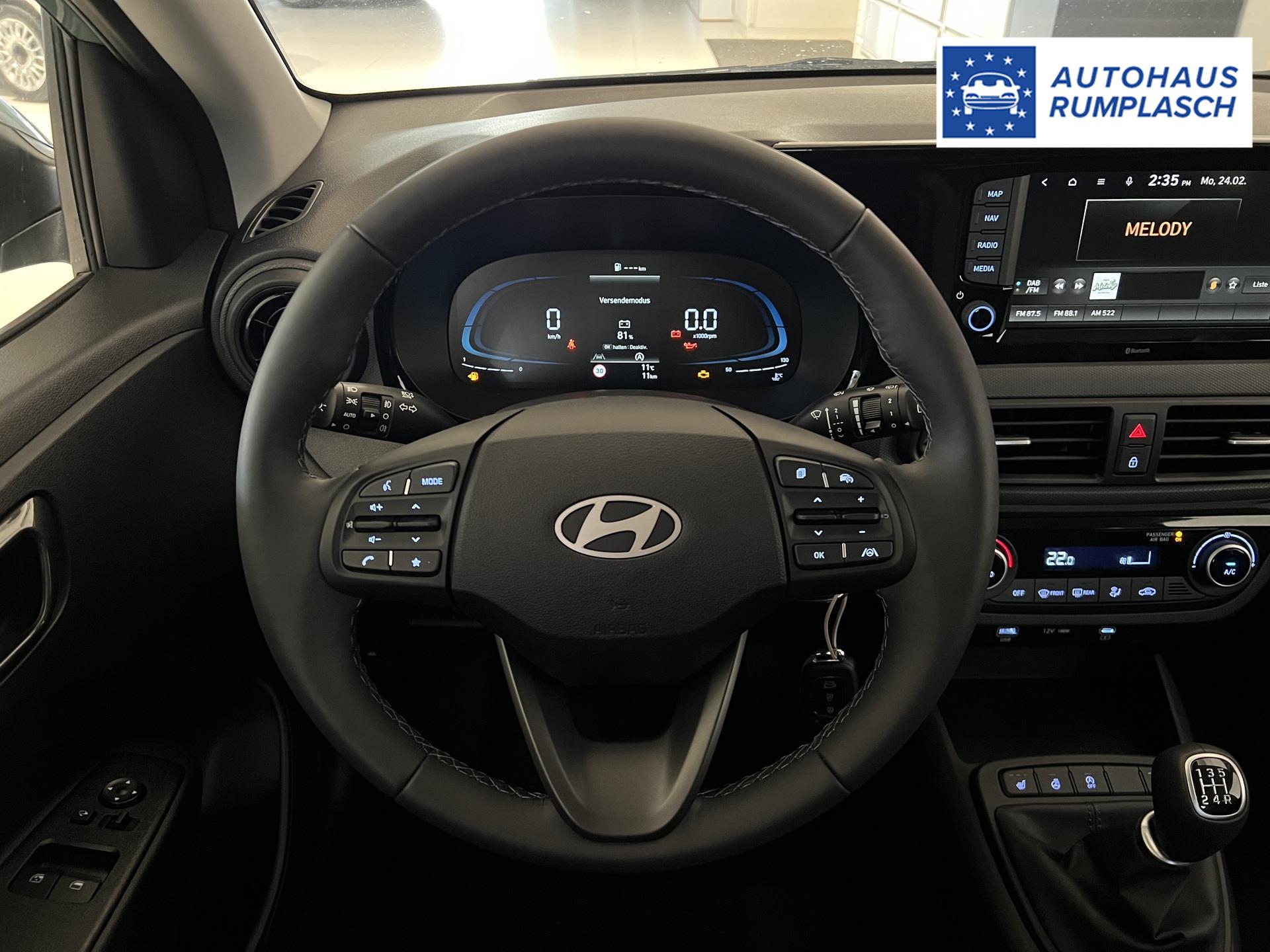 Hyundai i10 GO+ 1.2 MT 58 kW (79 PS) Klimaautomatik, Navigationssystem, Apple CarPlay & Android Auto, Sitzheizung, Lenkradheizung, Einparkhilfe hinten, Rückfahrkamera, Privacy Glass, 15" Leichtmetallfelgen, uvm.