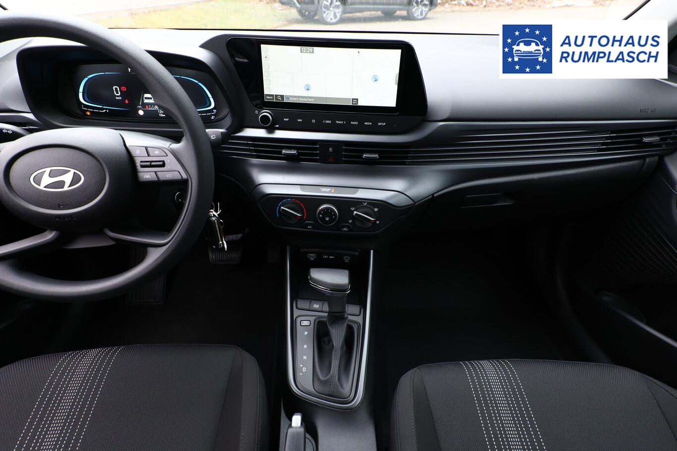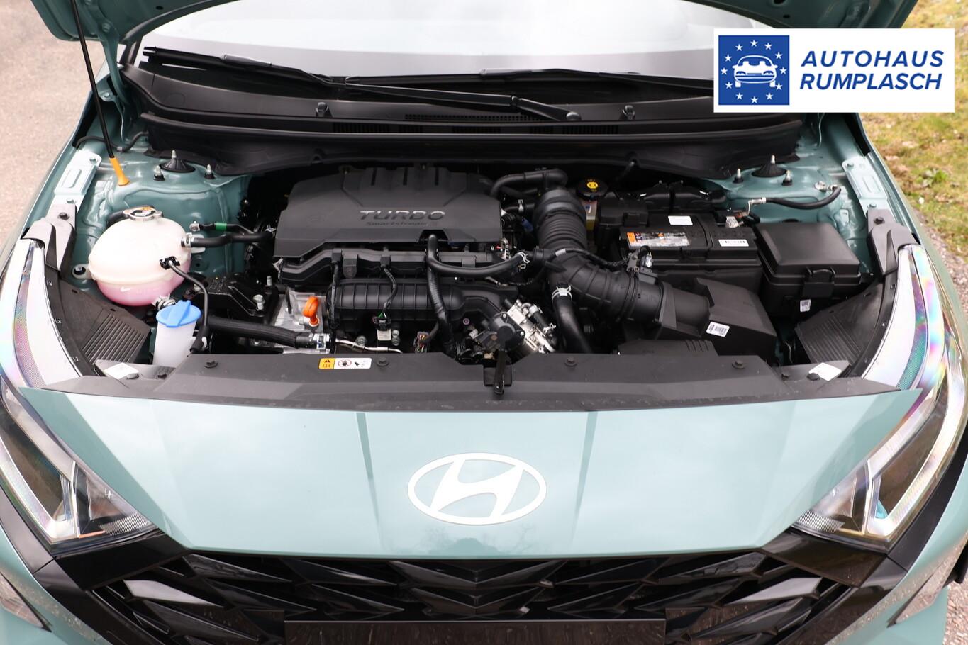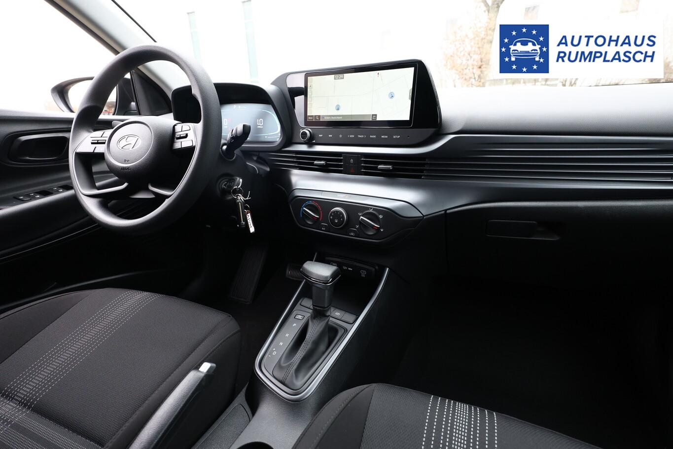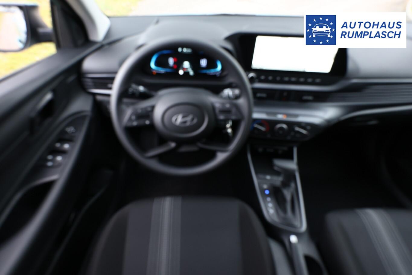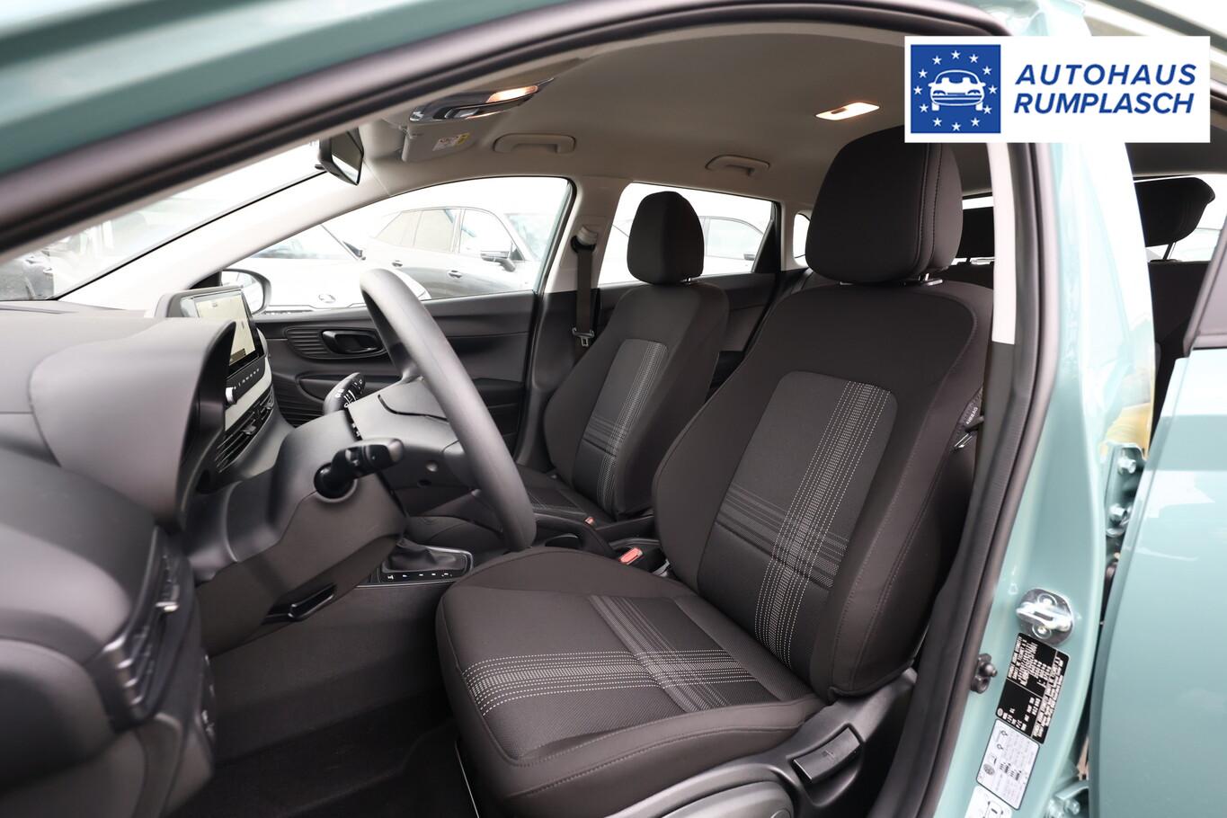 4 Lautsprecher inkl. Hochtöner, Innenspiegel abblendbar, Isofix-Aufnahmen für Kindersitz, Kopfstützen vorn verstellbar, Lenkrad mit Multifunktion, Reifen 185/65 R15, Schadstoffarm nach Abgasnorm Euro 6e (EU6 EA), SmartLink (Apple CarPlay und Android Auto), Stahlfelgen 15 Zoll, Audio-Navigationssystem (Touchscreen-Farbdisplay (10,25 Zoll)), Service-System: Remote Services (Blue Link) (Service-System: Online Update OTA (Over The Air)), Fahrassistenz-System: Autonome Notbremsfunktion inkl. Frontkollisionswarnung (FCA) (Fahrassistenz-System: Autonome Notbremsfunktion inkl. Fahrradfahrererkennung (FCA-Cyc.) / Fahrassistenz-System: Autonome Notbremsfunktion inkl. Fußgängererkennung (FCA-Ped.)), Außenspiegel lackiert, Fahrassistenz-System: Insassenalarm (ROA), Fahrassistenz-System: Multikollisionsbremse (Multi Collision Brake), Heckscheibe heizbar, Karosserie: 5-türig, Kopfstützen hinten verstellbar, Lenksäule (Lenkrad) höhenverstellbar, Lenksäule (Lenkrad) längsverstellbar, Motor 1,0 Ltr. - 74 kW TGDI KAT, Otto-Partikelfilter (OPF), Radioempfang digital (DAB+), Sitz vorn links höhenverstellbar, Sitzbezug / Polsterung: Stoff, Steckdose (12V-Anschluß) vorn, Türgriffe außen Wagenfarbe, Freisprecheinrichtung Bluetooth, USB-Anschluss (Typ C), USB-Anschluss Mittelkonsole, Anti-Blockier-System (ABS), Elektron. Stabilitätskontrolle (ESC) mit Bremsassistent, Wegfahrsperre (elektronisch), Getriebe 7-Gang - Doppelkupplungsgetriebe DCT, Klimaanlage, Airbag Beifahrerseite, Airbag Beifahrerseite abschaltbar, Airbag Fahrerseite, Fensterheber elektrisch hinten, Fensterheber elektrisch vorn, Kopf-Airbag-System, Rücksitzlehne geteilt/klappbar, Seitenairbag vorn, Zentralverriegelung mit Fernbedienung, Fahrassistenz-System: Berganfahrhilfe, Fahrassistenz-System: Verkehrszeichenerkennung, erweitert (Geschwindigkeits-Regel-/Begrenzeranlage), Geschwindigkeits-Regelanlage (Tempomat), Rückfahrkamera, Fahrassistenz-System: Sicherheitssystem mit automatischem Notruf (ERA GLONASS / eCall), Servolenkung, Außenspiegel elektr. verstell- und heizbar, beide, Einschaltautomatik für Fahrlicht / Lichtsensor, Einparkhilfe hinten, Fahrassistenz-System: aktiver Spurhalteassistent (LKAS, Lane Keep Assist System), Reifendruck-Kontrollsystem, Alarmanlage, Start/Stop-Anlage