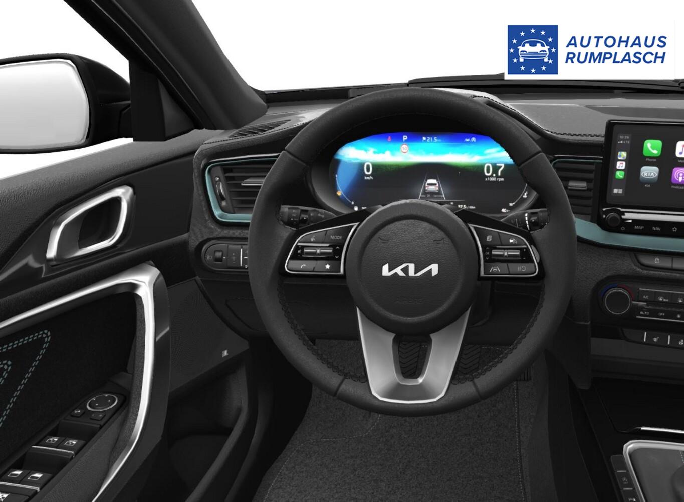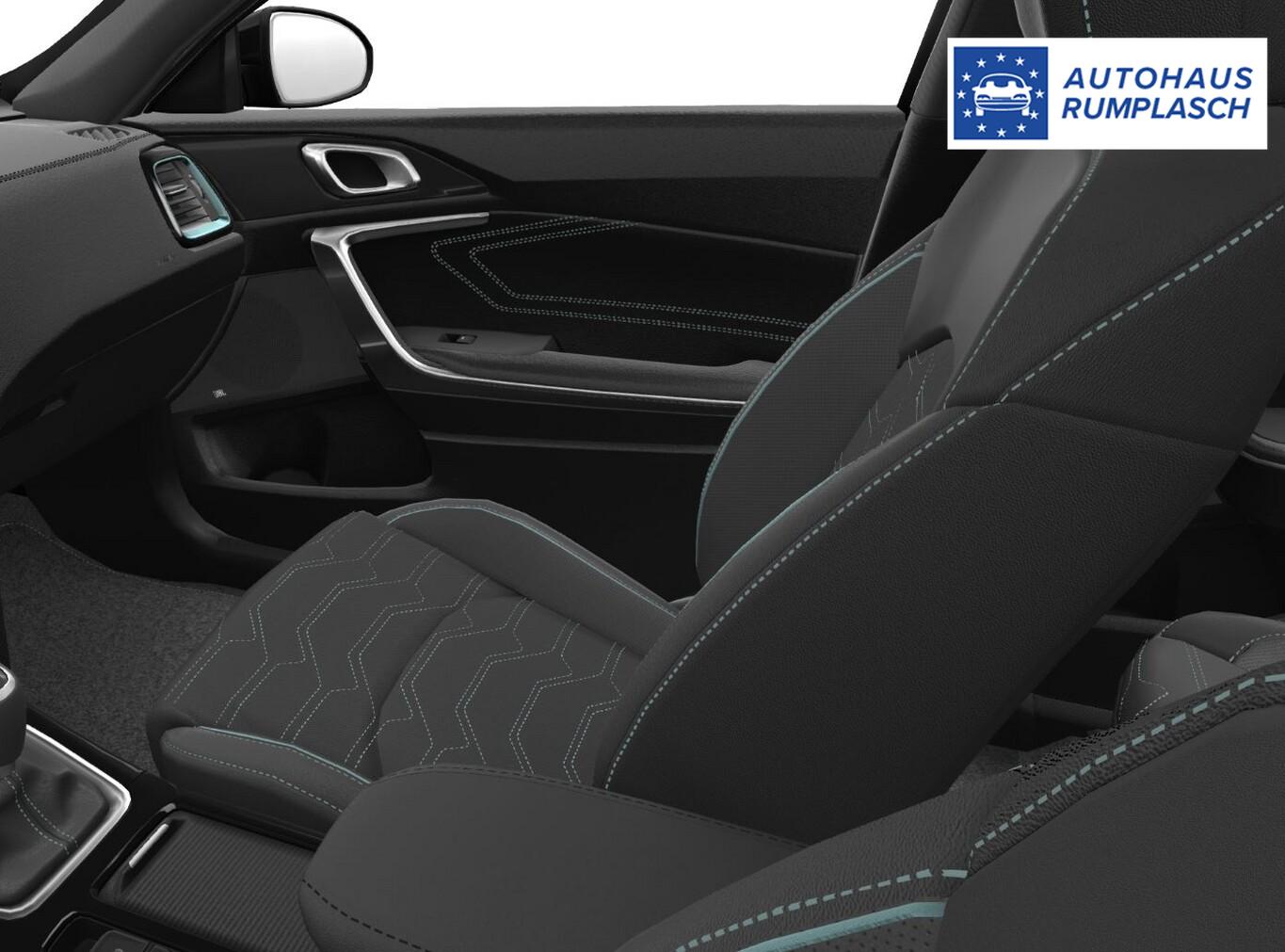 Außenspiegel schwarz, Einparkhilfe vorn, Gepäckraumbeleuchtung, Heckklappenöffnung elektr. (sensorgesteuert), Klimaautomatik, Lendenwirbelstütze Sitz vorn links und rechts, Lenkrad höhen- und tiefenverstellbar, Leseleuchten vorn, LM-Felgen 16", Reifen 205/55 R16, Rücksitzlehne geteilt umklappbar (60:40), Schadstoffarm nach Abgasnorm Euro 6e (EU6 EA), Sitzbezug / Polsterung: Stoff/Kunstleder, USB-Anschluss, Mittelarmlehne hinten mit Getränkehalter (Mittelarmlehne hinten), Lenkrad (Leder) (Lenkrad mit Multifunktion), Außenspiegel Wagenfarbe, Chromeinfassung Seitenfenster, DAB-Tuner (Radioempfang digital), Dachantenne im Haifischflossen-Design, Elektr. Bremskraftverteilung (EBD), Gepäck-/Laderaummanagement-System, Gepäcknetz / Tasche an Vordersitzlehne, Gepäckraum-Abtrennung (Netz), Gepäcksicherungsnetz, Getränkehalter, Heckscheibe heizbar, Heckscheibenwischer, Heckspoiler mit integrierter Bremsleuchte, Induktionsladeschale für Smartphone, Innenspiegel mit Abblendautomatik, Karosserie: 5-türig, Kombiinstrument digital, Kopfstützen hinten verstellbar, Kopfstützen vorn verstellbar, Laderaumboden variabel, Lenkrad heizbar, Luftausströmer im Fond mitte, Mild-Hybrid 74 kW (Motor 1,0 Ltr. - 74 kW TGDI), Mobile Online Dienste UVO Connect / Kia Connect, Parkbremse elektrisch, Pedale Aluminium, Schalt-/Wählhebelgriff Leder, Scheibenwaschdüsen heizbar, Sitz vorn links höhenverstellbar, Sitz vorn rechts mech. höhenverstellbar, Sonnenblenden mit Spiegel (beleuchtet), Sound-System JBL Premium, Steckdose (12V-Anschluß) im Koffer-/Laderaum, Steckdose (12V-Anschluß) in Mittelkonsole, Stoßfänger Wagenfarbe, Türgriffe außen Wagenfarbe, Türgriffe innen Chrom-Optik, Audio-Navigationssystem KIA (10,25"), Freisprecheinrichtung Bluetooth, Anti-Blockier-System (ABS), Bremsassistent, Fahrassistenz-System: Frontkollisionswarnung mit Fußgänger- und Fahrraderkennung (Forward Collision-Avoidance Assist), Antriebs-Schlupfregelung (TCS), Elektron. Stabilitäts-Programm (ESP / ESC), Wegfahrsperre, Getriebe 7-Gang - Doppelkupplungsgetriebe DCT, Airbag Fahrer-/Beifahrerseite, Fensterheber elektrisch vorn + hinten, Isofix-Aufnahmen für Kindersitz, Kopf-Airbag-System, Mittelarmlehne vorn verschiebbar, Schließ-/Startsystem Smart-Key, Seitenairbag, Sitzheizung vorn, Verglasung hinten abgedunkelt (Privacy Glass), Zentralverriegelung mit Fernbedienung, Bordcomputer, Fahrassistenz-System: Fahrprofilauswahl (Drive Mode), Dachreling, Adaptive Geschwindigkeits-Regelanlage mit Stop&Go-Funktion, Fahrassistenz-System: Berganfahr-Assistent, Fahrassistenz-System: Verkehrszeichenerkennung, Rückfahrkamera, Multifunktion für Lenkrad, Servolenkung elektronisch gesteuert, Abbiegelicht, Außenspiegel elektr. anklappbar, Außenspiegel elektr. verstellbar, beide, Außenspiegel heizbar, Bi-LED-Scheinwerfer, Blinkleuchte in Außenspiegel integriert, Einschaltautomatik für Fahrlicht, Fahrassistenz-System: Fernlichtassistent, Heckleuchten LED, Nebelscheinwerfer, Scheibenwischer mit Regensensor, Tagfahrlicht LED, Einparkhilfe hinten, Fahrassistenz-System: aktiver Spurhalteassistent (LKAS, Lane Keep Assist System), Fahrassistenz-System: Müdigkeitserkennungs-Sensor (Driver Attention Warning, DAW), Fahrassistenz-System: Spurfolgeassistent (Lane Following Assist, LFA), Start/Stop-Anlage (ISG)