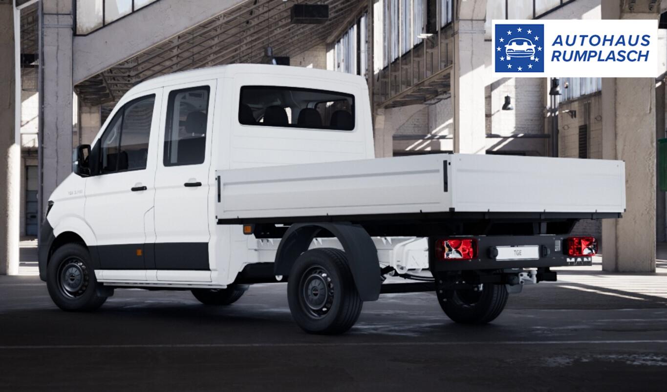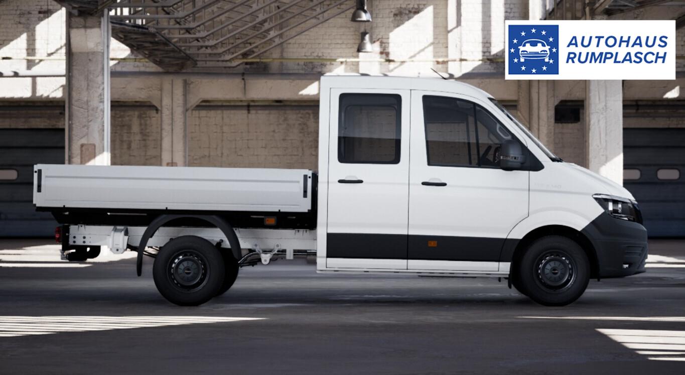 Klimaanlage Climatic (Fahrerhaus), Sitze im Fahrerhaus: Beifahrerdoppelsitz mit Stau-/Ablagefach und Rückenlehne zum Ablagetisch klappbar, Geschwindigkeits-Regelanlage (Tempomat) inkl. Geschwindigkeits-Begrenzeranlage, Fahrassistenz-System: Verkehrszeichenerkennung, Außenspiegel elektr. verstell- und heizbar, 4 Lautsprecher, Einparkhilfe vorn und hinten, Feststellbremse elektrisch, Infotainmentsystem inkl. 10,4-Zoll-Touchscreen, Kombiinstrument digital, Navigation in Verbindung mit dem Smartphone (über Apple Carplay / Android Auto /...), Reifen 205/75 R16, Rückfahrkamera, Schadstoffarm nach Abgasnorm Euro 6e (EU6 EC), SmartLink (Apple CarPlay / Android Auto), Sonnenblenden, klapp- und seitlich schwenkbar, Stahlfelgen 6,5x16, Startanlage Keyless Go, Steckdosen (12V-Anschluß) im Fahrerhaus, Vorbereitung Anhängerkupplung (Anhängebock und Steckdose), Ablage-Paket 2 (Ablagen: 2 DIN-Schacht vorn unter Dachhimmel / Innenleuchten im Fahrerhaus: Leseleuchte vorn), Fahrassistenz-System: Umfeldbeobachtungssystem (Front Assist) mit City-Notbremsfunktion (Fahrassistenz-System: City-Notbremsfunktion), Blinkleuchten LED in Außenspiegel integriert, Frontscheibe Verbundglas, Funkschlüssel (2) klappbar, Karosserie/Aufbau: Pritsche, Markierungsleuchten seitlich, Motor 2,0 Ltr. - 130 kW TDI, Radioempfang digital (DAB+), Radstand 3640 mm, Sitzbezug / Polsterung: Stoff, Stoßfänger vorn in Grau, Warnanlage für Sicherheitsgurt (Fahrerseite), Zul. Gesamtgewicht 3,50 t, Multimedia-Schnittstelle 2 x USB (Typ C) vorn, Anti-Blockier-System (ABS), Antriebsart: Frontantrieb, Elektron. Stabilitäts-Programm (ESP), Wegfahrsperre (elektronisch), Getriebe Automatik - (8-Stufen), Airbag Fahrer-/Beifahrerseite, Beifahrerairbag abschaltbar, Wärmeschutzverglasung, Fahrassistenz-System: Berganfahr-Assistent, Lenkrad mit Multifunktion, Automatische Fahrlichtschaltung, Regensensor, Tagfahrlicht, Fahrassistenz-System: Müdigkeitserkennungs-Sensor, Fahrassistenz-System: Spurhalteassistent (Lane Assist), Reifendruck-Kontrollsystem, Rußpartikelfilter, Start/Stop-Anlage Motor