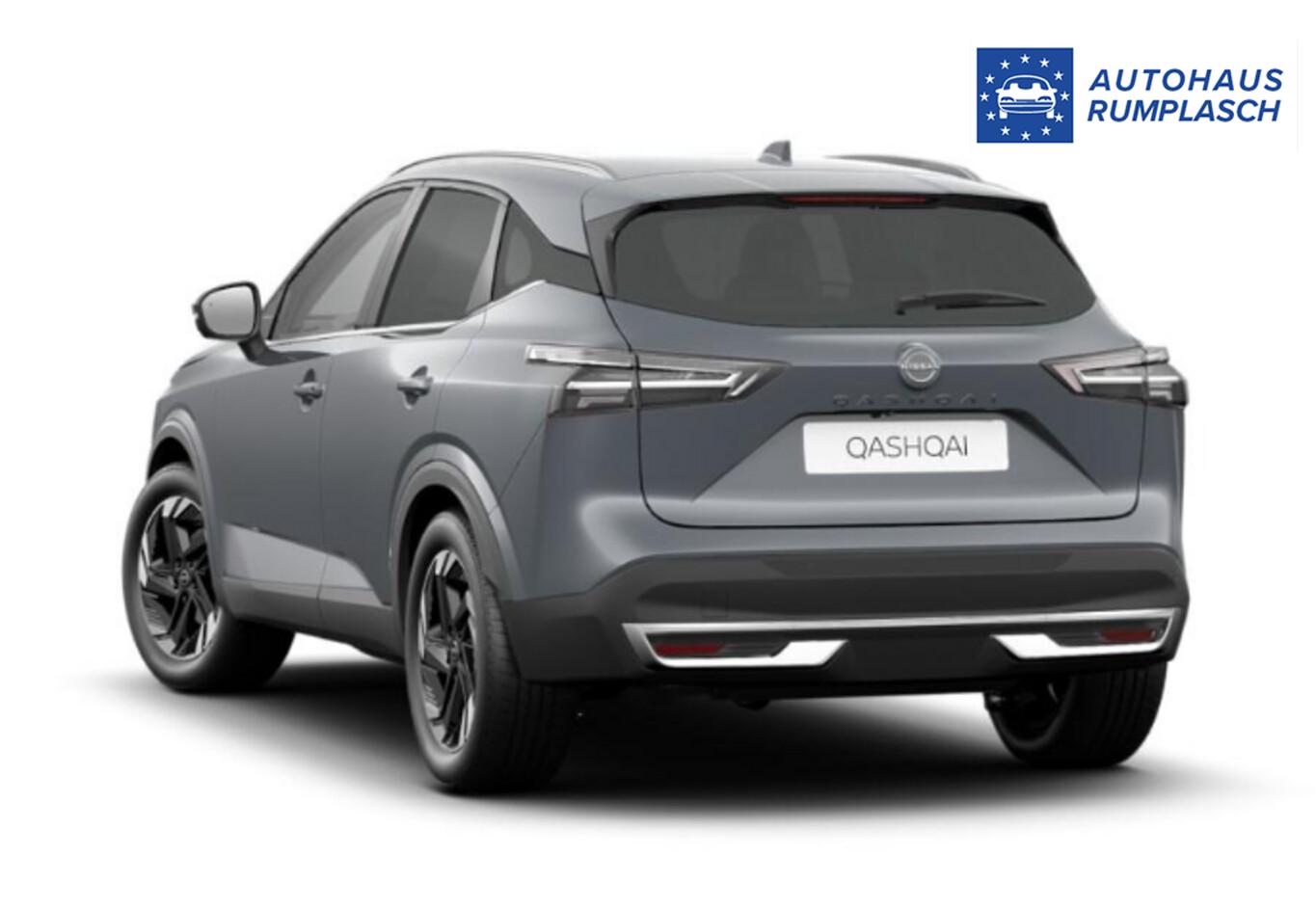 Winter-Paket (Lenkrad heizbar / Sitzheizung vorn / Frontscheibe heizbar), Dachreling silber, Brillenhalter, Einparkhilfe vorn und hinten, Fahrassistenz-System: ProPilot mit Navi-Link, Gurtwarnanlage, Induktionsladeschale für Smartphone, Innenspiegel rahmenlos mit Abblendautomatik, Kopf-Airbag vorn, LM-Felgen 18 Zoll, Navigation in Verbindung mit dem Smartphone (über Apple Carplay / Android Auto /...), Reifen 235/55 R18, Schadstoffarm nach Abgasnorm Euro 6e (EU6 EA), Sitze vorn manuell verstellbar, Multimedia-System Nissan Connect (6 Lautsprecher / Audiosystem / Smartphone kabellose Schnittstelle (Apple CarPlay & Android Auto) / Service-System: Google Services / Service-System: Nissan Connect Services), Schließ-/Startsystem intelligent key (Keyless-Entry / Start-Stop-Knopf), Lenkrad (Leder) mit Multifunktion (Audiobedienung am Lenkrad), Ambiente-Beleuchtung, Dachantenne im Haifischflossen-Design, Dachhimmel hellgrau, Elektr. Bremskraftverteilung (EBD), Gepäck-/Laderaum-Unterteilung (Flexi-Board), Geschwindigkeits-Begrenzeranlage, Instrumentenanzeige TFT-Farbdisplay (12,3 Zoll), Karosserie: 5-türig, Lendenwirbelstütze Sitz vorn links, elektr. verstellbar, Mild-Hybrid 116 kW (Motor 1,3 Ltr. - 116 kW DIG-T MHEV), Mittelarmlehne hinten mit Getränkehalter, Otto-Partikelfilter (OPF), Parkbremse elektrisch, Schalt-/Wählhebelgriff Leder, Sitz vorn links höhenverstellbar, Sitz vorn rechts höhenverstellbar, Sonnenblenden mit Spiegel (beleuchtet), Touchscreen-Farbdisplay (12,3 Zoll), USB-Anschluss im Fond, Anti-Blockier-System (ABS), Fahrassistenz-System: Moving Object Detection (MOD, Fußgängererkennung und bewegliche Objekterkennung), Antriebsart: Frontantrieb, Elektron. Stabilitäts-Programm (ESP), Getriebe Automatik stufenlos - X-Tronic-CVT, Klimaautomatik 2-Zonen, Airbag Fahrer-/Beifahrerseite, Fensterheber elektrisch vorn + hinten, Rücksitz geteilt/klappbar, Seitenairbag, Sitzbezug / Polsterung: Stoff/Kunstleder, Verglasung hinten abgedunkelt, Fahrmodusschalter, Around View Monitor (360° Umgebungsansicht), Auto-Hold-Funktion, Fahrassistenz-System: Auffahrwarnsystem (Forward Collision Warning, FCW), Fahrassistenz-System: Berganfahr-Assistent, Fahrassistenz-System: Verkehrszeichenerkennung, Geschwindigkeits-Regelanlage (Tempomat) mit Abstandsregelung, Fahrassistenz-System: Sicherheitssystem ERA GLONASS mit automatischem Notruf, Außenspiegel elektr. anklappbar, Außenspiegel elektr. verstell- und heizbar, Automatische Fahrlichtschaltung, Fahrassistenz-System: Fernlichtassistent, Fahrassistenz-System: Totwinkel-Assistent, Heckleuchten LED, Scheibenwischer mit Regensensor, Scheinwerfer LED, Tagfahrlicht LED, Fahrassistenz-System: aktiver Spurhalteassistent, mit korrigierendem Bremseingriff, Fahrassistenz-System: Autonomer Notbrems-Assistent, Fahrassistenz-System: Müdigkeitserkennungs-Sensor, Fahrassistenz-System: Querverkehrs-Assistent Heck (Rear Cross Traffic Alert, RCTA), Diebstahl-Warnanlage