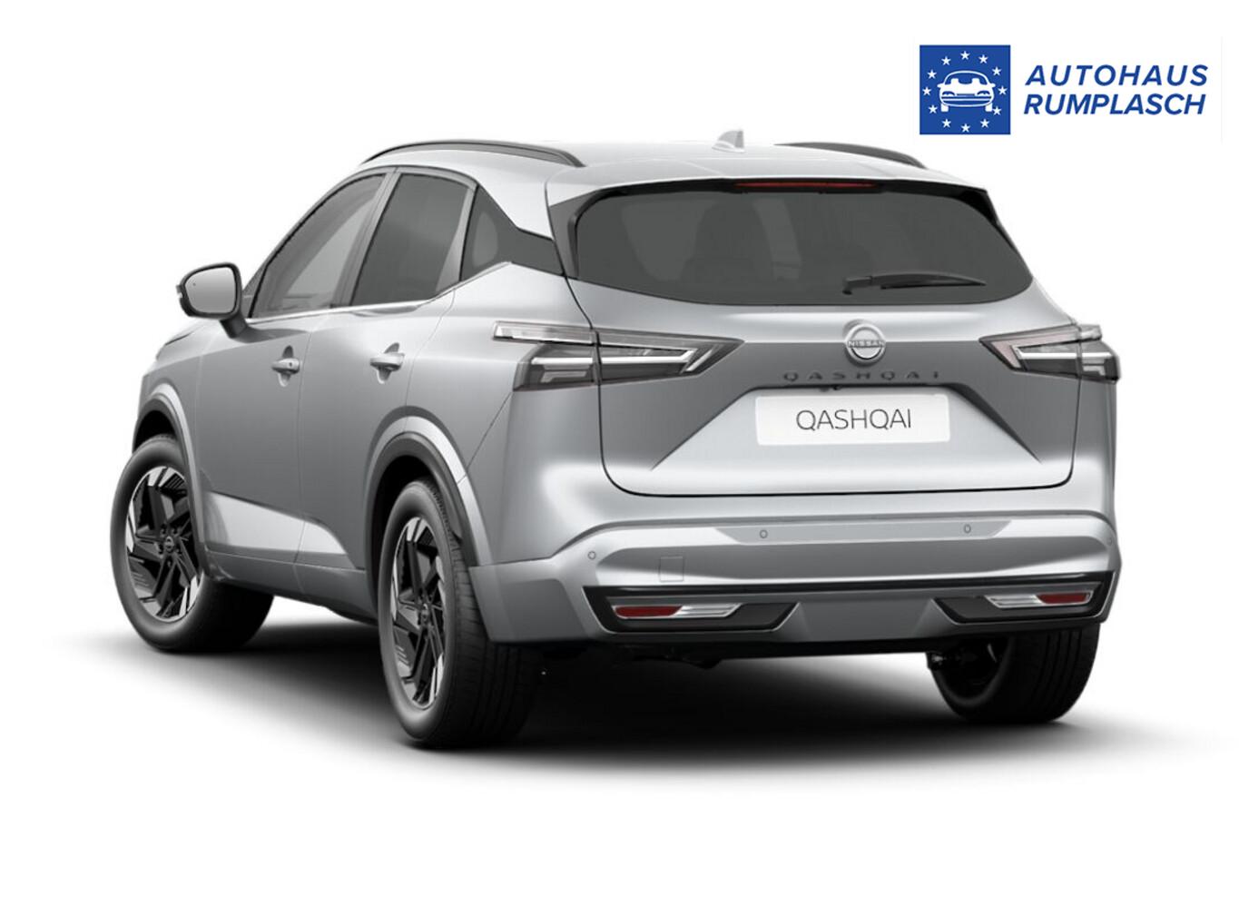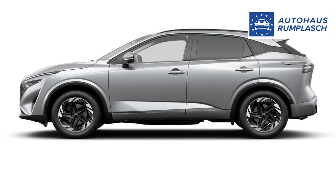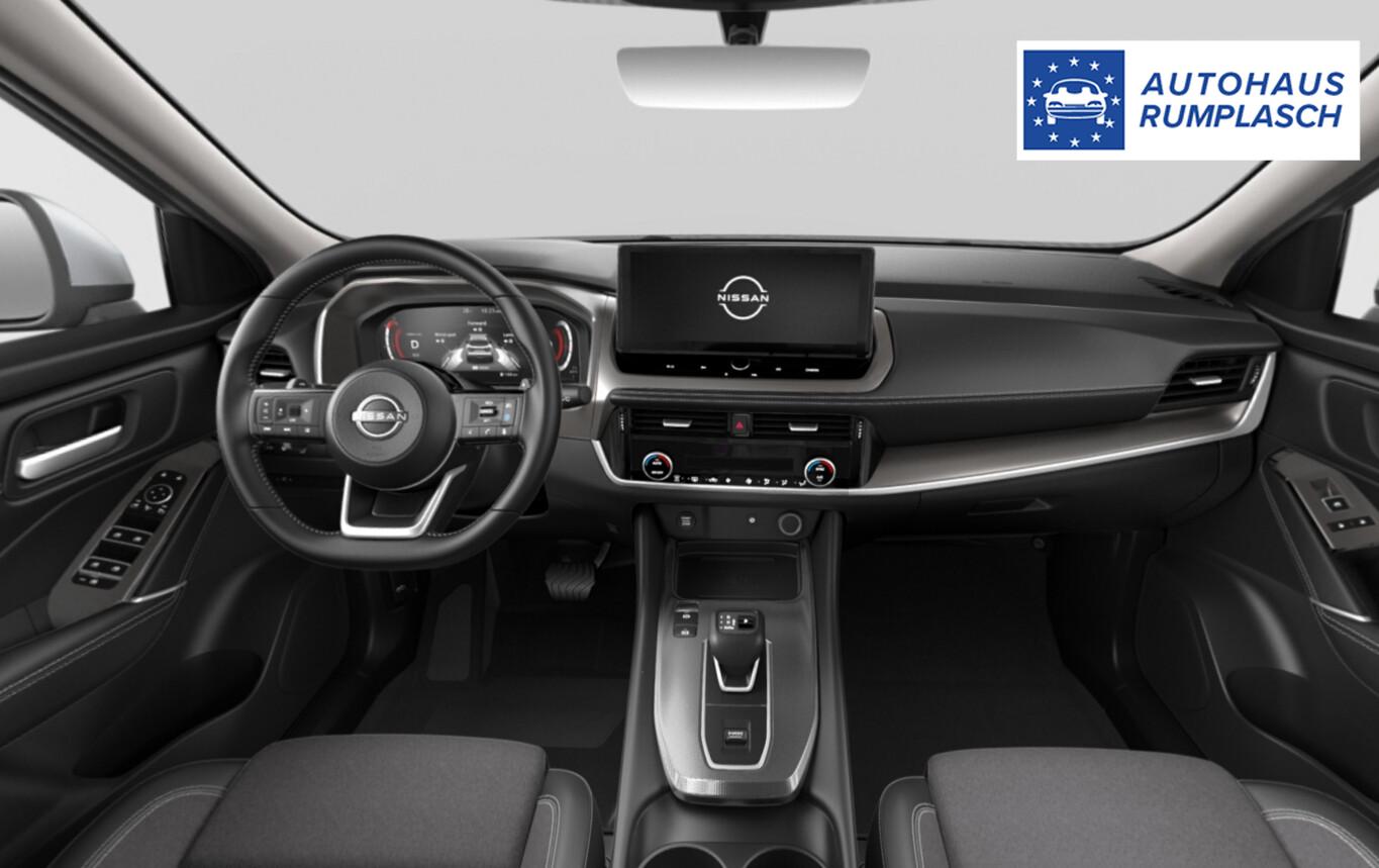 Winter-Paket (Lenkrad heizbar / Sitzheizung vorn / Frontscheibe heizbar), Bluetooth-Schnittstelle, Dachreling, Einparkhilfe vorn und hinten, Fahrassistenz-System: Stauwarnsystem, Gurtwarnanlage, Induktionsladeschale für Smartphone, LM-Felgen 18 Zoll, Notruf und Pannenanruf (eCall), Radioempfang digital (DAB), Reifen 235/55 R18, Schadstoffarm nach Abgasnorm Euro 6e (EU6 EA), Scheinwerfer mit Follow-me-home-Funktion, Servolenkung elektrisch, Wegfahrsperre, Multimedia-System Nissan Connect (6 Lautsprecher / Audiosystem / Smartphone kabellose Schnittstelle (Apple CarPlay & Android Auto) / Service-System: Google Services / Service-System: Nissan Connect Services), Schließ-/Startsystem intelligent key (Keyless-Entry / Start-Stop-Knopf), Lenkrad (Leder) mit Multifunktion (Audiobedienung am Lenkrad), Dachantenne im Haifischflossen-Design, Elektr. Bremskraftverteilung (EBD), Geschwindigkeits-Begrenzeranlage, Innenspiegel mit Abblendautomatik, Instrumentenanzeige TFT-Farbdisplay (12,3 Zoll), Karosserie: 5-türig, Kofferraumbeleuchtung, Lendenwirbelstütze Sitz vorn links, elektr. verstellbar, Lenksäule (Lenkrad) höhen-/längsverstellbar, Leseleuchten vorn und hinten, Mild-Hybrid 116 kW (Motor 1,3 Ltr. - 116 kW DIG-T MHEV), Mittelarmlehne hinten mit Getränkehalter, Otto-Partikelfilter (OPF), Parkbremse elektrisch, Schalt-/Wählhebelgriff Leder, Sitz vorn links höhenverstellbar, Sitz vorn rechts höhenverstellbar, Sonnenblenden mit Spiegel (beleuchtet), Steckdose (12V-Anschluß) im Koffer-/Laderaum, Steckdose (12V-Anschluß) in Mittelkonsole, Touchscreen-Farbdisplay (12,3 Zoll), Navigationssystem, USB-Anschluss im Fond, USB-Schnittstelle, Anti-Blockier-System (ABS), Fahrassistenz-System: Moving Object Detection (MOD, Fußgängererkennung und bewegliche Objekterkennung), Antriebsart: Frontantrieb, Elektron. Stabilitäts-Programm (ESP), Getriebe Automatik stufenlos - X-Tronic-CVT, Klimaautomatik 2-Zonen, Airbag Fahrer-/Beifahrerseite, Fensterheber elektrisch vorn + hinten, Isofix-Aufnahmen für Kindersitz, Rücksitz geteilt/klappbar, Seitenairbag, Sitzbezug / Polsterung: Stoff/Kunstleder, Verglasung hinten abgedunkelt, Fahrmodusschalter, Auto-Hold-Funktion, Fahrassistenz-System: Auffahrwarnsystem (Forward Collision Warning, FCW), Fahrassistenz-System: Berganfahr-Assistent, Fahrassistenz-System: Verkehrszeichenerkennung, Geschwindigkeits-Regelanlage (Tempomat) mit Abstandsregelung, Rückfahrkamera, Außenspiegel elektr. anklappbar, Außenspiegel elektr. verstell- und heizbar, Automatische Fahrlichtschaltung, Fahrassistenz-System: Fernlichtassistent, Fahrassistenz-System: Totwinkel-Assistent, Heckleuchten LED, Scheibenwischer mit Regensensor, Scheinwerfer LED, Tagfahrlicht LED, Fahrassistenz-System: aktiver Spurhalteassistent, mit korrigierendem Bremseingriff, Fahrassistenz-System: Autonomer Notbrems-Assistent, Fahrassistenz-System: Müdigkeitserkennungs-Sensor, Fahrassistenz-System: Querverkehrs-Assistent Heck (Rear Cross Traffic Alert, RCTA), Reifendruck-Kontrollsystem, Diebstahl-Warnanlage, Start/Stop-Anlage