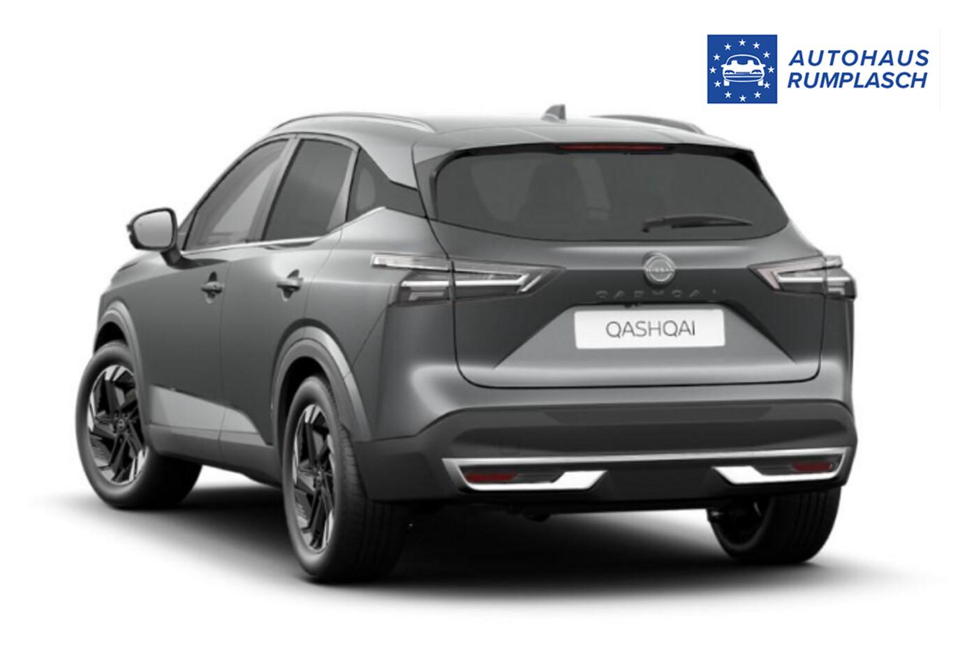 Winter-Paket (Lenkrad heizbar / Sitzheizung vorn / Frontscheibe heizbar), Dachreling silber, Brillenhalter, Einparkhilfe vorn und hinten, Fahrassistenz-System: ProPilot mit Navi-Link, Gurtwarnanlage, Induktionsladeschale für Smartphone, Innenspiegel rahmenlos mit Abblendautomatik, Kopf-Airbag vorn, LM-Felgen 18 Zoll, Navigation in Verbindung mit dem Smartphone (über Apple Carplay / Android Auto /...), Reifen 235/55 R18, Schadstoffarm nach Abgasnorm Euro 6e (EU6 EA), Sitze vorn manuell verstellbar, Multimedia-System Nissan Connect (6 Lautsprecher / Audiosystem / Smartphone kabellose Schnittstelle (Apple CarPlay & Android Auto) / Service-System: Google Services / Service-System: Nissan Connect Services), Schließ-/Startsystem intelligent key (Keyless-Entry / Start-Stop-Knopf), Lenkrad (Leder) mit Multifunktion (Audiobedienung am Lenkrad), Ambiente-Beleuchtung, Dachantenne im Haifischflossen-Design, Dachhimmel hellgrau, Elektr. Bremskraftverteilung (EBD), Gepäck-/Laderaum-Unterteilung (Flexi-Board), Geschwindigkeits-Begrenzeranlage, Instrumentenanzeige TFT-Farbdisplay (12,3 Zoll), Karosserie: 5-türig, Lendenwirbelstütze Sitz vorn links, elektr. verstellbar, Mild-Hybrid 116 kW (Motor 1,3 Ltr. - 116 kW DIG-T MHEV), Mittelarmlehne hinten mit Getränkehalter, Otto-Partikelfilter (OPF), Parkbremse elektrisch, Schalt-/Wählhebelgriff Leder, Sitz vorn links höhenverstellbar, Sitz vorn rechts höhenverstellbar, Sonnenblenden mit Spiegel (beleuchtet), Touchscreen-Farbdisplay (12,3 Zoll), USB-Anschluss im Fond, Anti-Blockier-System (ABS), Fahrassistenz-System: Moving Object Detection (MOD, Fußgängererkennung und bewegliche Objekterkennung), Antriebsart: Frontantrieb, Elektron. Stabilitäts-Programm (ESP), Getriebe Automatik stufenlos - X-Tronic-CVT, Klimaautomatik 2-Zonen, Airbag Fahrer-/Beifahrerseite, Fensterheber elektrisch vorn + hinten, Rücksitz geteilt/klappbar, Seitenairbag, Sitzbezug / Polsterung: Stoff/Kunstleder, Verglasung hinten abgedunkelt, Fahrmodusschalter, Around View Monitor (360° Umgebungsansicht), Auto-Hold-Funktion, Fahrassistenz-System: Auffahrwarnsystem (Forward Collision Warning, FCW), Fahrassistenz-System: Berganfahr-Assistent, Fahrassistenz-System: Verkehrszeichenerkennung, Geschwindigkeits-Regelanlage (Tempomat) mit Abstandsregelung, Fahrassistenz-System: Sicherheitssystem ERA GLONASS mit automatischem Notruf, Außenspiegel elektr. anklappbar, Außenspiegel elektr. verstell- und heizbar, Automatische Fahrlichtschaltung, Fahrassistenz-System: Fernlichtassistent, Fahrassistenz-System: Totwinkel-Assistent, Heckleuchten LED, Scheibenwischer mit Regensensor, Scheinwerfer LED, Tagfahrlicht LED, Fahrassistenz-System: aktiver Spurhalteassistent, mit korrigierendem Bremseingriff, Fahrassistenz-System: Autonomer Notbrems-Assistent, Fahrassistenz-System: Müdigkeitserkennungs-Sensor, Fahrassistenz-System: Querverkehrs-Assistent Heck (Rear Cross Traffic Alert, RCTA), Diebstahl-Warnanlage