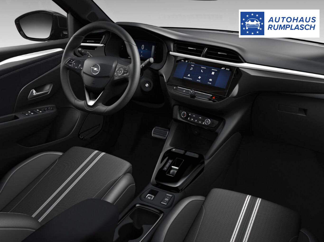 Rückfahrkamera mit 180° Umgebungsansicht (Parkpilotsystem hinten), Außenspiegel schwarz lackiert, Beifahrerairbag deaktivierbar, Bluetooth-Schnittstelle, Fahrassistenz-System: Autonomer Notbrems-Assistent, Kombiinstrument digital (7 Zoll), Kopf-Airbag-System vorn, LM-Felgen 16 Zoll, Navigation in Verbindung mit dem Smartphone (über Apple Carplay / Android Auto /...), Reifen 195/55 R16, Reifendruckkontrollsystem, Schadstoffarm nach Abgasnorm Euro 6e (EU6 EA), Scheinwerfer LED, Sitz vorn links 6-fach verstellbar, Sitz vorn rechts 4-fach verstellbar, Smartphone-Schnittstelle (Apple CarPlay / Android Auto), USB-Schnittstelle, Audiosystem Multimedia (DAB-Tuner (Radioempfang digital) / Touchscreen-Farbdisplay (10")), Sicht-Paket (Innenspiegel mit Abblendautomatik / Einschaltautomatik für Fahrlicht / Scheibenwischer mit Regensensor), Geschwindigkeits-Regelanlage (Tempomat) inkl. Geschwindigkeits-Begrenzeranlage (Geschwindigkeits-Regelanlage (Tempomat)), Außenspiegel elektr. verstell- und heizbar, elektr. anklappbar (Außenspiegel elektr. verstell- und heizbar), Parkpilotsystem vorn und hinten (Parkpilotsystem hinten), 6 Lautsprecher, Karosserie: 5-türig, Nebelschlussleuchte, Opel Connect, Otto-Partikelfilter (OPF), Reifen-Reparaturkit, Sitzbezug / Polsterung: Stoff, Türgriffe außen Wagenfarbe, Warnanlage für Sicherheitsgurt, Beifahrerseite, Warnanlage für Sicherheitsgurt, Fahrerseite, Warnanlage für Sicherheitsgurte hinten, Anti-Blockier-System (ABS), Elektron. Stabilitäts-Programm Plus (ESP), Getriebe Automatik - mit Start-/Stop (8-Stufen), Klimaanlage, Airbag Fahrer-/Beifahrerseite, Fensterheber elektrisch vorn + hinten, Isofix-Aufnahmen für Kindersitz an Rücksitz, Mittelarmlehne vorn mit Ablagefach, Rücksitzbank geteilt/klappbar (60:40), Seitenairbag vorn, Fahrassistenz-System: Berganfahr-Assistent (HSA, Hill Start Assist), Fahrassistenz-System: Verkehrszeichenerkennung, Lenkrad (Leder, vegan) mit Multifunktion, Fahrassistenz-System: Totwinkel-Assistent, Fahrassistenz-System: Müdigkeitserkennungs-Sensor, Fahrassistenz-System: Spurhalteassistent