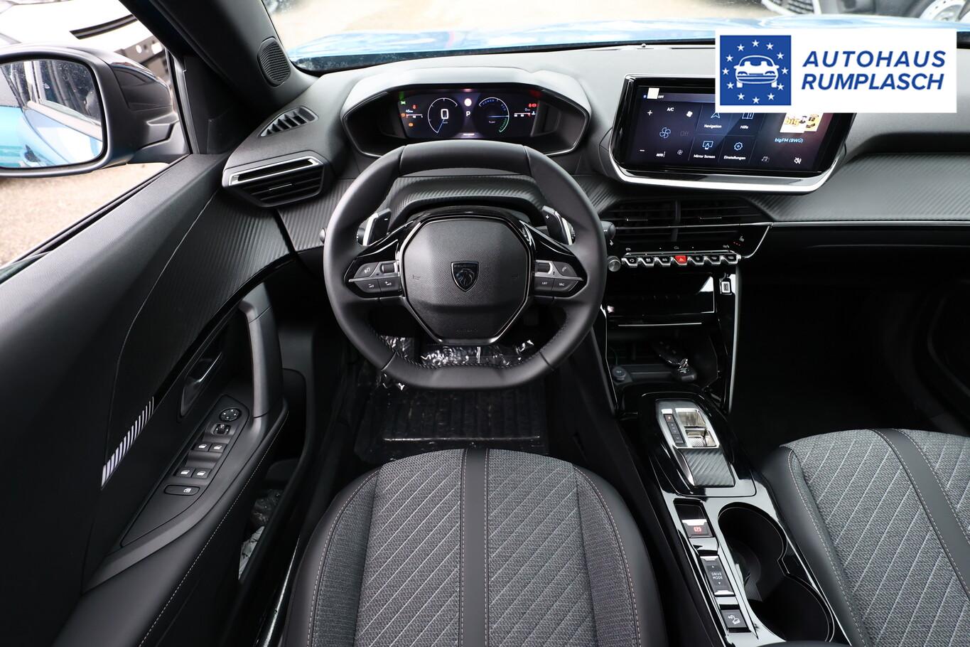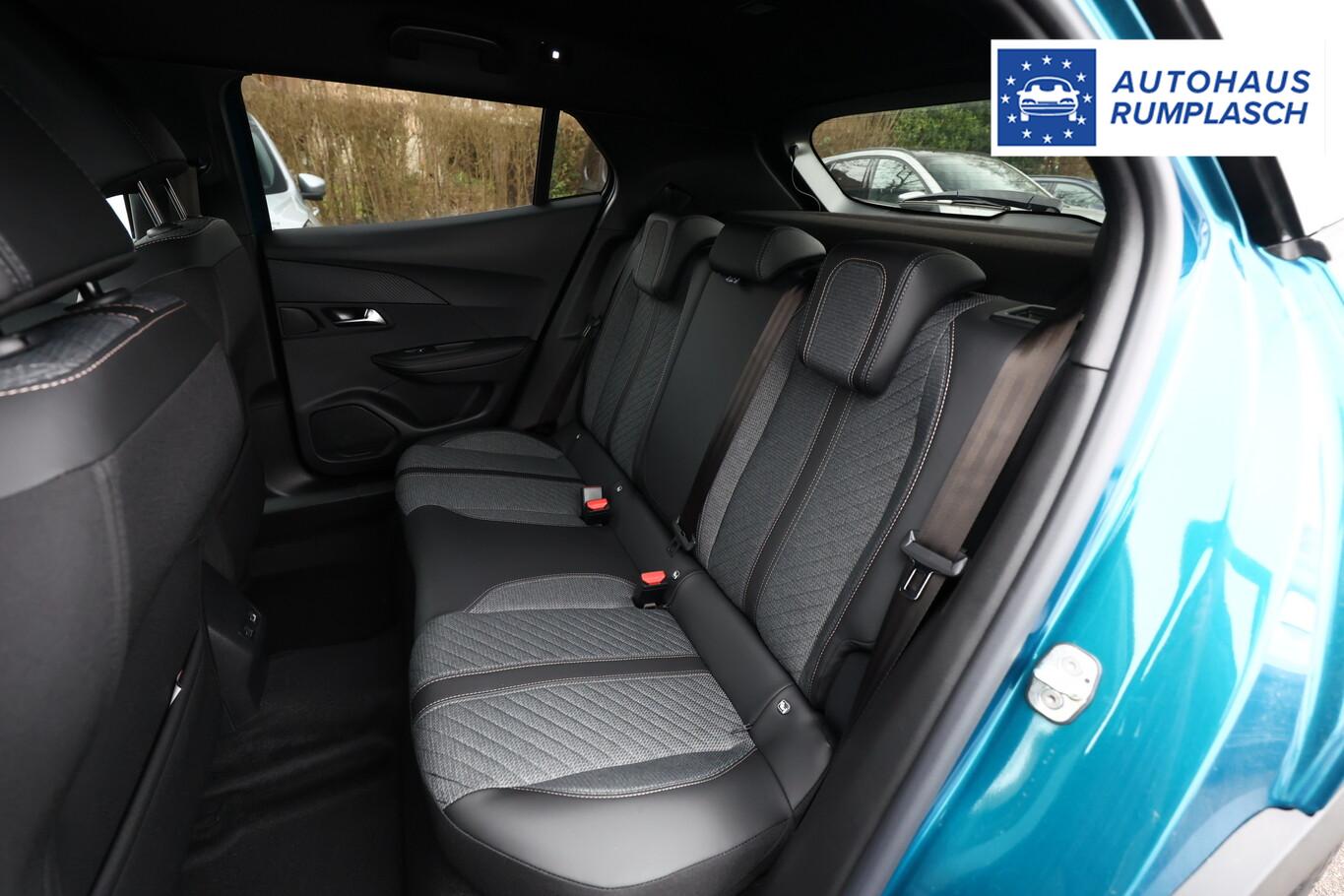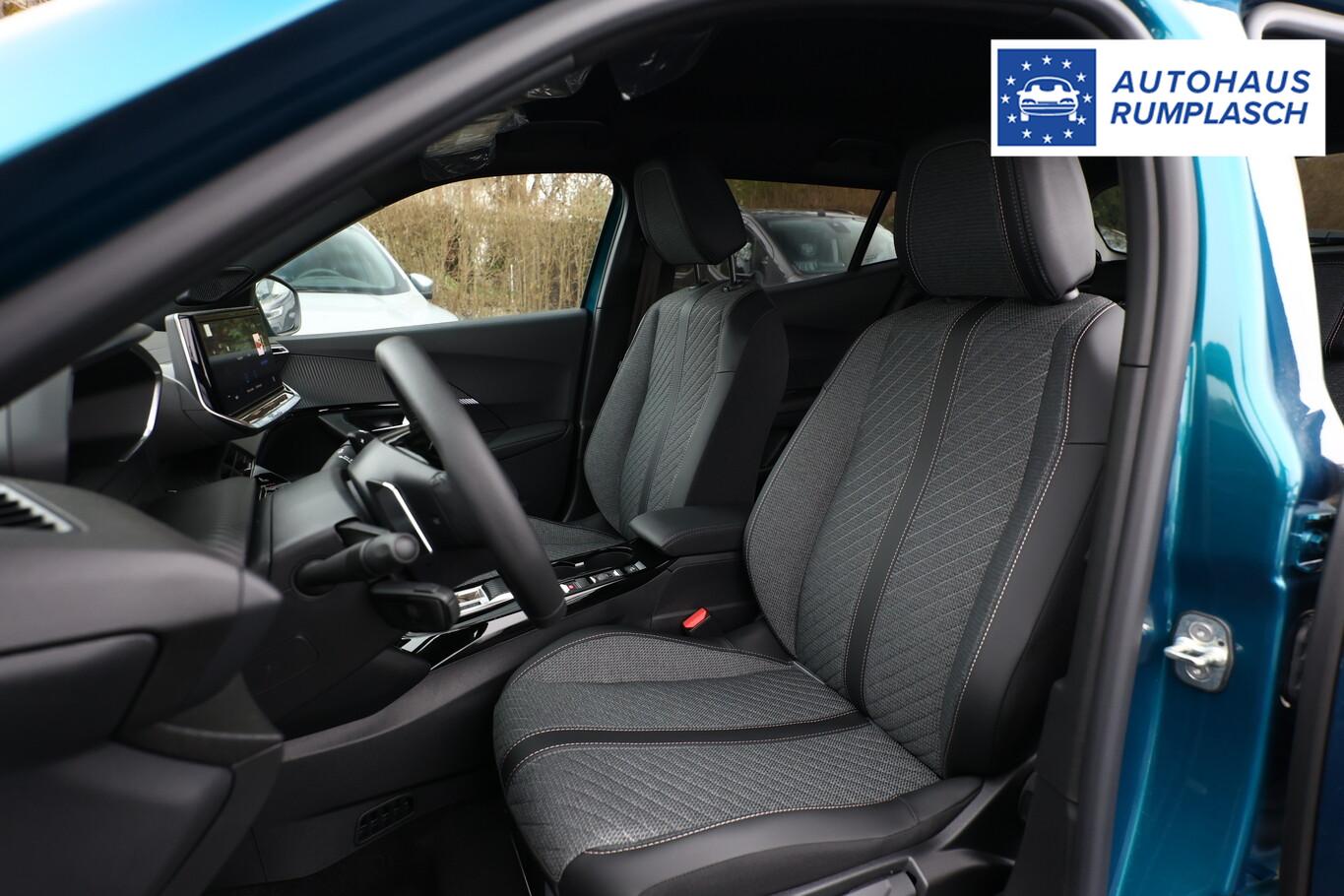 Navigations- und Zugangs-Paket (Gepäckraumboden verschiebbar, variabel / Induktionsladeschale für Smartphone / Multifunktionsanzeige mit Farbdisplay (DGT10CHD) / Navigationssystem i-Connect Advanced / Startanlage Keyless System / Zentralverriegelung / Startanlage Keyless System / Peugeot Connect-Box / SOS-Taste (Notruf für Lokalisierung Fahrzeug)), Ausstattungs-Paket: Vision & Drive Assist (Fahrassistenz-System: Aktiver Notbrems-Assistent (Active Safety Brake Plus) / Adaptive Geschwindigkeitsregelanlage (ACC) / Rückfahrkamera mit 360° Umgebungsansicht / Außenspiegel mit Umfeldleuchte / Fahrassistenz-System: Totwinkel-Assistent (SAM)), 6 Lautsprecher, Fahrmodusschalter, Fensterheber elektrisch vorn + hinten, Gepäckraumbeleuchtung, Kombiinstrument digital (10"), Lenkrad (Leder), Leseleuchten vorn und hinten, LM-Felgen 17", Radioempfang digital (DAB), Reifen 215/60 R17, Schadstoffarm nach Abgasnorm Euro 6e (EU6 EA), Smartphone-Schnittstelle (Apple CarPlay & Android Auto), USB-Schnittstelle, Rücksitzlehne geteilt/klappbar (Rücksitzbank klappbar 1/3-2/3), Außenspiegel elektr. anklappbar (Außenspiegel anklappbar), Dachhimmel schwarz, Elektr. Bremskraftverteilung, Heckscheibe heizbar, Innenspiegel mit Abblendautomatik, Karosserie: 5-türig, Kindersicherung, manuell, Kopfstützen hinten (3-fach), Mild-Hybrid 107 kW (Motor 1,2 Ltr. - 100 kW), Otto-Partikelfilter (GPF), Parkbremse elektrisch, Pyrotechnischer Gurtstraffer, Radstand 2605 mm, Sitze vorn höhenverstellbar, Warnanlage für Sicherheitsgurte, Anti-Blockier-System (ABS), Antischlupfregelung (ASR), Antriebsart: Frontantrieb, Elektron. Stabilitäts-Programm (ESP, Bosch), Getriebe Automatik - Doppelkupplungsgetriebe (6-Stufen, Hybrid), Klimaautomatik, Airbag Beifahrerseite abschaltbar, Airbag Fahrer-/Beifahrerseite, Isofix-Aufnahmen für Kindersitz, Kopf-Airbag-System, Kopf-Airbag-System hinten, Mittelarmlehne vorn, Seitenairbag vorn, Seitenscheiben hinten und Heckscheibe dunkel getönt, Sitzbezug / Polsterung: Stoff/Kunstleder, Sitzheizung vorn, Zentralverriegelung mit Fernbedienung, Dachreling schwarz, Fahrassistenz-System: Berganfahrhilfe, Lenkrad mit Multifunktion, Servolenkung elektrisch, Außenspiegel elektr. verstell- und heizbar, beide, Autom. Begleitfunktion der Beleuchtung (Coming Home, Leaving Home), Einschaltautomatik für Fahrlicht, Scheibenwischer mit Regensensor, Scheinwerfer Eco-LED, Tagfahrlicht LED, Einparkhilfe vorn und hinten, Fahrassistenz-System: aktiver Spurassistent (Lenkunterstützung), Fahrassistenz-System: Müdigkeitserkennungs-Sensor, Reifendruck-Kontrollsystem