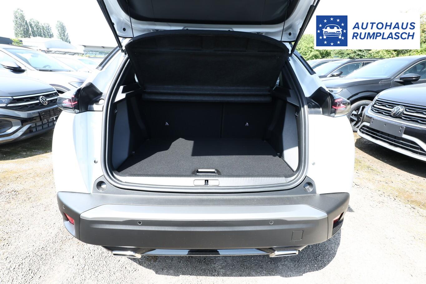 Ausstattungs-Paket: Vision, Navigation und Drive Assist (Induktionsladeschale für Smartphone / Multifunktionsanzeige mit Farbdisplay (DGT10CHD) / Navigationssystem i-Connect Advanced / Fahrassistenz-System: Aktiver Notbrems-Assistent (Active Safety Brake Plus) / Adaptive Geschwindigkeitsregelanlage (ACC) / Fahrassistenz-System: Autom. Distanzregelung (ACC inkl. Stop&Go-Funktion) / Rückfahrkamera mit 360° Umgebungsansicht / Peugeot Connect-Box / SOS-Taste (Notruf für Lokalisierung Fahrzeug) / Außenspiegel mit Umfeldleuchte / Fahrassistenz-System: Totwinkel-Assistent (SAM) / Fahrassistenz-System: aktiver Spurpositionierungsassistent), 4 Verzurrösen im Fond, 6 Lautsprecher, BT-Freisprechanlage, eCall Notrufsystem, Einschaltautomatik für Fahrlicht, Fahrassistenz: Spurhalteassistent, Fensterheber elektrisch hinten, LM-Felgen 17 Zoll, Reifen 215/60 R17, Schadstoffarm nach Abgasnorm Euro 6e (EU6 EA), Pedale Aluminium (Einstiegsleisten (Edelstahl - gebürstet)), Seitenscheiben hinten und Heckscheibe dunkel getönt (Heckscheibe getönt), Zentralverriegelung / Startanlage Keyless System (Startanlage Keyless System), Außenspiegel elektr. anklappbar (Außenspiegel anklappbar / Außenspiegel mit Umfeldleuchte), Scheinwerfer Full-LED (Leuchtweitenregelung elektrisch), Einparkhilfe vorn und hinten (Einparkhilfe hinten), Ambiente-Beleuchtung, Dachfarbe schwarz, Frontscheibe geräuschdämmend, Gepäckraumboden verschiebbar, variabel, Innenspiegel mit Abblendautomatik, Karosserie: 5-türig, Mild-Hybrid 100 kW (Motor 1,2 Ltr. - 100 kW), Mobile Online Dienste MirrorLink und AppinCar (Mirror Screen), Modellpflege, Parkbremse elektrisch, Radstand 2605 mm, Sitze vorn höhenverstellbar, Warnanlage für Sicherheitsgurte, Anti-Blockier-System (ABS), Fahrassistenz-System: Aktiver Notbrems-Assistent (Active Safety Brake), Antriebsart: Frontantrieb, Getriebe Automatik - Doppelkupplungsgetriebe (6-Stufen, Hybrid), Klimaautomatik, Airbag Fahrer-/Beifahrerseite, Fensterheber elektr. vorn, links mit Impulsgeber, Isofix-Aufnahmen für Kindersitz, Kopf-Airbag-System, Mittelarmlehne vorn, Seitenairbag vorn, Dachreling schwarz, Geschwindigkeits-Regelanlage (Tempomat) inkl. Geschwindigkeits-Begrenzeranlage, Rückfahrkamera mit 180° Umgebungsansicht, Lenkrad mit Multifunktion, Außenspiegel elektr. verstell- und heizbar, beide, Fahrassistenz-System: Fernlichtassistent, Scheibenwischer mit Regensensor, Tagfahrlicht LED