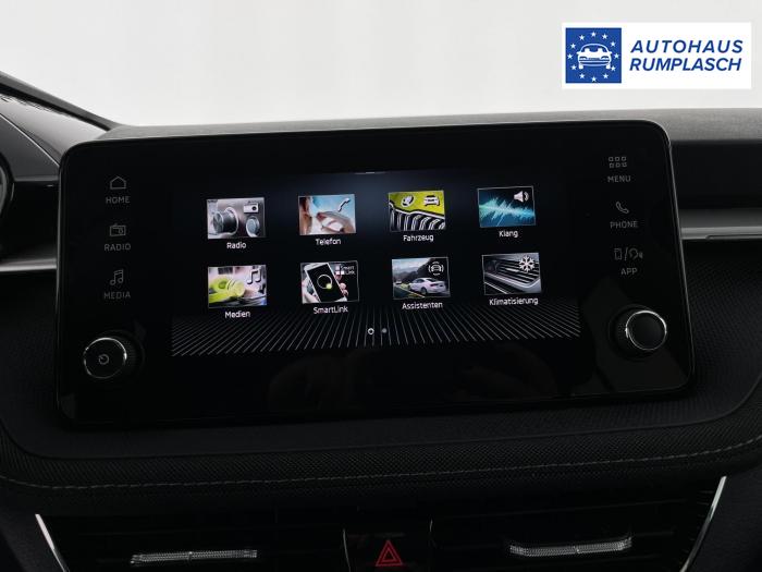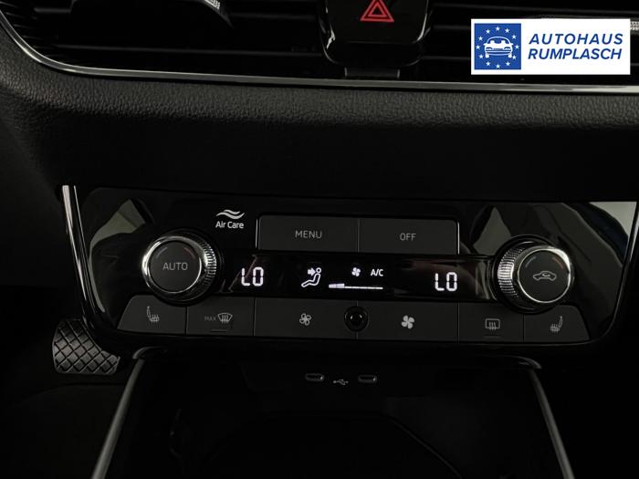 4 Lautsprecher vorn + 2 hinten inkl. Skoda Surround, Bluetooth-Freisprecheinrichtung, DAB - Digitaler Radioempfang, E-Call+, Extern, USB Typ-C Datenbuchse(n) und Ladebuchse(n) mit erhöhter Ladeleistung, Infotainment-System mit 8,2 Display, USB im Innenspiegel, Wireless SmartLink, LED-Hauptscheinwerfer mit variabler Lichtverteilung, abgedunkelt, LED-Heckleuchten, Leuchtweitenregulierung,autom.dynamisch, Licht- und Regensensor, Nebelscheinwerfer, Tagesfahrlicht mit Assistenzfahrlicht und manueller Coming-Leaving-Home Funktion, Elektrische Fensterheber vorn und hinten mit der Funktion auto up/down und Komfortbedienung, Heckscheiben-Wisch-Waschanlage mit Intervallschaltung, Sunset (Heckscheibe und hintere Seitenscheiben dunkel getönt), Brillenfach, Dekor-Einlagen, Gepäckraumabdeckung, Ledermultifunktionslenkrad, beheizbar mit Tiptronic, Lenkrad höhen- und tiefenverstellbar, Mittelarmlehne vorn, Nichtraucherausführung, Sicherheitsinnenspiegel automatisch abblendbar, Textilfußmatten, Klimaautomatik Climatronic, Chrom-Paket, 15 Leichtmetallfelgen ROTARE in silber, Stahlreserverad, Airbag FS und BFS, ohne Knieairbag, mit BFS-Deaktivierung, Diebstahlalarmanlage, Innenraumüber- wachung,Back-up-Horn und Abschleppschutz, Elektronisches Stabilisierungsprogramm (ESP), Fußgängerschutzmaßnahmen erweitert und vorausschauend, Kindersitzverankerung für Kindersitzsystem I-Size, 2 x top tether und Kindersitzverankerung vorn BF-Seite, Seitenairbag vorne mit Kopfairbags, Beheizbare Vordersitze, Fahrer- und Beifahrersitz höhenverstellbar, Komfortsitze vorn, Lendenwirbelstütze, manuell einstellbar in Vordersitzlehnen, Rücksitzlehne geteilt/klappbar (1/3-2/3), Mit Regenschirm, Ablenkungs- und Müdigkeitserkennung, Berganfahrassistent, Frontradarassistent inkl. City-Notbremsfunktion, Geschwindigkeitsregelanlage mit Geschwindigkeitsbegrenzer, Lane Assist, Parksensoren vorne+hinten, Reifendruckkontrolle, Rückfahrkamera, Verkehrszeichenerkennung, Virtual Cockpit, Zentralverriegelung Keyless-Entry, Start/Stopp-Anlage mit Rekuperation, Aussenspiegel elektrisch verstellbar, beheizbar und anklappbar, Außenspiegel und Türgriffe in Wagenfarbe, Stoßfänger in Wagenfarbe, EU-Fahrzeug mit Tageszulassung