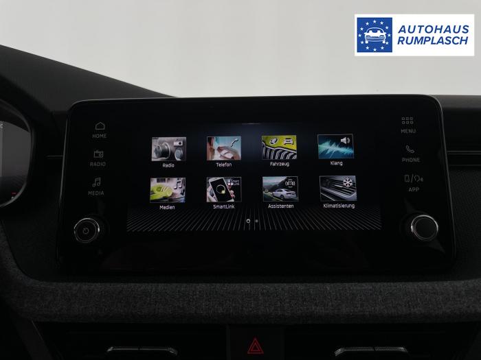 2 USB Anschlüsse (Typ-C), 2x USB-C-Anschluss hinten, 8 Lautsprecher, Bluetooth, Infotainmentsystem mit 8-Display, SmartLink, Easy Light Assist (Lichtsensor), LED-Rückleuchten, LED-Scheinwerfer, LED-Tagfahrlicht, Nebelscheinwerfer vorn, Elektrische Fensterheber vorne und hinten, Sunset (Heckscheibe und hintere Seitenscheiben dunkel getönt), Armlehne mit JumboBox, Doppelter Laderaumboden im Kofferraum, Ledermultifunktionslenkrad mit Tiptronic, Netz unter der Gepäckraumabdeckung, Climatronic 2-Zonen Klimaautomatik, City Plus Paket, Interieur-Paket, Technologie Paket, Winter Paket, 16 Leichtmetallfelgen Cortadero/Sargas silber, Stahlreservenotrad, Fahrer- und abschaltbarer Beifahrerairbag + Kopf- und Seitenairbags, vorne, Front Assist mit Warnung und automatisch Bremsen bei drohender Kollision mit Fahrzeugen, Personenerkennung, ISOFIX-Vorbereitung auf dem Beifahrersitz, Beheizte Vordersitze, Fahrersitz höhenverstellbar, Höheneinstellbare Vordersitze, Innenausstattung Loft, Stoff in Schwarz/Grau, Lendenwirbelstützen in den Rückenlehnen der Vordersitze, Garantieverlängerung auf 5 Jahre oder max. 100.000 km, Regenschirmablage inkl. Schirm in der Fahrertür, 12 Volt-Steckdose im Kofferraum, Digital Cockpit 8, Fahrmodusauswahl, KESSY - Schlüsselloses Zugangs- und Start-Stopp-System, Parksensoren hinten, Parksensoren vorn, Rückfahrkamera, Spurhalteassistent Lane Assist, Tempomat, Verkehrsschilderkennung, Zentralverriegelung mit Fernbedienung, Außenspiegel elektrisch einstellbar, Außenspiegel und Türgriffe in Wagenfarbe, Dachreling schwarz, Elektrisch einstell- und beheizbare Außenspiegel, Vorrüstung Anhängerkupplung, EU-Fahrzeug mit Tageszulassung