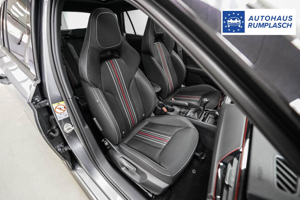 Beifahrersitz höhenverstellbar, Fahrersitz höhenverstellbar, Sport-Lederlenkrad, Lendenwirbelstütze, Mittelarmlehne vorne, Sitzbezug Stoff, Sportsitze, Gepäckraumabdeckung, geteilt umklappbare Rücksitzlehne, Lenkrad höhenverstellbar, Ambiente-Beleuchtung, Beheizbares Lenkrad, Multifunktionslenkrad, Isofix, Isofix Beifahrersitz, abgedunkelte Scheiben, Alufelgen 17 Zoll Kajam Schwarz, Dachreling Schwarz, Stoßfänger in Wagenfarbe, ABS, Alarmanlage, Außenspiegel elektrisch, Fensterheber elektrisch, Kopfairbags, Nebelscheinwerfer Corner Funktion, Seitenairbags, Servolenkung, Sitzheizung, ESP, Tempomat, Wegfahrsperre, Zentralverriegelung mit Funk, Außenspiegel beheizbar, Beifahrerairbag, Fahrerairbag, Parkpilot hinten, Parkpilot vorne, Reifendruckkontrolle, Regensensor, Digital Cockpit, Notbremsassistent, Spurhalteassistent, Verkehrszeichenerkennung, LED-Matrix-Scheinwerfer, Tagfahrlicht LED, Kurvenlicht, Pannenset, Rückfahrkamera, Panoramadach, Kessy, StartStopSystem, Innenspiegel automatisch abbl., Berganfahrassistent, Müdigkeitswarnsystem, Notrufsystem, Schaltwippen, Klimaautomatik 2-Zonen, Geschwindigkeitsbegrenzer, Android Auto, Apple Carplay, Freisprecheinrichtung, Induktionsladestation, Touchscreen, USB-C, Radio Infotainment Media, Radio DAB, Bluetooth, Bordcomputer, Fahrprofilauswahl, Wireless Smart Link, Dachhimmel in schwarz, Vorbereitung für Anhängekupplung, LED-Rückleuchten,