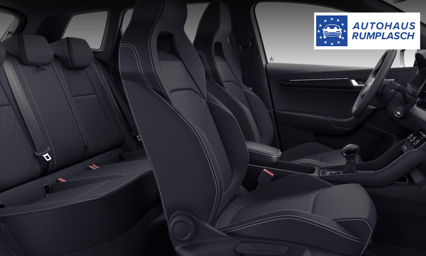 Ausstattungs-Paket: Parken Plus (Kamerasystem 360° / Rückfahrkamera / Einparkhilfe vorn und hinten / Fahrassistenz-System: Parklenkassistent), Sound-System Canton, Fahrassistenz-System: Autom. Distanzregelung (ACC) mit Frontradar-Assistent (bis 210 km/h), Fahrassistenz-System: Spurwechselassistent (Blind Spot Detection) (Fahrassistenz-System: Totwinkel-Assistent mit Auspark-Assistent), Kofferraum / Heckklappe elektrisch betätigt (öffnen + schliessen), Winter-Paket Plus (Scheibenwaschdüsen heizbar / Sitzheizung vorn + hinten / Frontscheibe heizbar / Scheinwerfer-Reinigungsanlage (SRA)), Reserverad als Notrad, Innenspiegel mit USB-Anschluss (Typ C), Fahrassistenz-System: Müdigkeitserkennung, Komfortöffnung für elektr. Heckklappe/-Deckel, Fahrassistenz-System: Spurhalteassistent (Lane Assist) (Frontkamera), Allwetterlicht, Abbiege- und Autobahnlicht, Anhängerkupplung klappbar, elektrisch entriegelbar, Audio-Navigationssystem Infotainment mit 8 Zoll Farb-Touchscreen, Brillenfach, Einstiegsleisten, Fahrassistenz-System: Fahrmoduswahl, Fußraumbeleuchtung vorn und hinten, Getränkehalter vorn und hinten, Heckspoiler, Induktionsladeschale für Smartphone, Kombiinstrument digital (virtual cockpit), LM-Felgen 18 Zoll (Procyon, Aero-Cover Schwarz matt), Pedale im Sport-Design, Reifen 225/50 R18, Schadstoffarm nach Abgasnorm Euro 6e (EU6EA), Sportline Exterieur, Sportsitze vorn, Sprachsteuerung für Infotainment-System, USB-C Schnittstelle, Wireless SmartLink, Komfort-Paket Plus (Lendenwirbelstützen vorn / Klimaanlage Climatronic 2-Zonen / Schließ-/Startsystem Kessy / Seitenscheiben hinten und Heckscheibe abgedunkelt (SunSet)), Licht- und Sicht-Paket (Ambiente-Beleuchtung LED / Matrix-LED-Scheinwerfer), Heckleuchten LED (Kristallglas-Optik) (Heckleuchten LED mit dynamischem Blinklicht), Außenspiegel schwarz lackiert, Innenraumfilter: Staub- und Pollenfilter, Karosserie: 5-türig, Mittelarmlehne hinten, Motor 2,0 Ltr. - 110 kW TDI, Radioempfang digital (DAB+), Radstand 2638 mm, Schalt-/Wählhebelgriff Leder, Sitz vorn links höhenverstellbar, Sitz vorn rechts höhenverstellbar, Sitzbezug / Polsterung: Stoff Sportline, Steckdose (12V-Anschluß) im Koffer-/Laderaum, Steckdose (12V-Anschluß) in Mittelkonsole vorn, Stoßfänger Wagenfarbe, Türgriffe außen Wagenfarbe, Anti-Blockier-System (ABS), Antriebsart: Frontantrieb, Elektron. Stabilitäts-Programm (ESP), Getriebe 7-Gang - Doppelkupplungsgetriebe DSG, Airbag Fahrer-/Beifahrerseite, Fensterheber elektrisch vorn + hinten, Isofix-Aufnahmen für Kindersitz an Rücksitz, Knieairbag Fahrerseite, Kopf-Airbag-System, Mittelarmlehne vorn, Seitenairbag vorn, Dachreling, Fahrassistenz-System: Berganfahr-Assistent (Hill-Holder), Fahrassistenz-System: Verkehrszeichenerkennung, Notrufsystem, Servolenkung elektronisch (Servotronic), Außenspiegel elektr. verstell-, heiz- und anklappbar, mit Abblendautomatik, Scheibenwischer mit Regensensor, Reifendruck-Kontrollsystem