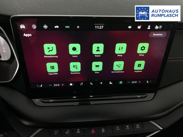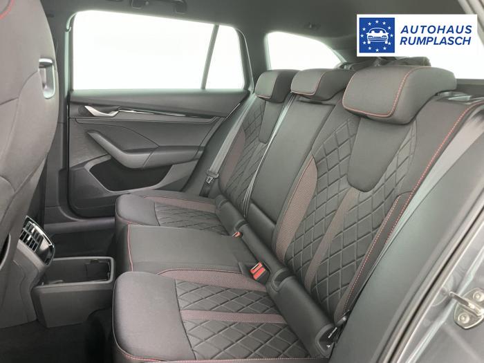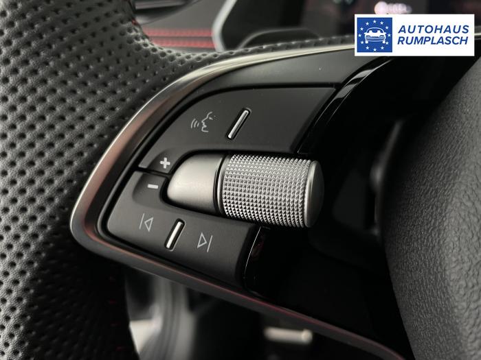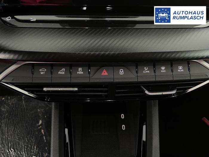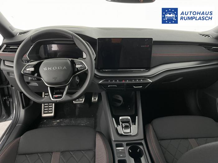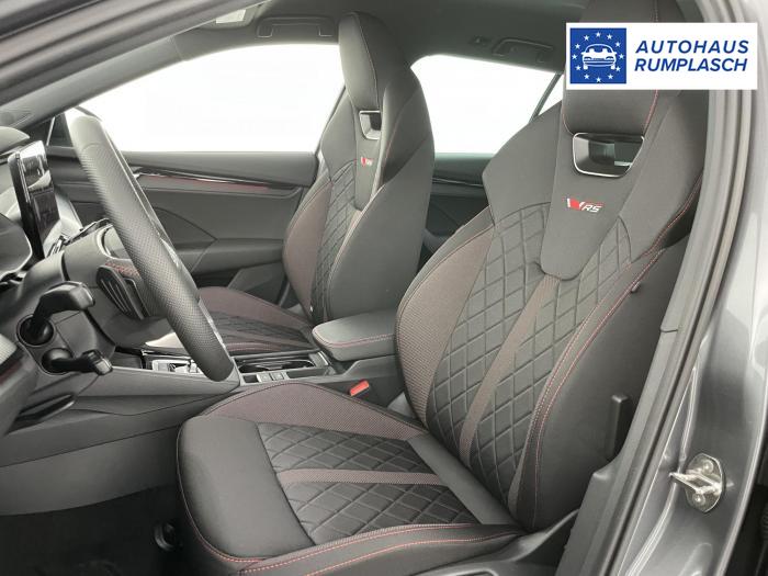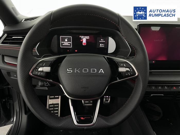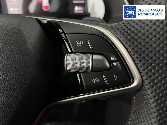 Infotainmentdisplay, Navigationssystem, SmartLink sowie Wireless Smart Link, Sprachsteuerung, LED Ambientebeleuchtung, LED Matrix Scheinwerfer, Lichtassistent, Akustikverglasung in den vorderen Seitenscheiben und Sunset, Ablagefach unter dem Beifahrersitz, Dachhimmelschwarz, Gepäcknetztrennwand, Supersport Lederlenkrad, var. Ladeboden im Gepäckraum inkl. Alu Querträger, 2-Zonen Climatronic, Infotainment Plus & Fahrassistenz Plus, 19'' Leichtmetallräder Elias anthrazit/schwarz, Bremssättel rot lackiert, Alarmanlage, Rücksitzlehnenmit Fernentriegelung, Sportsitze RS Stoff mit roten Ziernähten, beheizbare Vordersitze, Garantiezeit 5 Jahre max. 100.000 km Laufleistung, Digital Cockpit Plus, Fahrprofilauswahl, Head-Up Display, Intelligenter Geschwindigkeitsassistent (ISA), Intelligenter Parkassistent, Kessy, Parksensoren vorne und hinten, Rückfahrkamera, Speedlimiter, Stoßfänger RS, elektrische Heckklappenbedienung mit Komfortöffnung, Adaptives Fahrwerk DCC, Außenspeigel schwarz glänzend, Außenspiegel elektrisch anklappbar, Außenspiegel elektrisch beheizbar, Außenspiegel elektrisch einstellbar, Dachreling schwarz glänzend, Kühlergrillrahmen schwarz glänzend, Pedale im Alu Design, Sportauspuff Endrohr links/rechts, Vorbereitung Anhängerzugvorrichtung, EU-Fahrzeug mit Tageszulassung