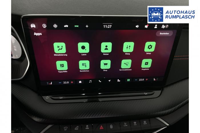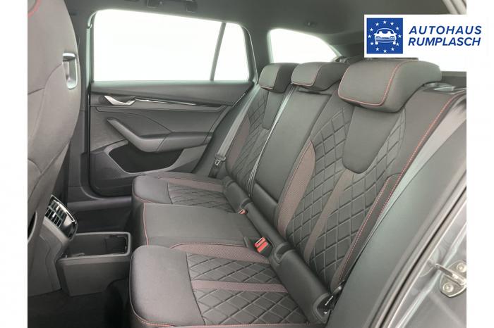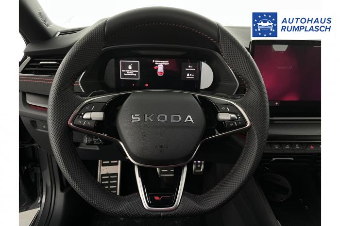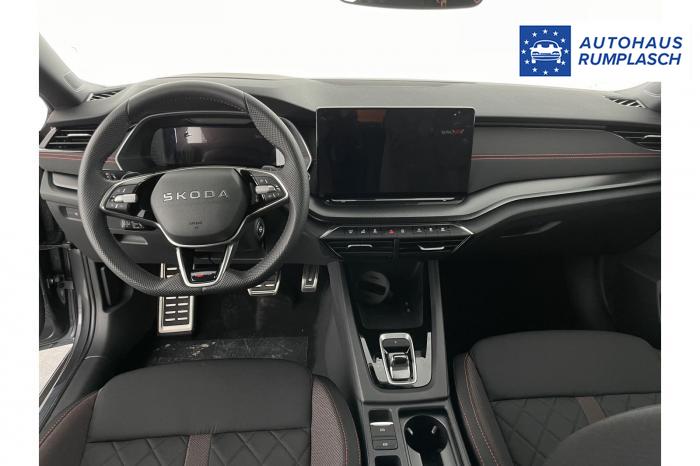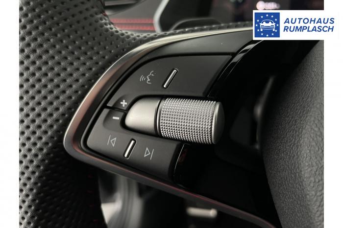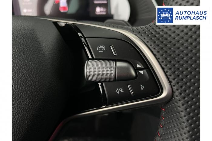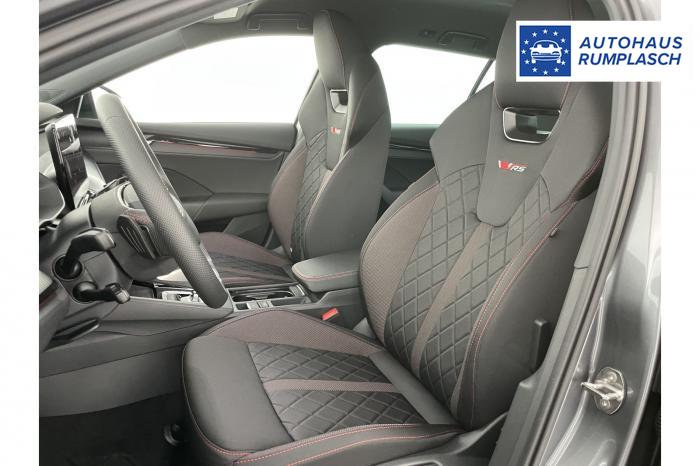 Infotainmentdisplay, Navigationssystem, SmartLink sowie Wireless Smart Link, Sprachsteuerung, LED Ambientebeleuchtung, LED Matrix Scheinwerfer, Lichtassistent, Akustikverglasung in den vorderen Seitenscheiben und Sunset, Ablagefach unter dem Beifahrersitz, Dachhimmelschwarz, Gepäcknetztrennwand, Supersport Lederlenkrad, var. Ladeboden im Gepäckraum inkl. Alu Querträger, 2-Zonen Climatronic, Infotainment Plus & Fahrassistenz Plus, 19'' Leichtmetallräder Elias anthrazit/schwarz, Bremssättel rot lackiert, Alarmanlage, Rücksitzlehnenmit Fernentriegelung, Sportsitze RS Stoff mit roten Ziernähten, beheizbare Vordersitze, Garantiezeit 5 Jahre max. 100.000 km Laufleistung, Digital Cockpit Plus, Fahrprofilauswahl, Head-Up Display, Intelligenter Geschwindigkeitsassistent (ISA), Intelligenter Parkassistent, Kessy, Parksensoren vorne und hinten, Rückfahrkamera, Speedlimiter, Stoßfänger RS, elektrische Heckklappenbedienung mit Komfortöffnung, Adaptives Fahrwerk DCC, Außenspeigel schwarz glänzend, Außenspiegel elektrisch anklappbar, Außenspiegel elektrisch beheizbar, Außenspiegel elektrisch einstellbar, Dachreling schwarz glänzend, Kühlergrillrahmen schwarz glänzend, Pedale im Alu Design, Sportauspuff Endrohr links/rechts, Vorbereitung Anhängerzugvorrichtung, EU-Fahrzeug mit Tageszulassung