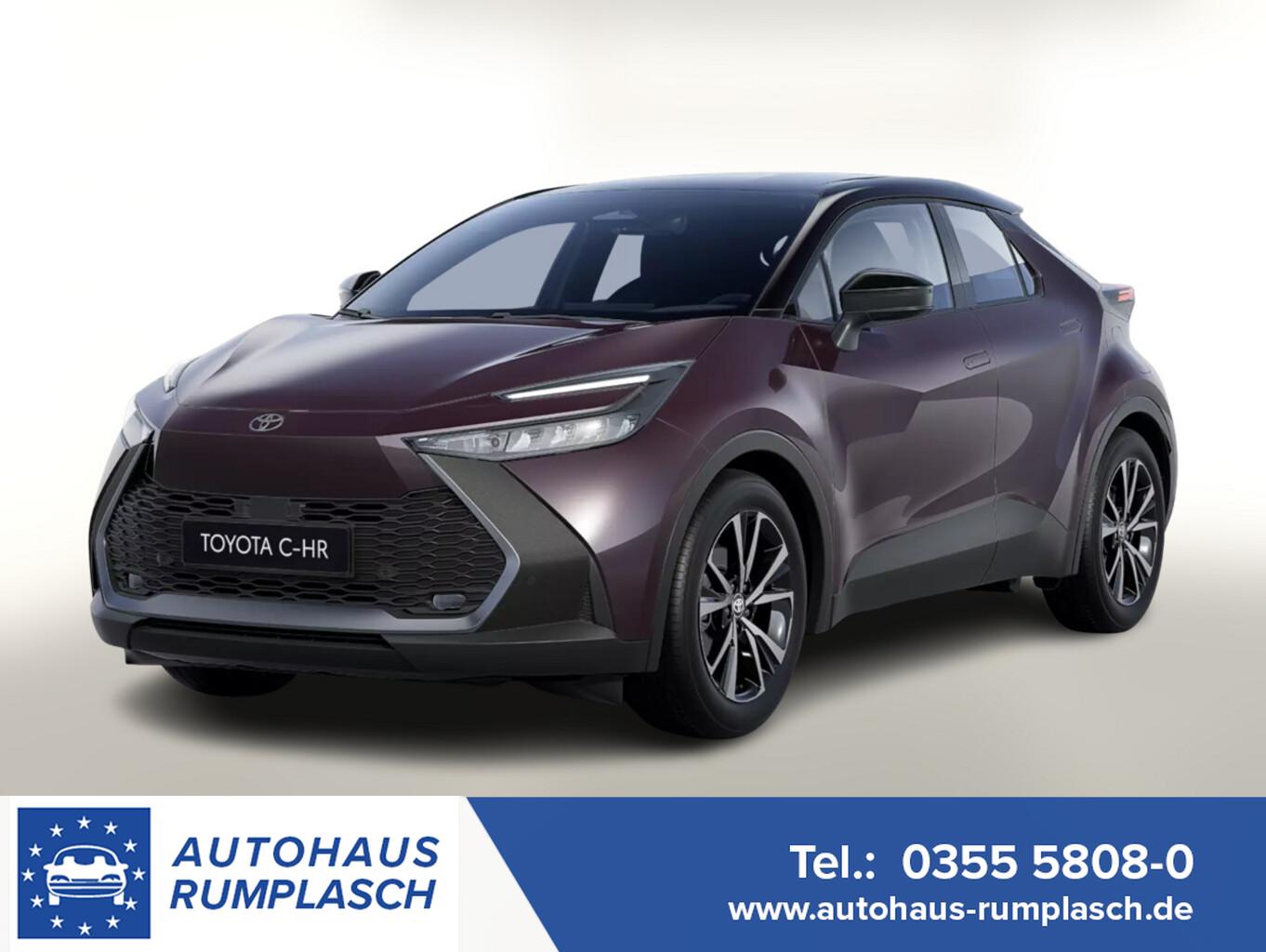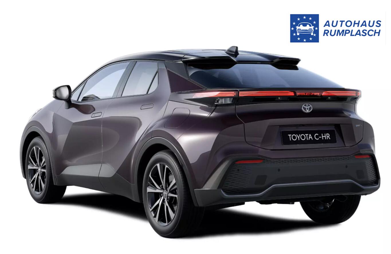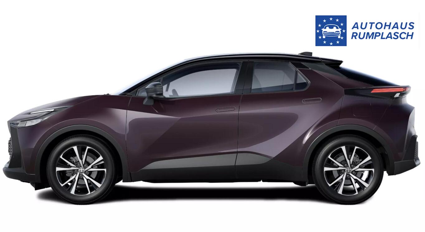 Ambiente Beleuchtung monocolor, Außenspiegel in Schwarz, Ausstiegsleuchten mit C-HR Emblem, Automatischer Geschwindigkeitsbegrenzer (ASL), Dachhimmel in schwarz, Dekoreinlage in Schwarz, Fahrassistenz-System: Müdigkeitserkennung, Fensterzierleisten Schwarz, Getränkehalter in der Mittelkonsole, Lendenwirbelstütze elektr. vorn links, Lenkrad (Leder) mit Multifunktion, LM-Felgen 18 Zoll, Mittelarmlehne vorn, Reifen 225/55 R18, Schadstoffarm nach Abgasnorm Euro 6e (EU6EA), Scheinwerfer LED, Sitzbezug / Polsterung: Stoff, Sprachsteuerung, 2-Farben-Lackierung (Außenspiegel Kontrastfarbe / Dach in Kontrastfarbe), Anzeigeinstrumente digital (Instrumentenanzeige Farbdisplay 12,3 Zoll), Toyota Smart Connect Plus (6 Lautsprecher / DAB-Tuner (Radioempfang digital) / Multi-Funktions-Display für Navigationssystem (12,3 Zoll) / Smartphone-Integration x-connect (Apple CarPlay und Android Auto) / Bluetooth-Schnittstelle / Cloud- und Onboard-Navigationssystem / Freisprechanlage Bluetooth / USB-Schnittstelle), Einparkhilfe vorn und hinten (Einparkhilfe hinten), Toyota Safety Sense (Fahrassistenz-System: Frontkollisionswarnung mit Fußgänger- und Fahrraderkennung / Fahrassistenz-System: Pre-Collision-System (PCS) / Adaptive Geschwindigkeitsregelanlage (ACC) / Fahrassistenz-System: Verkehrszeichenerkennung (RSA) / Fahrassistenz-System: Fernlichtassistent (Abblendautomatik Fahrlicht, AHB) / Fahrassistenz-System: aktiver Spurhalteassistent (Lenkunterstützung) / Fahrassistenz-System: Autonome Notbremsfunktion (AEB) / Fahrassistenz-System: Kreuzungs-Assistent / Fahrassistenz-System: Spurhalteassistent (LDA)), 3. Bremsleuchte, Akustischer Fußgängerschutz (Außensound, AVAS), Elektr. Bremskraftverteilung, Fahrassistenz-System: Ausstiegswarnung (Safe Exit Assist, SEA), Fahrassistenz-System: Sicherheitssystem Toyota Connect mit automatischem Notruf (eCall), Frontscheibe mit Wischerablagenheizung, Heckspoiler, Hybrid 145 kW (Motor 2,0 Ltr. - 112 kW 16V), Induktionsladeschale für Smartphone, Innenbeleuchtung LED, Innenspiegel mit Abblendautomatik, Karosserie: 5-türig, Kindersicherung, Lenkrad heizbar, Lenksäule (Lenkrad) verstellbar, Leseleuchten vorn und hinten, Leuchtweitenregelung, Parkbremse elektrisch (EPB), Radstand Standard, Sitz vorn links höhenverstellbar, Sitz vorn rechts höhenverstellbar, Steckdose (12V-Anschluß) in Mittelkonsole, Türgriffe außen Wagenfarbe, Warnanlage für Sicherheitsgurte hinten, Warnanlage für Sicherheitsgurte vorn, USB-Anschlüsse (2) für 2.Sitzreihe, Anti-Blockier-System (ABS), Antriebsart: Frontantrieb, Elektron. Stabilitäts-Programm mit Antriebs-Schlupfregelung (VSC mit TRC), Wegfahrsperre, Getriebe Automatik stufenlos - Multidrive ECVT, Klimaautomatik 2-Zonen, Airbag Beifahrerseite abschaltbar, Airbag Fahrer-/Beifahrerseite, Fensterheber elektrisch vorn + hinten, Isofix-Kindersitz-System, Knieairbag Fahrerseite, Kopf-Airbag-System, Rücksitzbank klappbar 1/3-2/3, Seitenairbag vorn, Sitzheizung vorn, Verglasung hinten abgedunkelt, Zentralverriegelung / Startanlage Smart-Key, Entry & Drive, Fahrassistenz-System: Berganfahrkontrolle (HAC), Rückfahrkamera, Servolenkung elektrisch, Außenspiegel elektr. anklappbar, Außenspiegel elektr. verstell- und heizbar, Außenspiegel mit Totwinkel-Assistent, Autom. Begleitfunktion der Beleuchtung (Follow me home, FMH), Einschaltautomatik für Fahrlicht, Heckleuchten LED, Nebelscheinwerfer LED, Scheibenwischer mit Regensensor, Tagfahrlicht LED, Fahrassistenz-System: Querverkehrs-Assistent Heck (Rear Cross Traffic Alert, RCTA), Reifendruck-Kontrollsystem