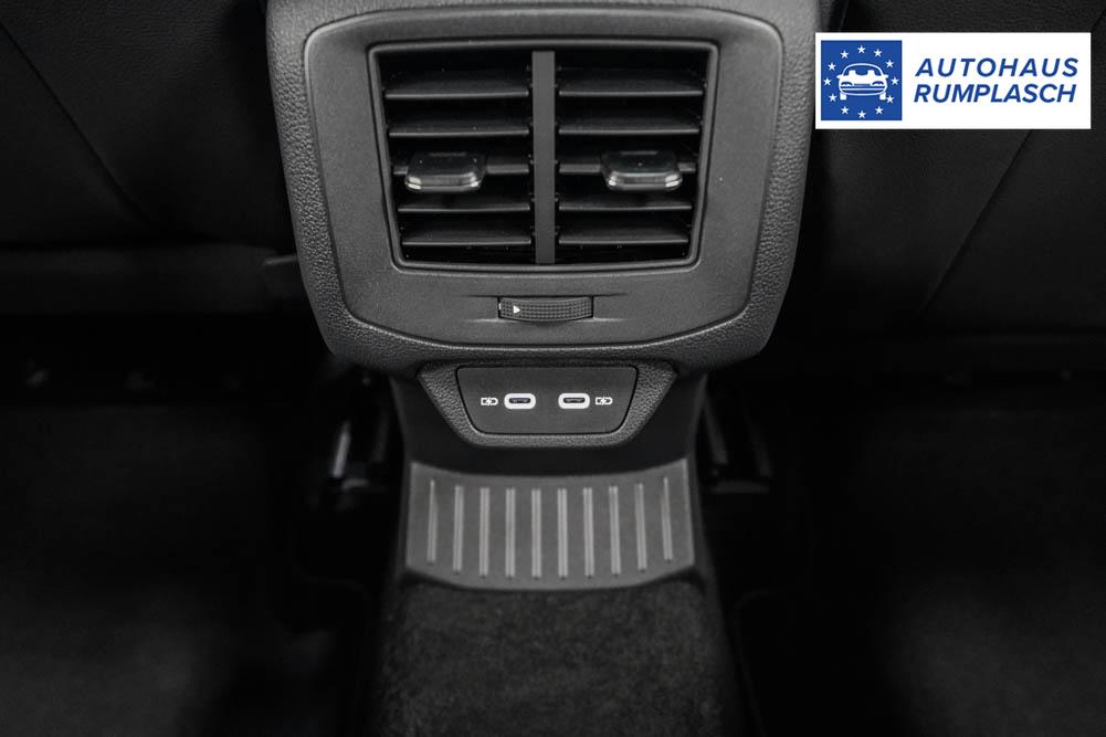 Beifahrersitz höhenverstellbar, Fahrersitz höhenverstellbar, Sport-Lederlenkrad, Lendenwirbelstütze vorne, Mittelarmlehne vorne, Sitzbezug Stoff, Sportsitze, geteilt umklappbare Rücksitzlehne, Lenkrad höhenverstellbar, Ambiente-Beleuchtung, Multifunktionslenkrad, Isofix, Beifahrersitz umklappbar, abgedunkelte Scheiben, 19 Zoll Alufelgen Misano, Dachreling schwarz, Außenspiegel in Schwarz, Türgriffe in Wagenfarbe, ABS, Außenspiegel elektrisch einstell-/anklappbar, Fensterheber elektrisch, Klimaautomatik, Kopfairbags, Seitenairbags, Servolenkung, Sitzheizung, ESP, Wegfahrsperre, Zentralverriegelung mit Funk, Außenspiegel beheizbar, Beifahrerairbag, Fahrerairbag, Parkpilot hinten, Parkpilot vorne, Reifendruckkontrolle, Regensensor, Lichtsensor, Digital Cockpit, Anhängekupplung abnehmbar, Tempomat Abstand ACC, Fernlichtassistent, Notbremsassistent, Spurhalteassistent, Verkehrszeichenerkennung, LED PLUS-Scheinwerfer, LED-Tagfahrlicht, Pannenset, Rückfahrkamera, Park-Assistent, Panoramadach, Elektrische Heckklappe Virtual Pedal, Keyless Access, StartStopSystem, Winterpaket, Innenspiegel automatisch abbl., Müdigkeitswarnsystem, Notrufsystem, Schaltwippen, Geschwindigkeitsbegrenzer, Android Auto, Apple Carplay, Freisprecheinrichtung, Induktionsladestation, USB Typ-C, Radio DAB, Bluetooth inkl. Handykopplung, Bordcomputer, Navigation Media, App-Connect Wireless, LED-Rückleuchten, Dachhimmel schwarz, Black Style Paket, 4 Jahre bis max. 80.000km Herstellergarantie,