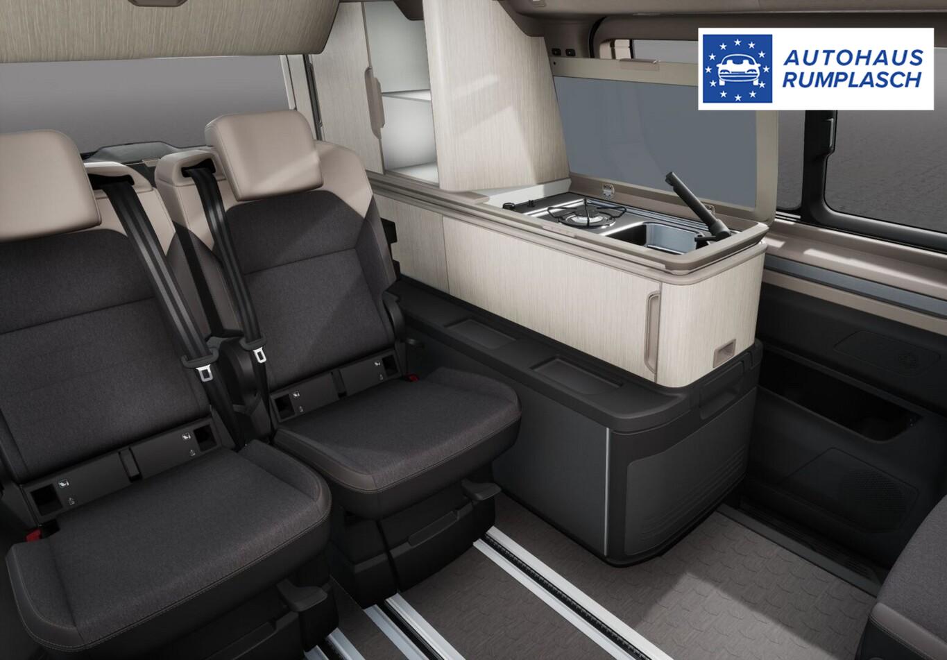 Audio-Navigationssystem Discover Pro (Touchscreen-Farbdisplay 10", inkl. Streaming & Internet), Fahrassistenz-Paket Basic (Service-System: Intelligente Fahrzeugvernetzung (Car2X) / Fahrassistenz-System: Autom. Distanzregelung (ACC inkl. Stop&Go-Funktion) / Fahrassistenz-System: Spurwechselassistent (Side Assist) mit Auspark-Assistent und Ausstiegswarnung), Markise (Gehäuse und Markisenleisten schwarz, links), Park-Paket Basic (Rückfahrkamera / Fahrassistenz-System: Parklenkassistent (Park Assist) inkl. Einparkhilfe vorn und hinten), Schließ-/Startsystem Keyless Advanced mit Safesicherung, Diebstahl-Warnanlage + Innenraumüberwachung / Abschleppschutz + Back-up-Horn, Campingtisch und Klappstühle, LM-Felgen 6,5x16 (Syrakus), Reifen 215/65 R16, Schadstoffarm nach Abgasnorm Euro 6e (EU6 EA), Aufstelldach manuell betätigt mit Bugfenster und Frontöffnung, Faltenbalg grau, Außenspiegel schwarz lackiert, Bodenbelag im Lade-/Fahrgastraum Kunststoff, Digital Cockpit Pro (Instrumentenanzeige Digital), Elektrische Schnittstelle für externe Nutzung (CAN-Datenbus), Fahrassistenz-System: Ausweich-Assistent und Abbiege-Assistent, Frontscheibe Verbundglas getönt, Funkschlüssel (2), Handschuhfach beleuchtet, Heckklappe mit Verglasung und Zuziehhilfe, Innenausstattung: Dekoreinlagen Dark Silver brushed, Innenbeleuchtung an Aufstelldach, Heckklappe und Sommerküche (Coast / Ocean), Innenspiegel mit Abblendautomatik, Intelligent Speed Assist inkl. Geschwindigkeitsbegrenzer, Karosserie/Aufbau: Motor Caravan, Lautsprecher (8), Leuchtweitenregelung, Mobile Online Dienste App-Connect inkl. App-Connect Wireless (Apple CarPlay, Android Auto), Motor 2,0 Ltr. - 110 kW TDI, Nichtraucher-Paket, Radioempfang digital (DAB+), Radstand 3124 mm, Schiebetür Lade-/Fahrgastraum links mit Zuziehhilfe, Schiebetür Lade-/Fahrgastraum rechts mit Zuziehhilfe, Schubladen unter Außensitze im Fahrerraum und Fahrgastraum und 2 Abfallbehälter, Servoschliessung Heckklappe mit Innenentriegelung, Sitzausstattung: 4-Sitzer, Sitzbezug / Polsterung: Stoff Melange, Sitze im Lade-/FG-Raum: 1.Reihe, 2 Einzelsitze mit integriertem Gurt und Schlafauflage, Sommerküche mit Außenklapptisch und 230V Steckdose, Dachstaufach, in Raven / Frizo Sandwick, Sonnenblenden mit Spiegel (beleuchtet), Steckdose 230V (mit Einspeisung für Batterieaufladung), Steckdose 230V im Fahrerhaus, Verdunkelungssystem: Rollos und Thermomatten, Vorbereitung für Alkohol-Wegfahrsperre (Alcolock), Warnanlage für Sicherheitsgurte vorn und hinten, Zierleiste zwischen Scheinwerfern: schwarz lackiert und Chromleisten, Zul. Gesamtgewicht 2,85 t, Mobiltelefon Schnittstelle Bluetooth, Multimedia-Schnittstelle 2 x USB vorn und 4 x USB-Ladeanschluß Fahrgastraum (Typ C), Antriebsart: Frontantrieb, Wegfahrsperre (elektronisch), Getriebe 7-Gang - Doppelkupplungsgetriebe DSG, Klimaanlage Climatronic 3-Zonen inkl. Fondbedienung, Standheizung für Dauerbetrieb und kraftstoffbetriebene Zusatzheizung, Airbag Fahrer-/Beifahrerseite, Beifahrerairbag abschaltbar, Seitenairbag / Kopfairbag / Center-Airbag vorn und Kopfairbag hinten, Sitze im Fahrerhaus: Armlehnen beidseitig Fahrer- und Beifahrersitz und elektr. Lendenwirbelstütze, Sitze im Fahrerhaus: Beifahrersitz drehbar, Sitze im Fahrerhaus: Fahrer- und Beifahrersitz heizbar, Sitze im Fahrerhaus: Fahrersitz drehbar, Verglasung hinten abgedunkelt (65 %), Fahrassistenz-System: Verkehrszeichenerkennung, Geschwindigkeits-Regelanlage (Tempomat), Notrufsystem, Lenkrad (Leder) mit Multifunktion und Schaltfunktion, Servolenkung elektro-mechanisch, geschwindigkeitsabhängig, Heckleuchten LED, Regensensor, Scheinwerfer LED, Tagfahrlicht und Assistenzfahrlicht mit Coming Home / Leaving Home, Fahrassistenz-System: Ablenkungs- und Müdigkeitserkennung, Fahrassistenz-System: Notbrems-Assistent (Front Assist) inkl. Fußgänger- und Fahrraderkennung, Fahrassistenz-System: Spurhalteassistent (Lane Assist), Reifenkontroll-Anzeige