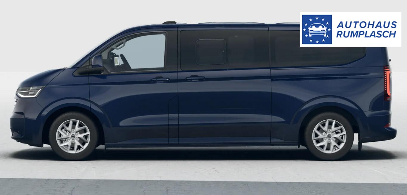 Navigationssystem mit Touchscreen-Farbdisplay 13" mit App-Connect Wireless, Fahrassistenz-Paket Plus (Rückfahrkamera / Fahrassistenz-System: Einparkhilfe vorn und hinten), Vorbereitung Anhängerkupplung (Kabel), Sonnenschutzrollo im Fahrgastraum, Fenster im Lade-/FG-Raum: - ausstellbar, vorn links, Fenster im Lade-/FG-Raum: - ausstellbar, vorn rechts, Kraftstofftank: 70 Ltr., 12V-Steckdose an D-Säule rechts, 12V-Steckdose in der Mittelkonsole, Außenspiegel elektr. verstell-, heiz- und anklappbar, Handschuhfach beleuchtet, Lenkrad (Kunstleder) mit Multifunktion, Reifen 215/60 R17, Schmutzfänger vorn und hinten, Sitze vorn verstellbar (6-fach), Ablagen: Schale/Fach unter Dachhimmel vorn, Außenspiegel und Türgriffe außen in Wagenfarbe, Ausstattungs-Paket: Exterieur-Paket, Anbauteile lackiert, Kühlergrill & Stoßfänger in Wagenfarbe und Chromspange, Batterie 80 Ah, Bodenbelag: Teppich, Digital Cockpit (Instrumentenanzeige Digital), Doppeltonfanfare, Einstiegsleisten Schiebetür (Metall) beleuchtet, Frontscheibe Verbundglas, Haltegriffe am Dachrahmen Fahrer-/Beifahrerseite, Haltegriff an B-Säule Fahrgastraum, Heckscheibe heizbar, Heckscheibenwischer mit Waschanlage, Innenleuchten im Fahrerhaus: LED, Innenleuchten im Lade-/FG-Raum: LED (Gepäckraum), Innenspiegel abblendbar, Karosserie/Aufbau: Bus, Kopfstützen vorn höhen-/neigungsverstellbar, Lautsprecher (10), Motor 2,0 Ltr. - 110 kW TDI, Schiebetüren Lade-/Fahrgastraum links/rechts inkl. Zuziehhilfe, Schließ-/Startsystem Keyless Access ohne Safesicherung, Sitz-Paket 27: Fahrer- und Beifahrersitz, inkl. Sitzheizung und Seitenairbag, Kunstleder, Sitzausstattung: 8-Sitzer, Sitze im Fahrerhaus: Lendenwirbelstützen Fahrer- und Beifahrersitz, Sitze im Lade-/FG-Raum: 1.Reihe, 3 Einzelsitze klapp- und wickelbar und 2.Reihe, 3er-Sitzbank, 6x Isofix, 4x Top Tether, Stoßfänger in Wagenfarbe, Vorbereitung für VW Connect, Mobiltelefon Schnittstelle Bluetooth, USB-Anschluss 7-fach im Fahrerhaus und 6-fach im Fahrgastraum, Antriebsart: Frontantrieb, Elektron. Stabilitäts-Programm (ESP), LM-Felgen 6,5x17 (Le Mans, silber), Wegfahrsperre (elektronisch), Getriebe Automatik - (8-Stufen), Klimaanlage Fahrerhaus und Fahrgastraum (3-Zonen mit autom. Regelung) mit Digitales Bedienteil im Fahrgastraum, Zusatzheizung elektrisch, Airbag Fahrer-/Beifahrerseite, Beifahrerairbag abschaltbar, Seitenairbag / Kopfairbag (Curtain-Airbag) vorn und Kopfairbag (Curtain-Airbag) hinten, Sitzbezug / Polsterung: Kunstleder, Sitze im Fahrerhaus: Fahrer- und Beifahrersitz heizbar, Sitze im Fahrerhaus: Fahrer- und Beifahrersitz mit Armlehnen vorn, Verglasung hinten abgedunkelt, Verzurrösen (2), Fahrassistenz-System: Geschwindigkeits-Regelanlage mit Intelligenter Geschwindigkeits-Assistent, Fahrassistenz-System: Verkehrszeichenerkennung mit Falschfahrer-Warnfunktion, Notrufsystem, Fahrassistenz-System: Dynamische Fernlichtregulierung (Dynamic Light Assist), Heckleuchten LED mit exklusiver Lichtsignatur, Matrix-LED-Scheinwerfer (IQ.Light) inkl. Coming- und Leaving-Home, Fahrassistenz-System: Notbrems-Assistent, Fußgänger- und Fahrraderkennung, Ausweichunterstützung und Abbiege-Assistent, Fahrassistenz-System: Spurhalteassistent (Lane Assist)