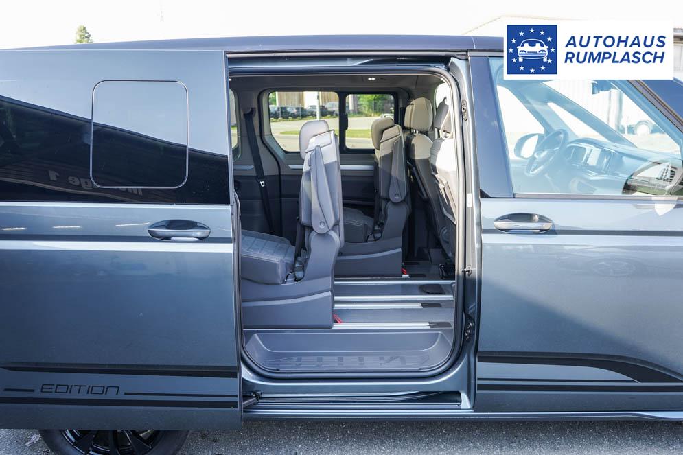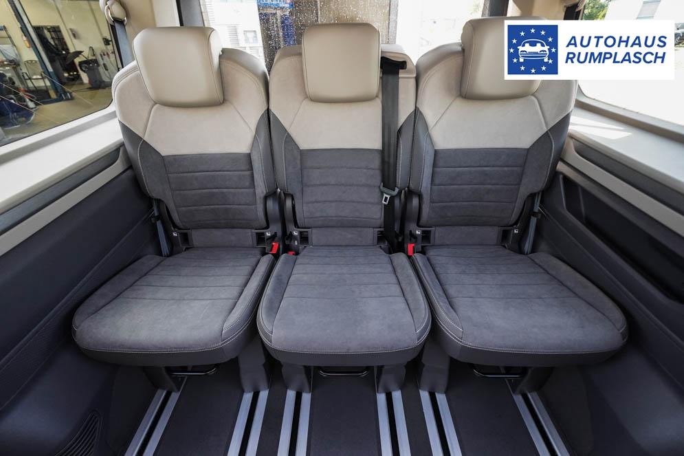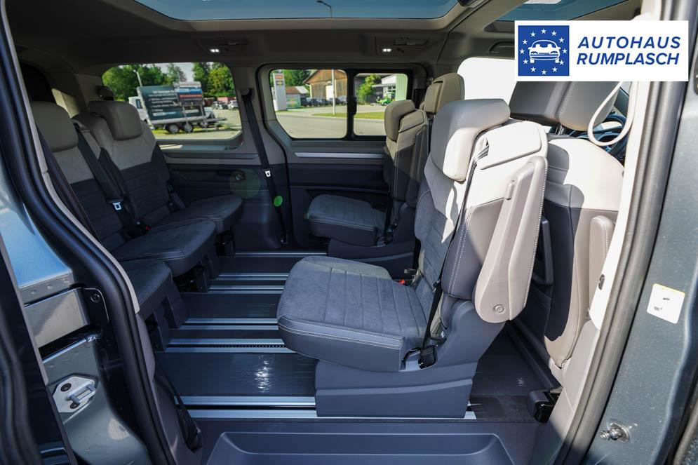 Beifahrersitz höhenverstellbar, Fahrersitz höhenverstellbar, Lederlenkrad, Mittelarmlehne vorne, 7 Sitze, Gepäckraumabdeckung, Lenkrad höhenverstellbar, Sitzbezug Bi-Color ArtVelours, Ambiente-Beleuchtung, Beheizbares Lenkrad, Multifunktionslenkrad, Isofix, abgedunkelte Scheiben, 18 Zoll Alufelgen Toshima schwarz, Schiebetür rechts virtuelles Pedal, Schiebetür links virtuelles Pedal, Schiebetür beidseitig elektrisch, ABS, Alarmanlage, Außenspiegel elektrisch, Fensterheber elektrisch, Klimaautomatik, Kopfairbags, Seitenairbags, Servolenkung, Sitzheizung vorne, ESP, Standheizung, TRC, Wegfahrsperre, Zentralverriegelung mit Funk, Beifahrerairbag, Fahrerairbag, Parkpilot hinten, Parkpilot vorne, Reifendruckkontrolle, Regensensor, Lichtsensor, Digital Cockpit Pro, Anhängekupplung schwenkbar, Tempomat Abstand ACC, Fernlichtassistent, Notbremsassistent, Spurhalteassistent, Totwinkelassistent, Verkehrszeichenerkennung, IQ.Light Matrix-LED-Scheinwerfer, Tagfahrlicht, Rückfahrkamera, Park-Assistent, Panoramadach, elektr. Heckklappe inkl. Virtual Pedal, KeylessEntry, StartStopSystem, Innenspiegel automatisch abbl., Müdigkeitswarnsystem, Notrufsystem, Geschwindigkeitsbegrenzer, Android Auto, Apple Carplay, Freisprecheinrichtung, Sprachsteuerung, 10 Zoll Touchscreen, USB Typ-C, Radio Ready 2 Discover, Radio DAB, Bluetooth inkl. Handykopplung, Bordcomputer, Navigationssystem Discover Pro, Wired and Wireless App Connect, Ausweichunterstützung, 8 Lautsprecher, LED-Rückleuchten, Trailer Assist, Assistenzpaket Advanced, Notfallassistent, Easy Open Paket Advanced, 5 Jahre bis max. 100.000km Herstellergarantie, Travel Assist, Schiebefenster hinten,