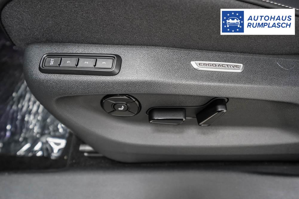 Beifahrersitz höhenverstellbar, Fahrersitz höhenverstellbar, Lederlenkrad, Lendenwirbelstütze, Mittelarmlehne vorne, Sitzbezug Leder, Sportsitze, geteilt umklappbare Rücksitzlehne, Lenkrad höhenverstellbar, Ambiente-Beleuchtung, Beheizbares Lenkrad, Isofix, Isofix Beifahrersitz, abgedunkelte Scheiben, Leichtmetalräder 19, Dachreling schwarz, ABS, Alarmanlage, Außenspiegel elektrisch, Fensterheber elektrisch, Kopfairbags, Seitenairbags, Servolenkung, Sitzheizung vorne, ESP, Wegfahrsperre, Zentralverriegelung mit Funk, Außenspiegel beheizbar, Beifahrerairbag, Fahrerairbag, Partikelfilter, Parkpilot hinten, Parkpilot vorne, Reifendruckkontrolle, Head-up Display, Regensensor, Lichtsensor, Digitales Kombiinstrument, Anhängekupplung schwenkbar, Tempomat Abstand ACC, Spurhalteassistent, Totwinkelassistent, Verkehrszeichenerkennung, LED-Scheinwerfer, Tagfahrlicht, Kurvenlicht, Pannenset, Rückfahrkamera, Park-Assistent, Panoramadach, Elektrische Heckklappe mit virtuelles Pedal, KeylessEntry, StartStopSystem, Winterpaket, Innenspiegel automatisch abbl., Berganfahrassistent, Müdigkeitswarnsystem, Notrufsystem, Schaltwippen, Klimaautomatik 3-Zonen, 360-Grad-Kamera, Geschwindigkeitsbegrenzer, Freisprecheinrichtung, Induktionsladestation, Sprachsteuerung, USB Typ-C, Radio DAB, Bluetooth, Bordcomputer, Navigationssystem, Black Style Exterieur, Trailer Assist, ergoAcitve Vordersitze mit Memory, erweiterte Herstellergarantie 4 Jahre/80.000km,