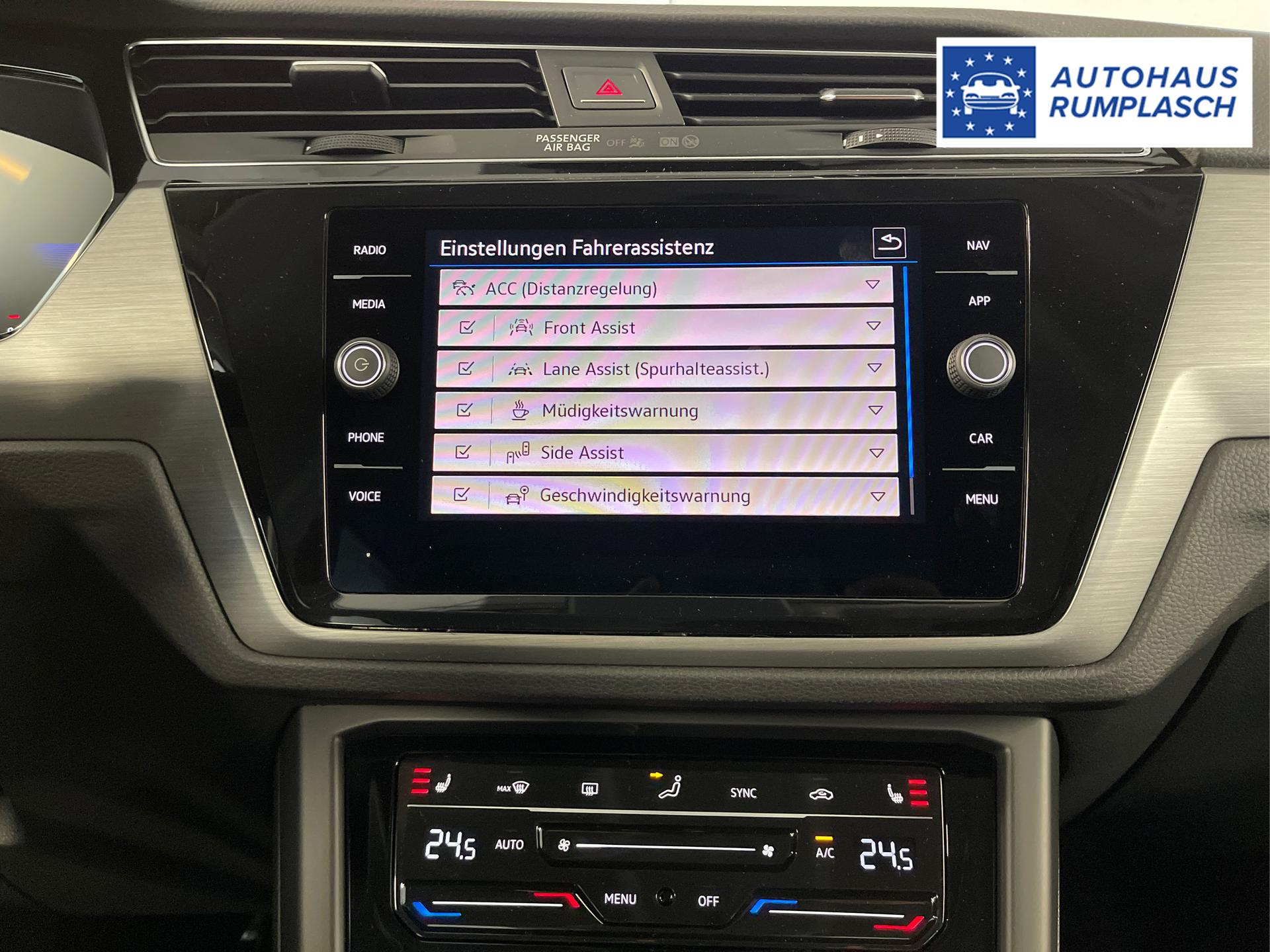 • USB-Schnittstelle, Kopfstützen, Adaptive Geschwindigkeitsregelung ACC bis 210 km/h (Geschwindigkeitsregelanlage inkl. Geschwindigkeitsbegrenzung), Airbag für Fahrer und Beifahrer, Seitenairbag, Kopfairbag für 1. und 2. Sitzreihe, Beifahrer-Airbag-Deaktivierung, Licht-und-Sicht-Paket (Sicherheitsinnenspiegel automatisch abblendend, Regensensor, Coming/Leaving Home Funktion), Freisprecheinrichtung Bluetooth, Zentralverriegelung mit Funkfernbedienung, Wärmeschutzverglasung, Digital Cockpit (8 Zoll Bildschirm, Bordcomputer), Digitaler Radioempfang DAB+, Notrufsystem eCall, Außenspiegel elektrisch einstell- und beheizbar, Fensterheber vorn und hinten elektrisch, Außenspiegel elektrisch anklappbar, Feststellbremse elektronisch mit Auto-Hold-Funktion, XDS-Differenzialsperre, ESC, ABS, ASR, EDS, EBV, MSR, Berganfahrassistent, Raucherpaket, Front Assist inkl. City-Notbremsfunktion, Nebelscheinwerfer inkl. Abbiegelicht, Wegfahrsperre, Isofix, Knieairbag für Fahrer, Make-up-Spiegel in den Sonnenblenden, Multifunktions-Lederlenkrad, Schalthebelknauf/-Griff in Leder, Multikollisionsbremse, Stoßfänger in Wagenfarbe, Außenspiegelgehäuse und Türgriffe in Wagenfarbe, Stäu/-Ablagefächer, ParkPilot vorn und hinten, Fußgängererkennung, Radfahrererkennung, Servolenkung, Proaktives Sicherheitssystem, Tire-Mobility-Set, Beifahrersitz umklappbar, Spurwechselassistent "Side Assist", Start-Stopp-Anlage, Scheiben ab der B-Säule abgedunkelt, Mittelarmlehne vorne, 12 Volt Steckdose, Dachreling Schwarz, Müdigkeitserkennung, Dreipunkt-Sicherheitsgurte, Lenksäule verstellbar, Vordersitze höhenverstellbar, Lendenwirbelstütze für die Vordersitzlehnen, Reifendruckkontrolle